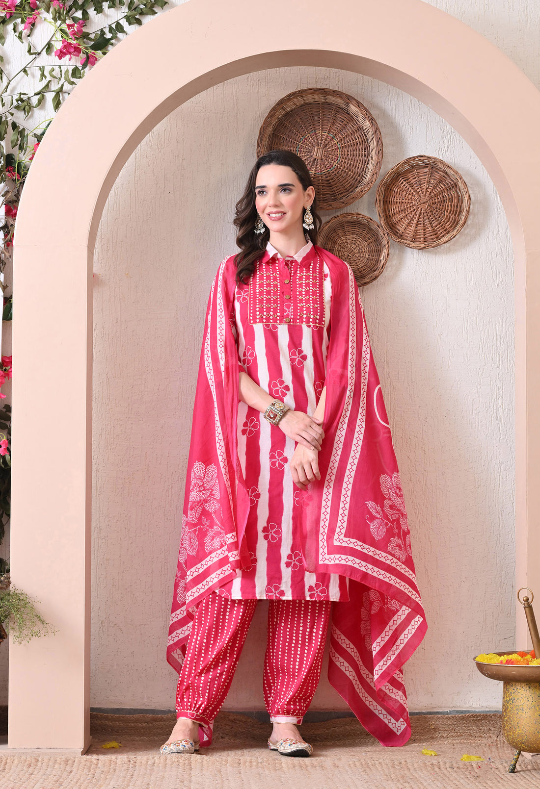 VBA Hot Pink Straight Kurta Pent Dupatta Set