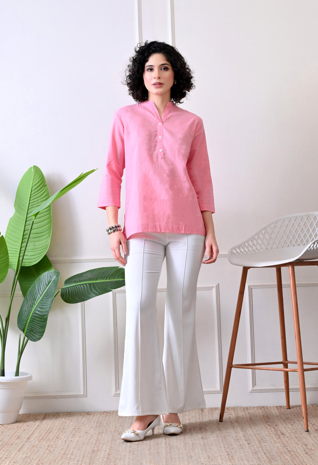 Light Pink Airy Solid Linen Comfortable Short Kurta