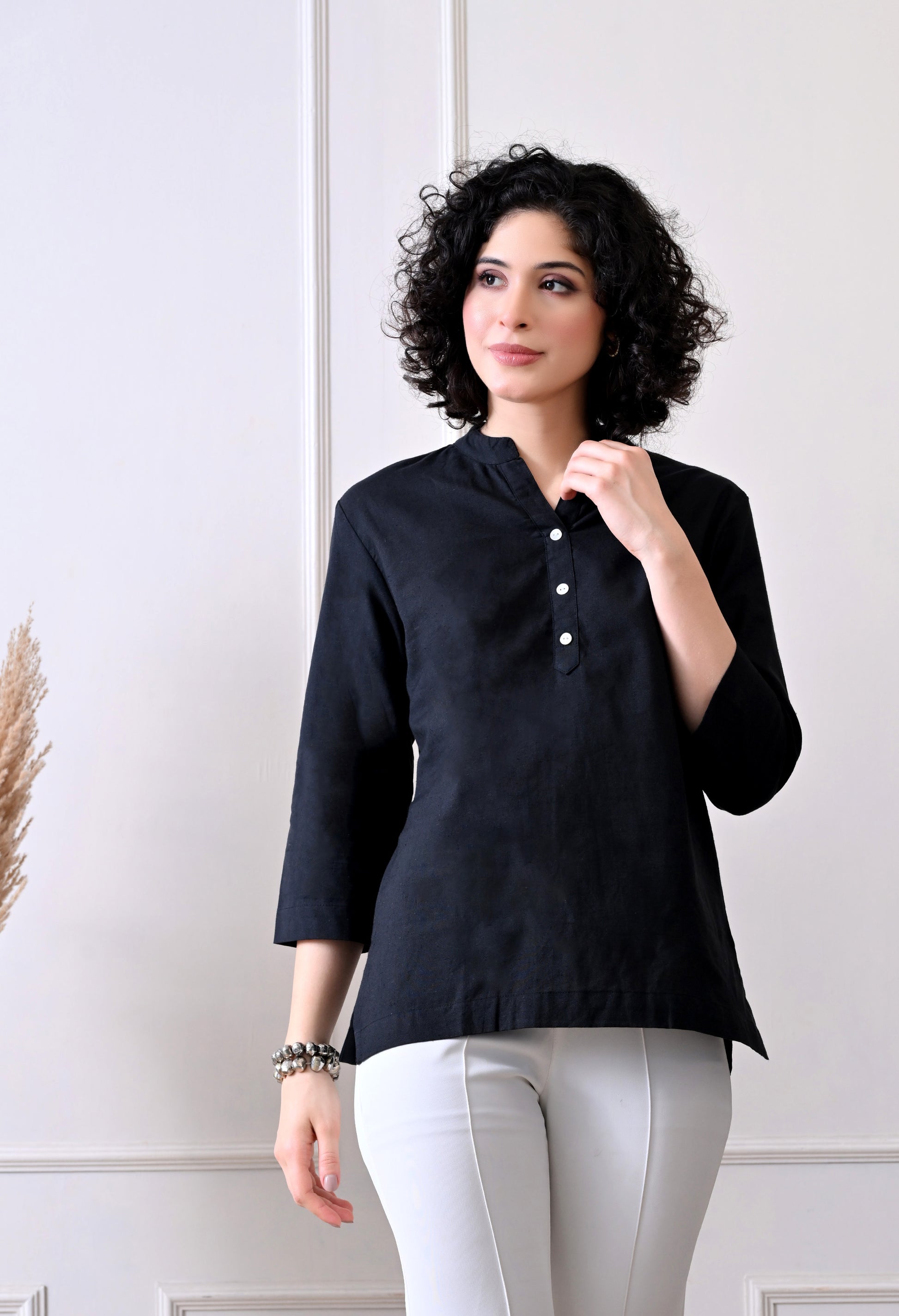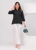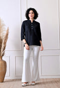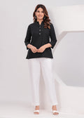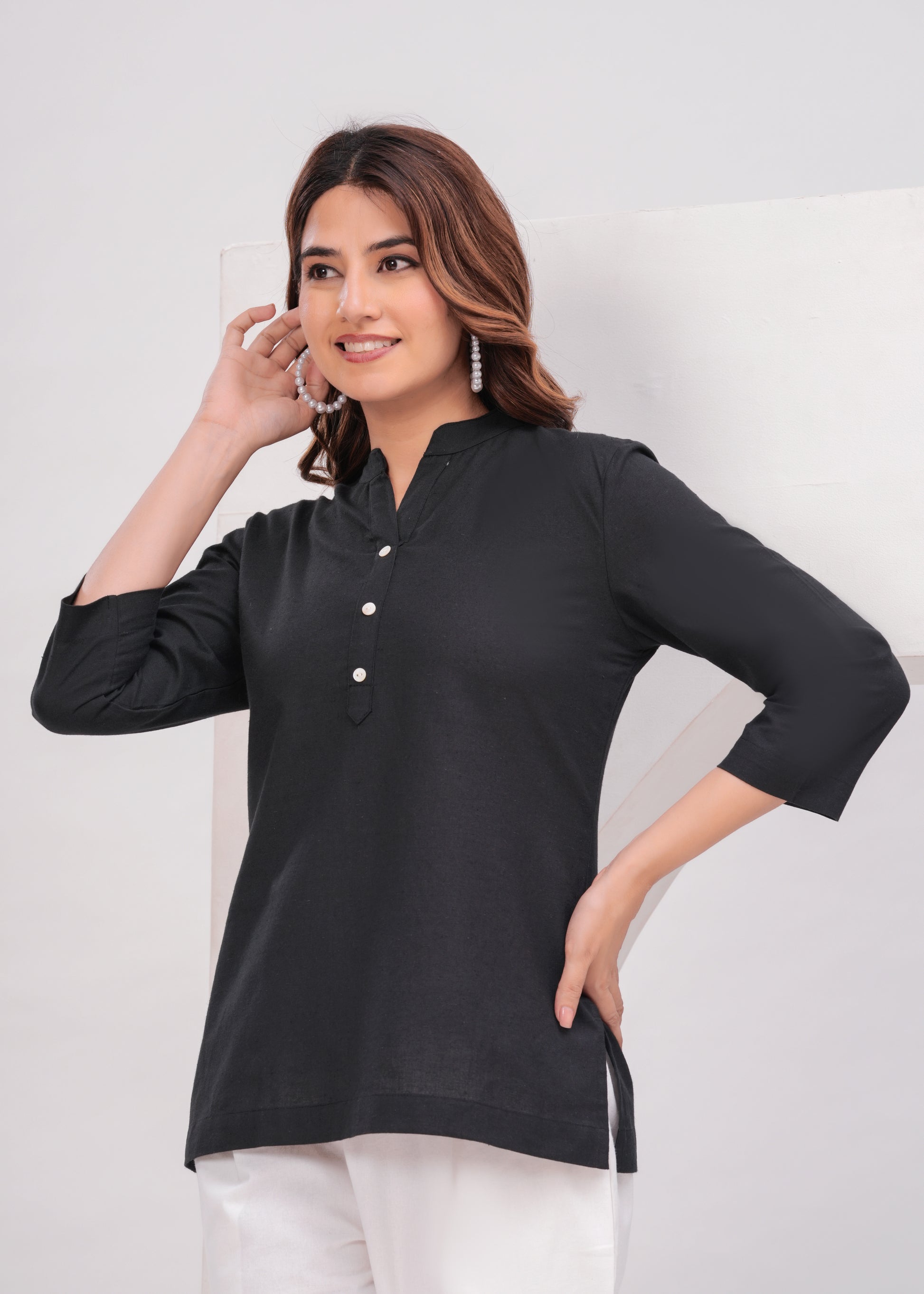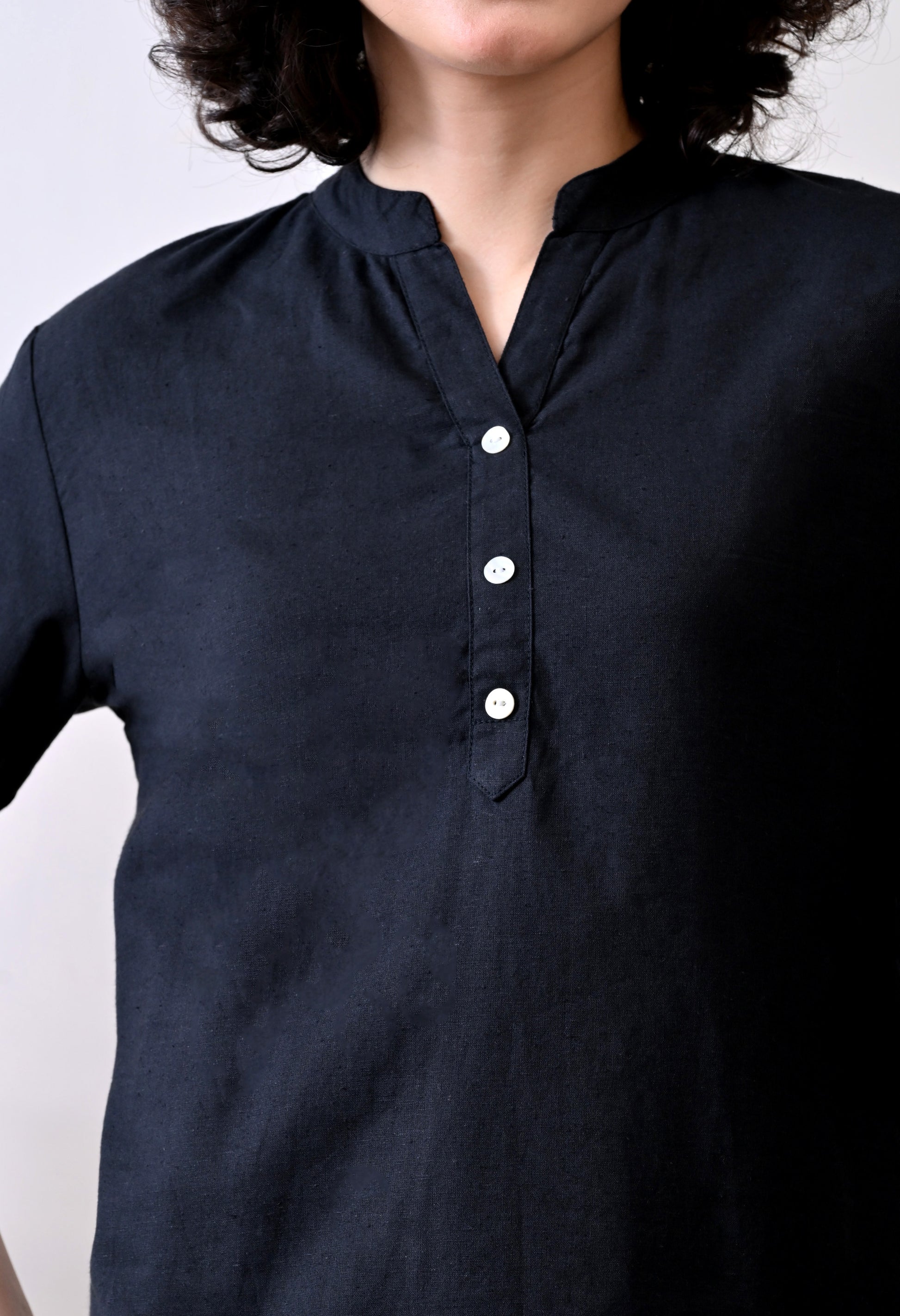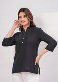 Black Airy Solid Linen Comfortable Short Kurta