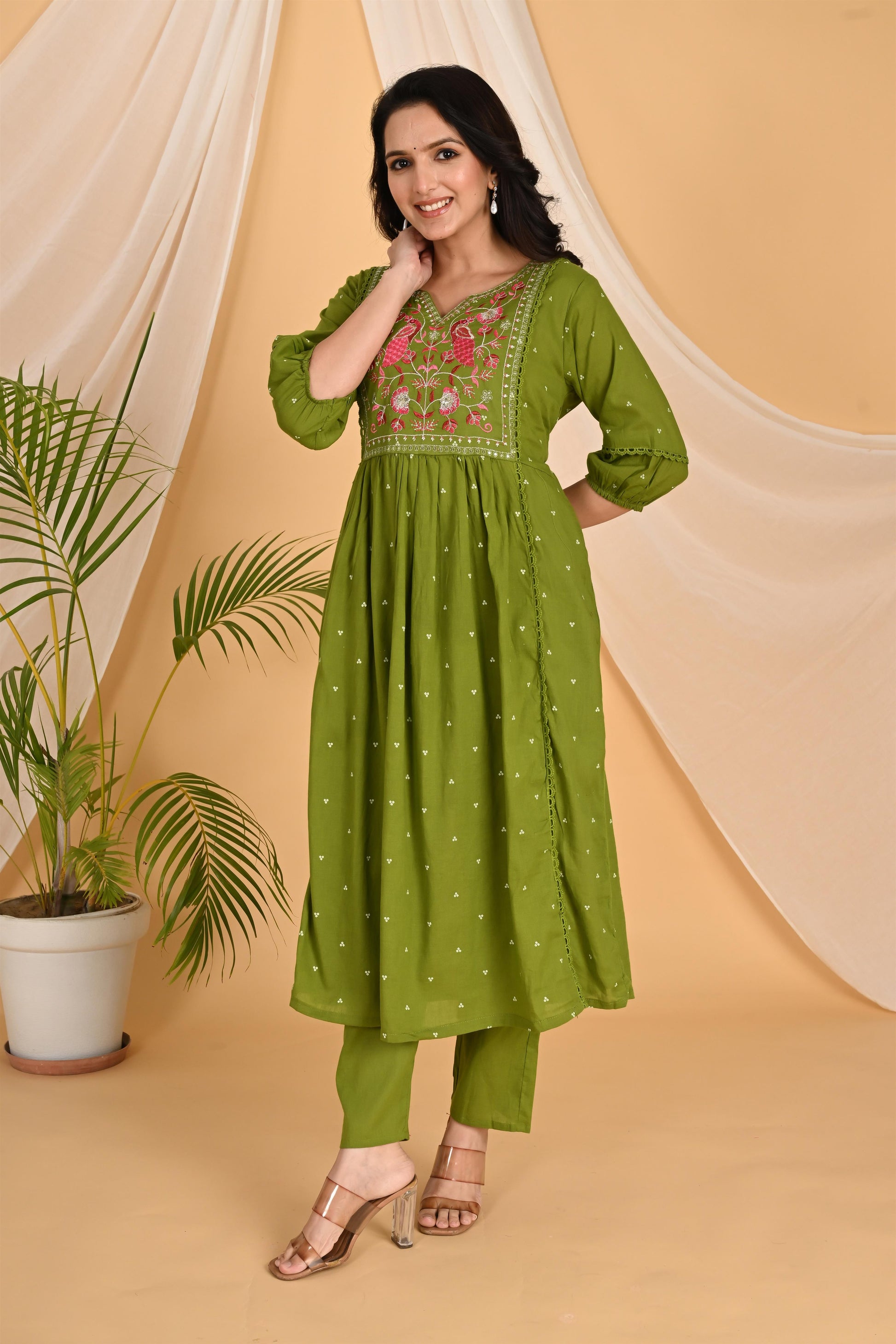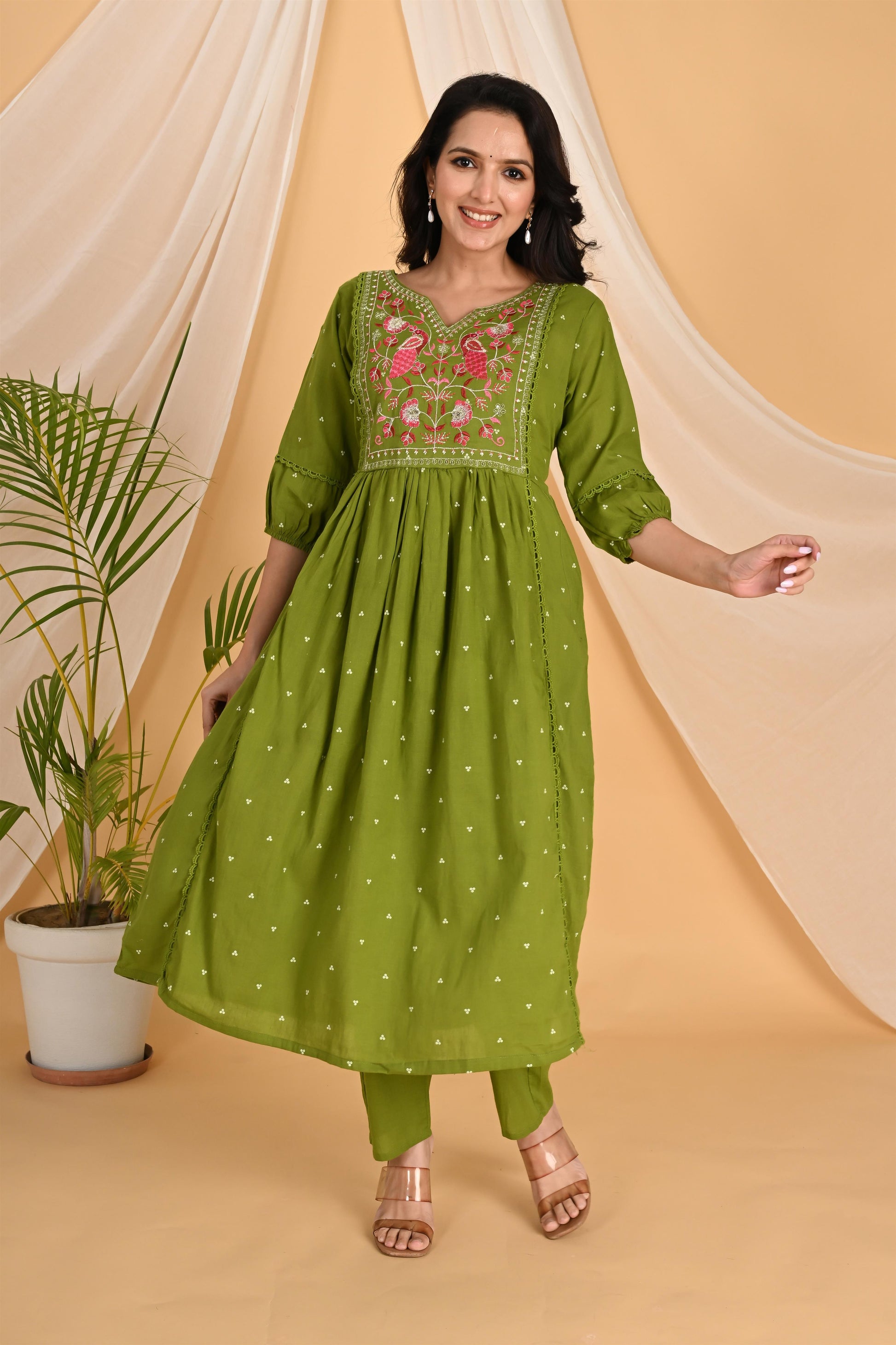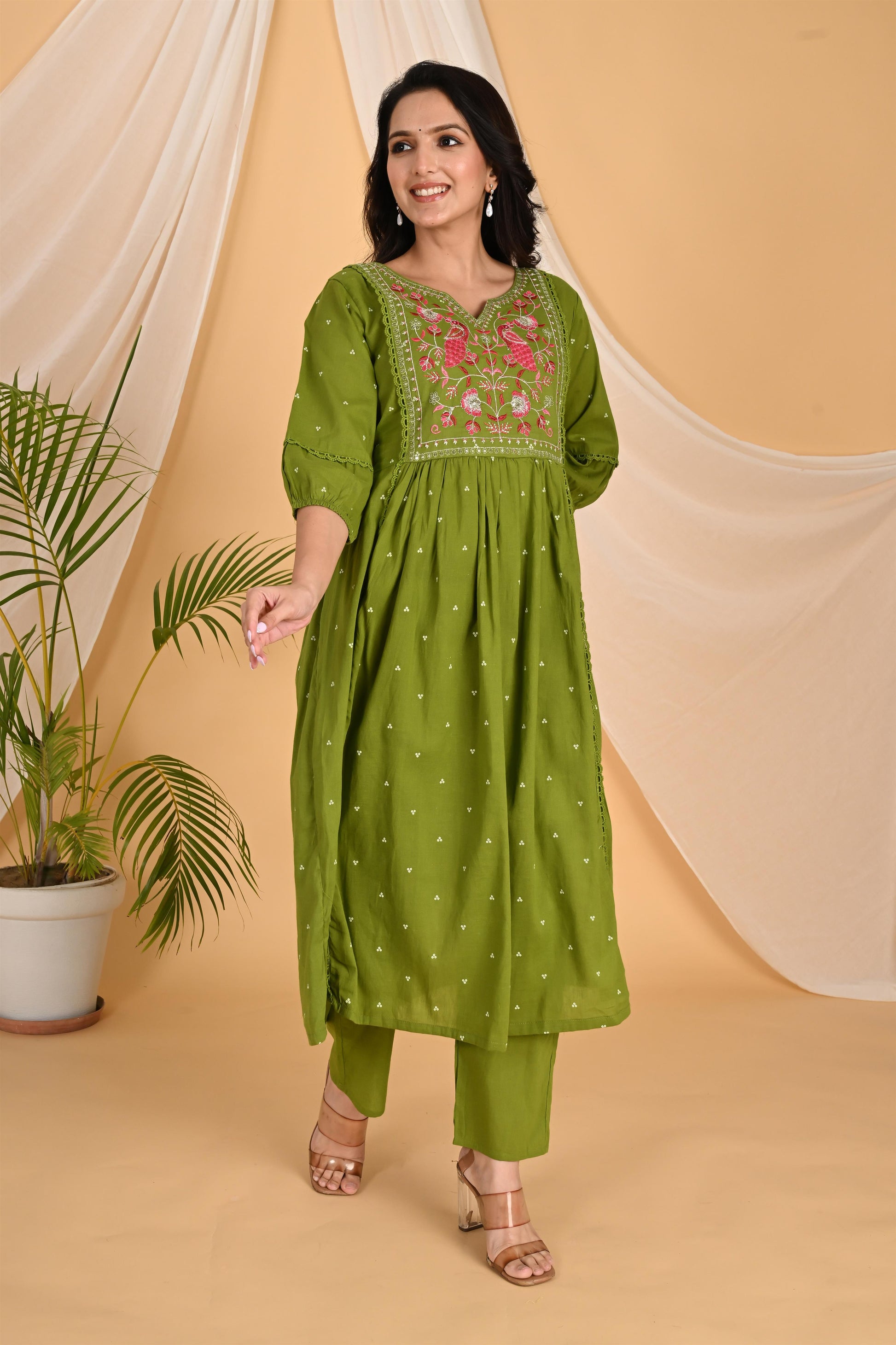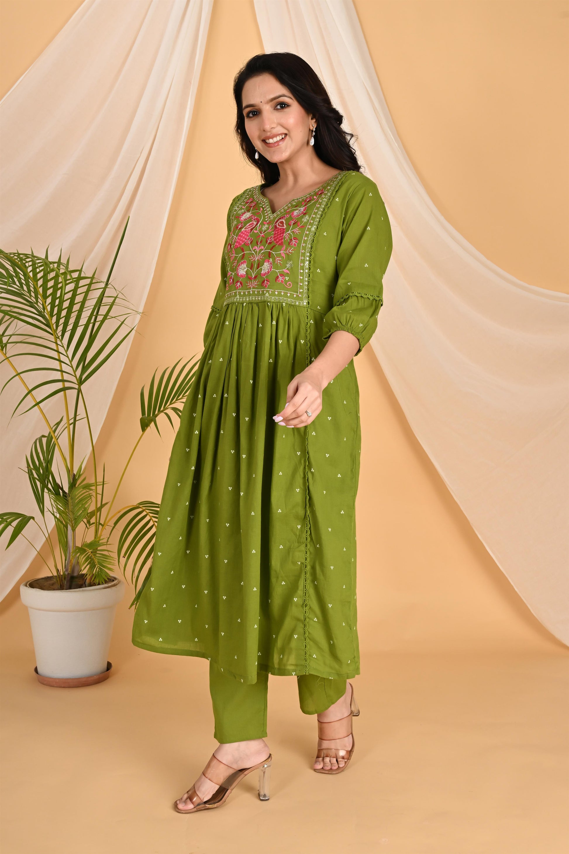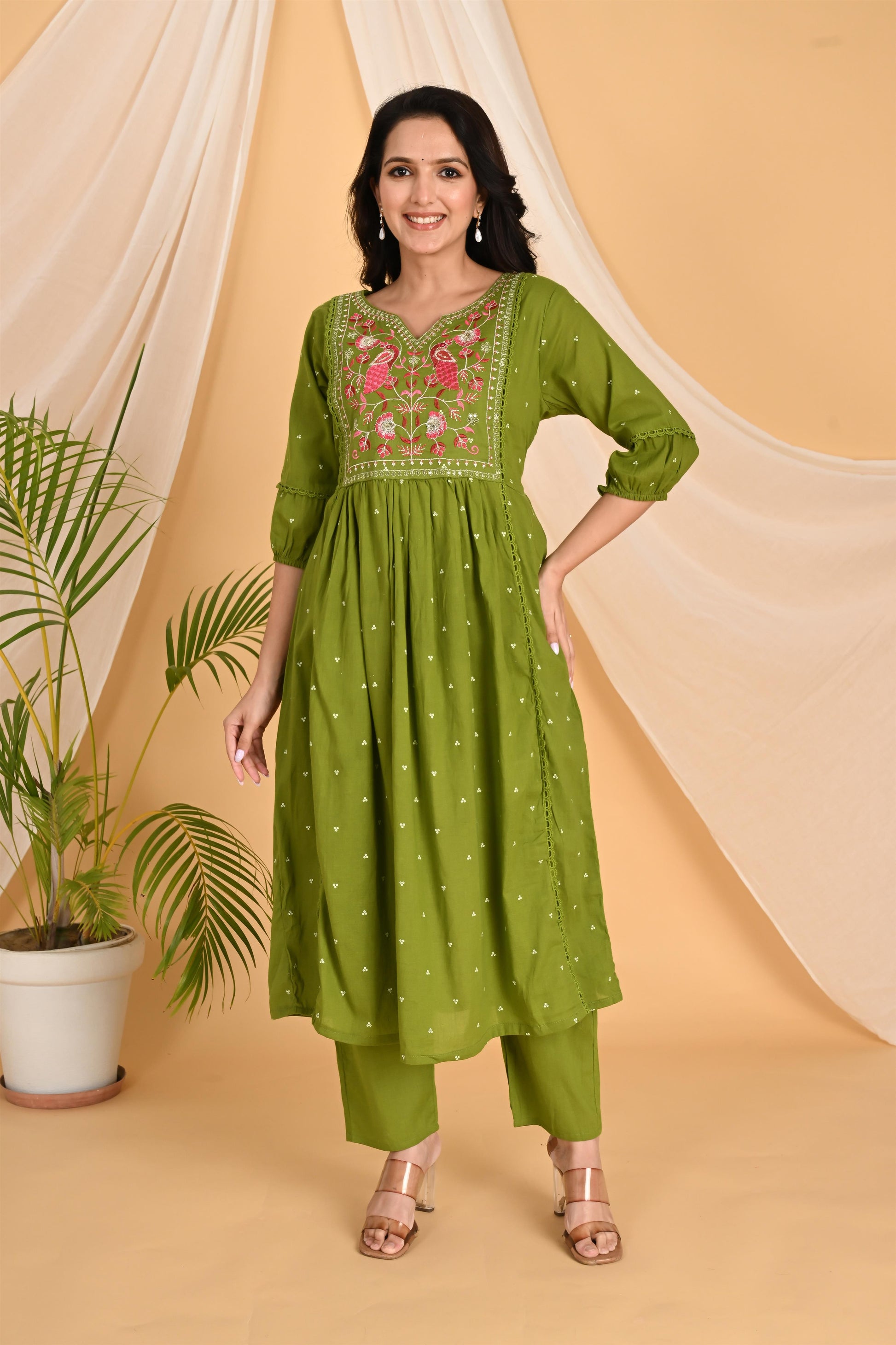 Green Peacock embroidery kurta set