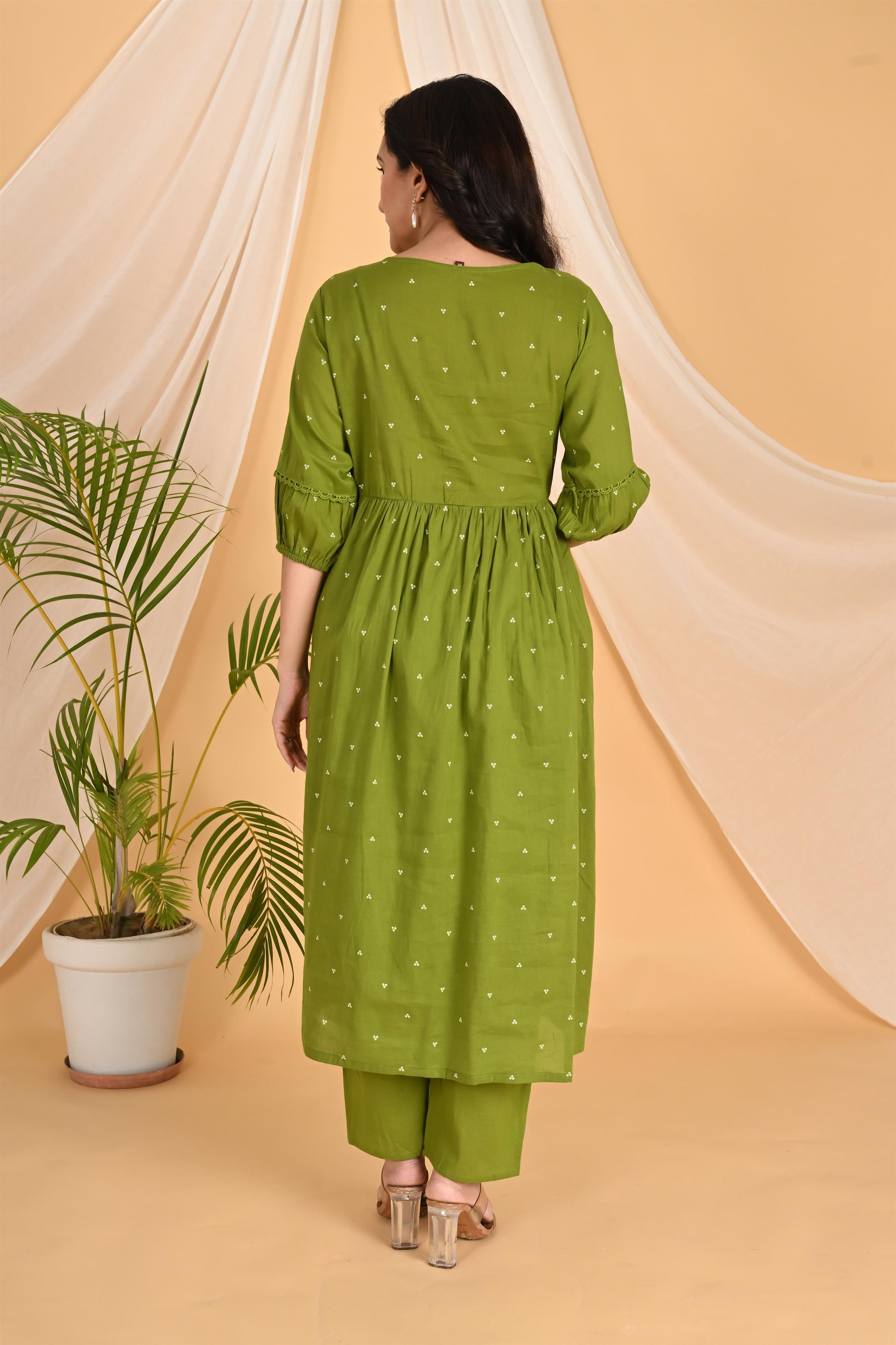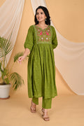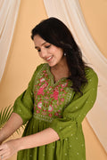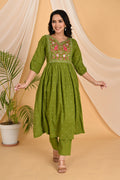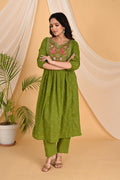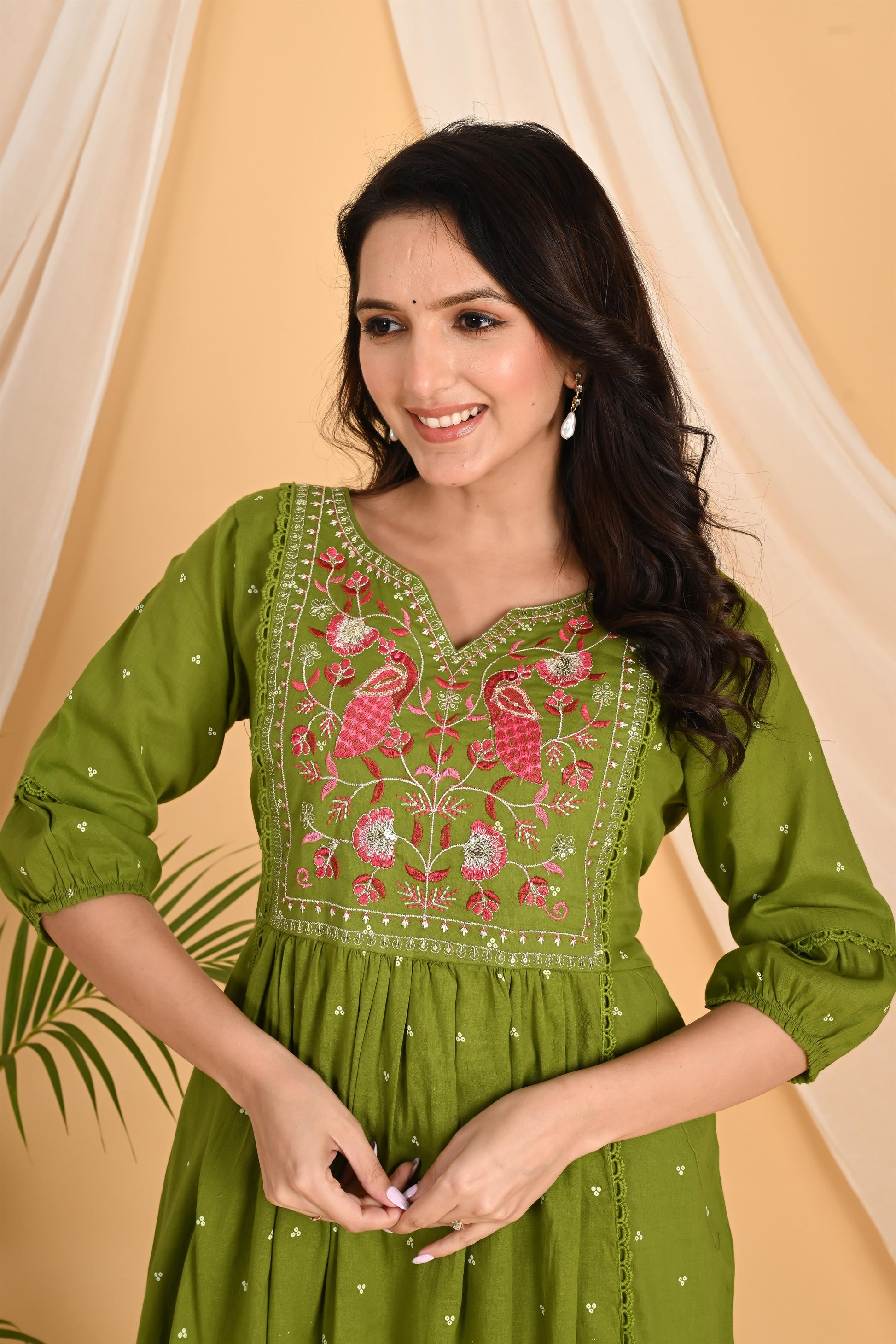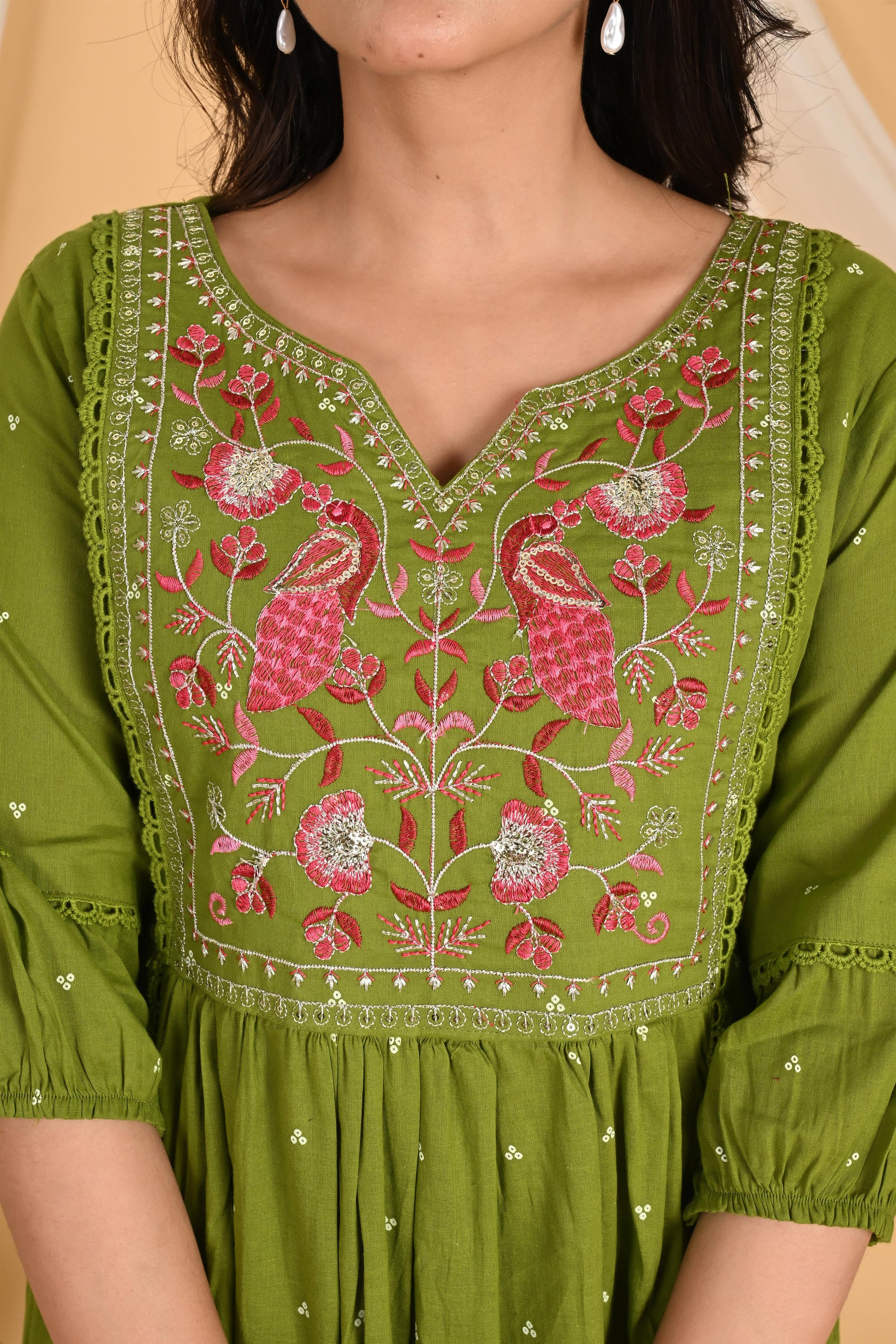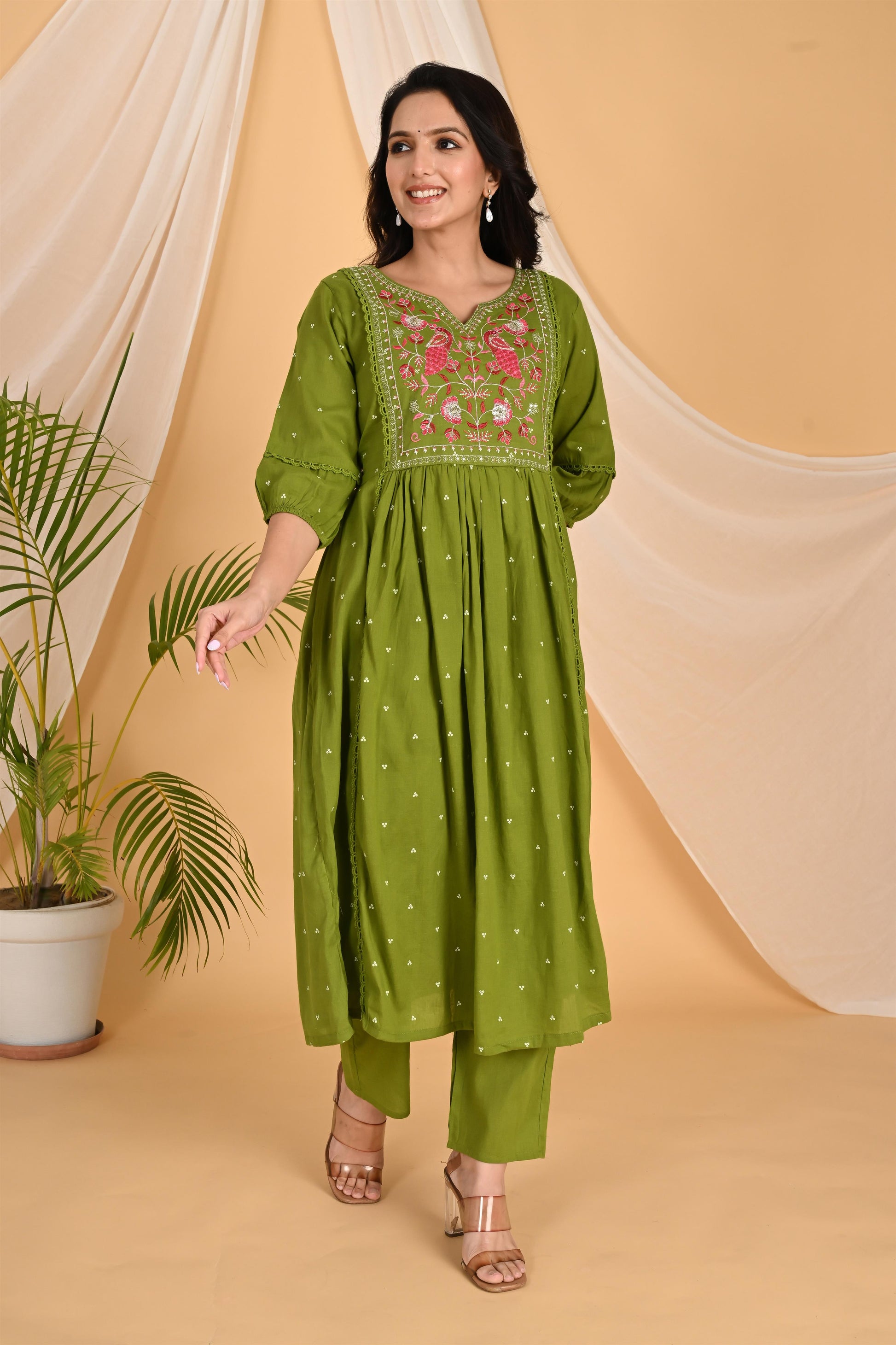 Green Peacock embroidery kurta set
