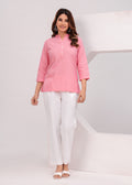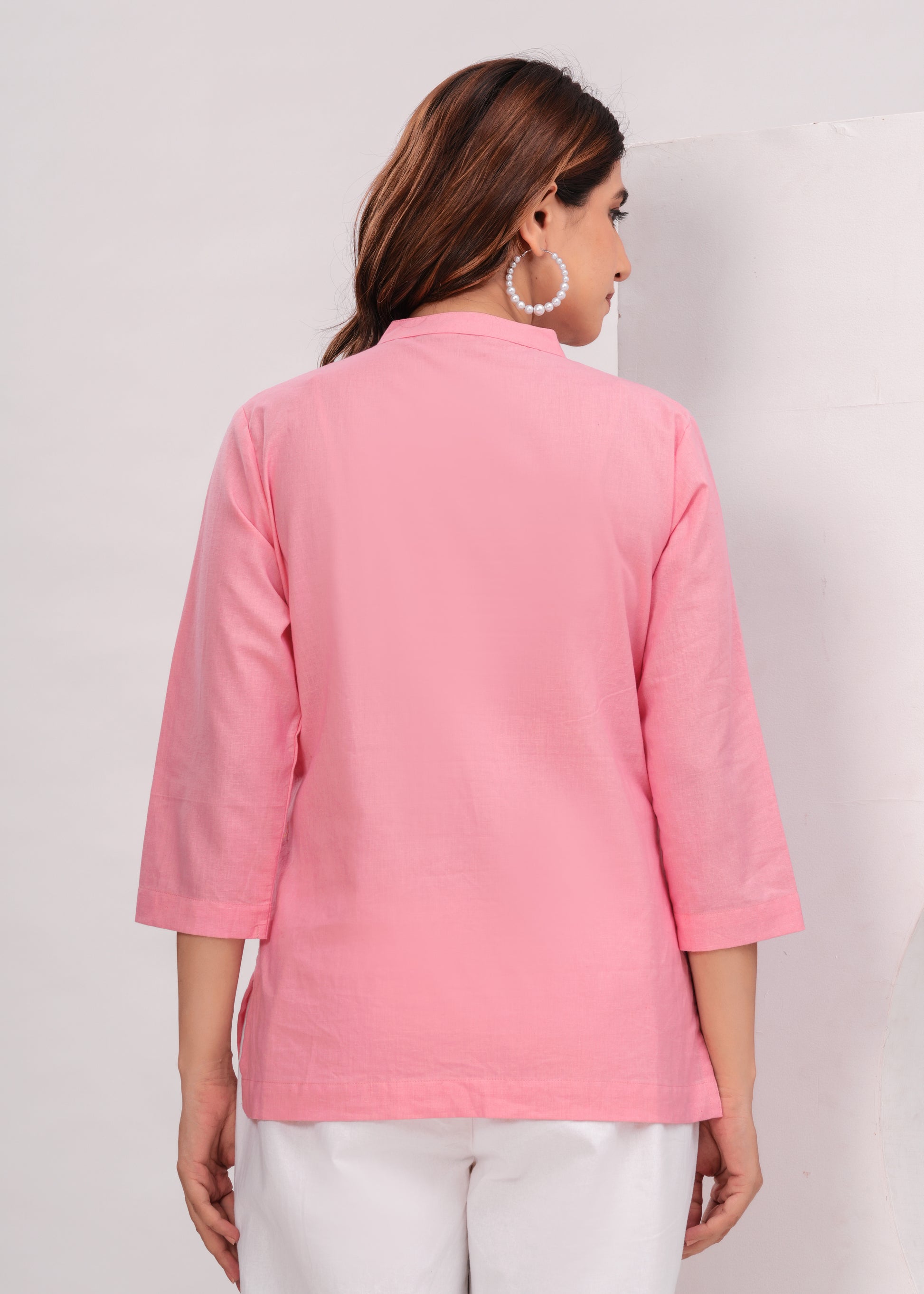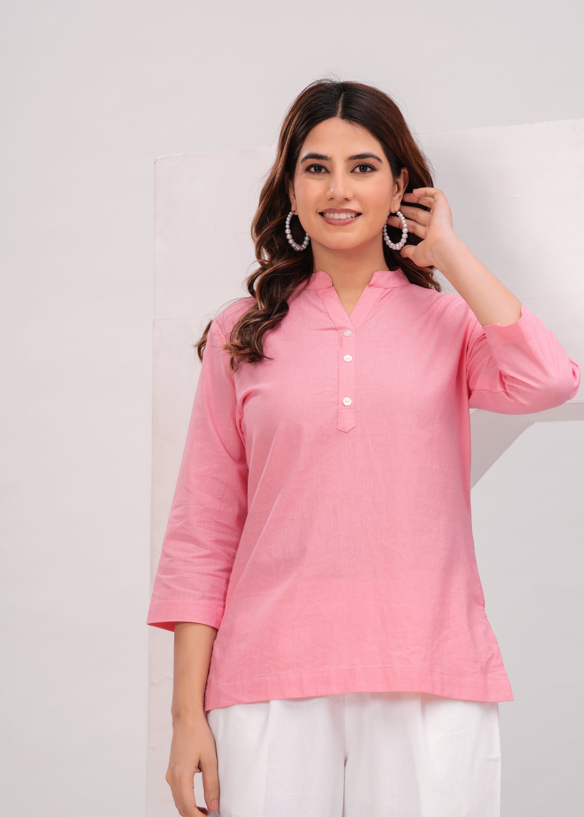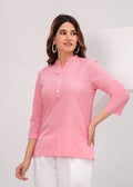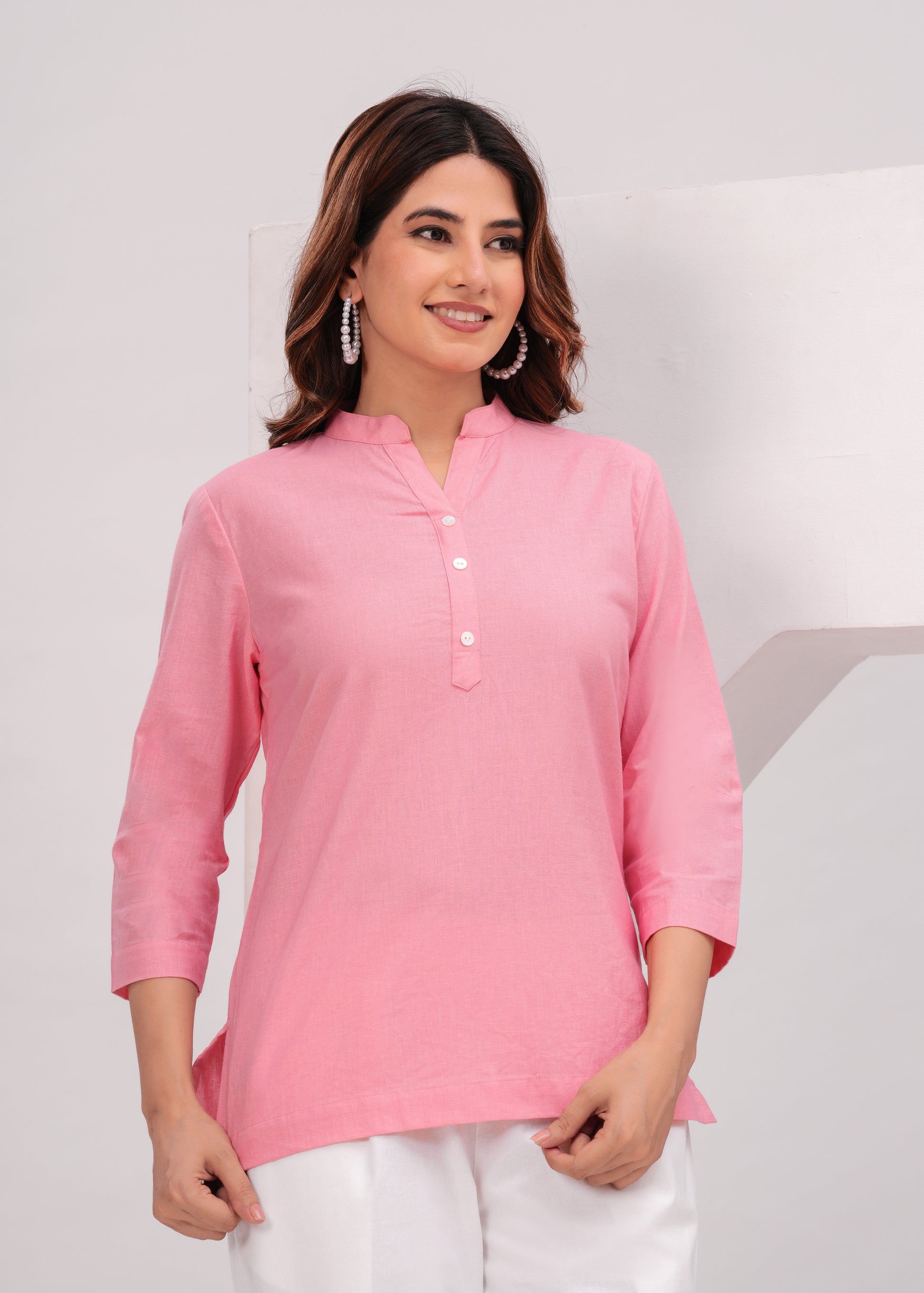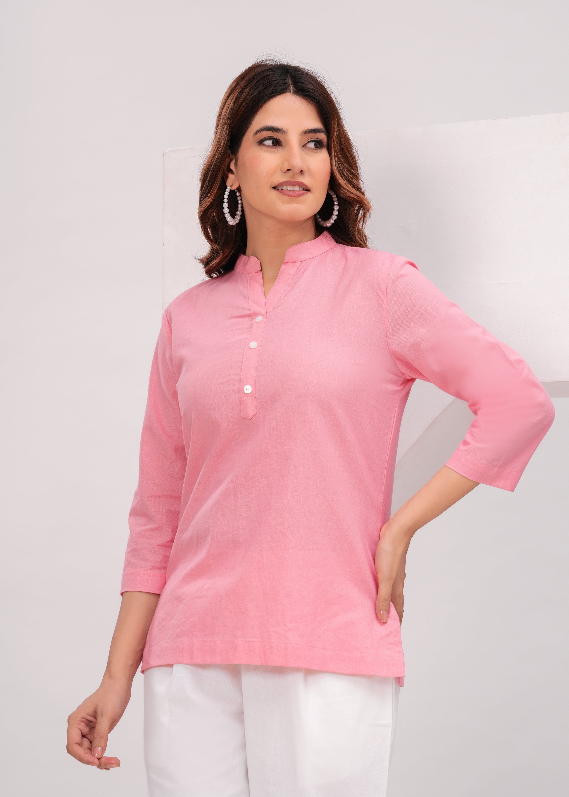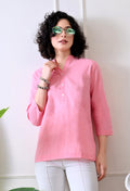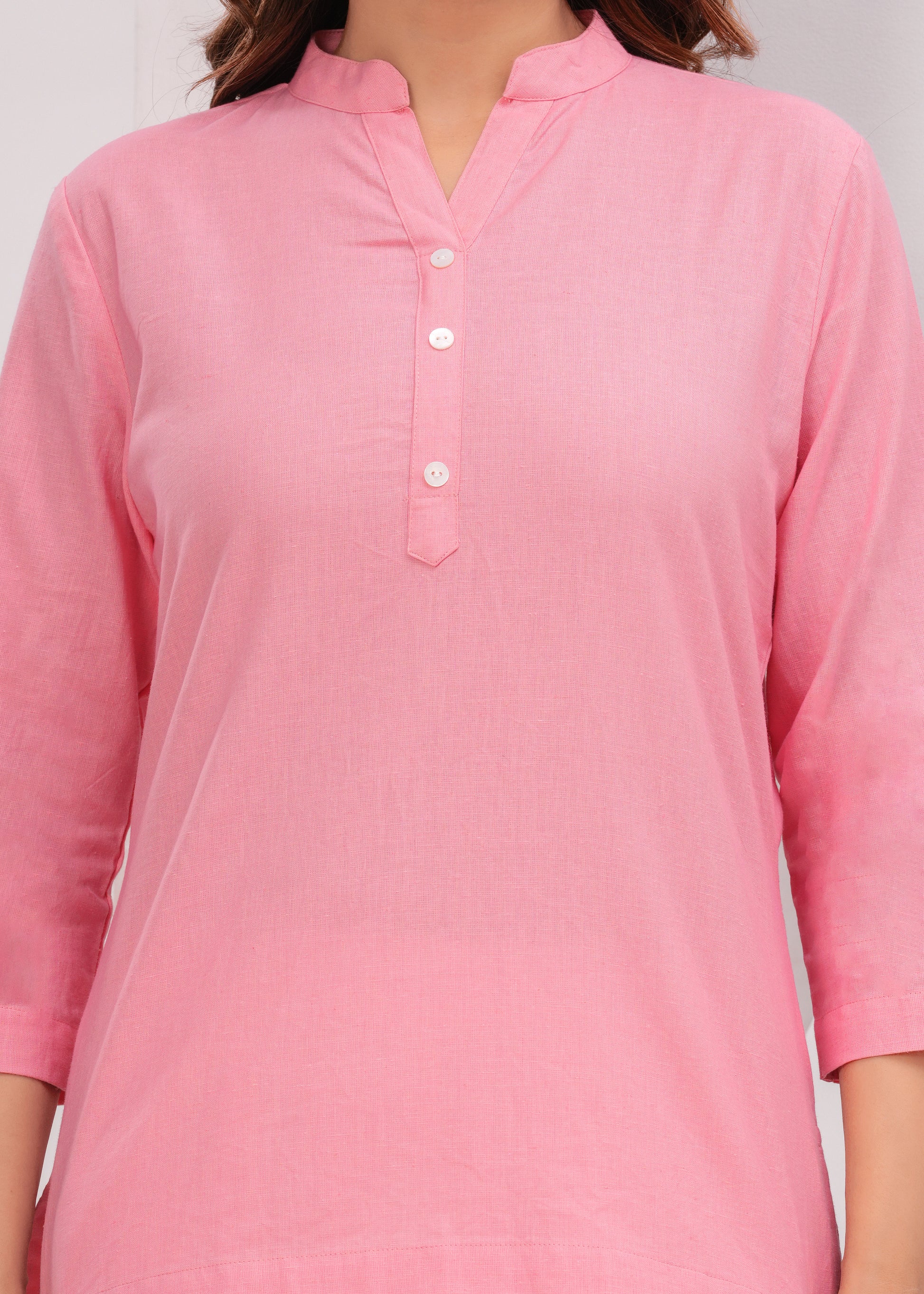 Light Pink Airy Solid Linen Comfortable Short Kurta