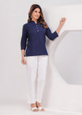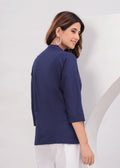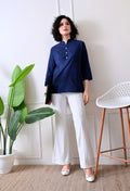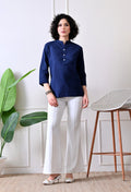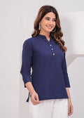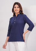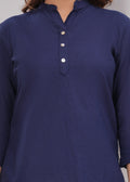 Navy Blue Airy Solid Linen Comfortable Short Kurta
