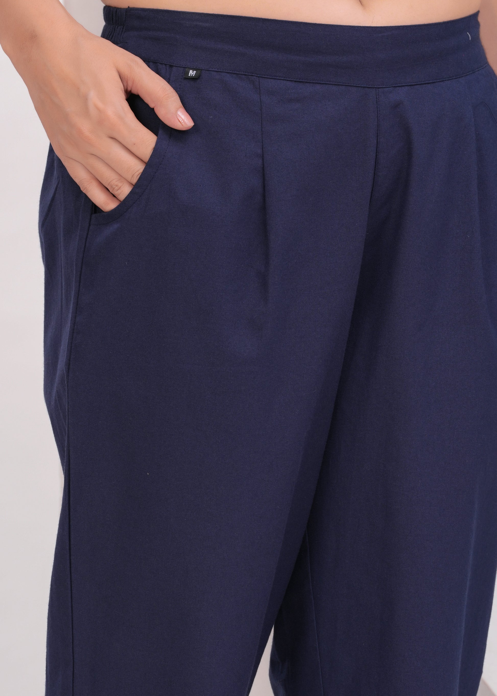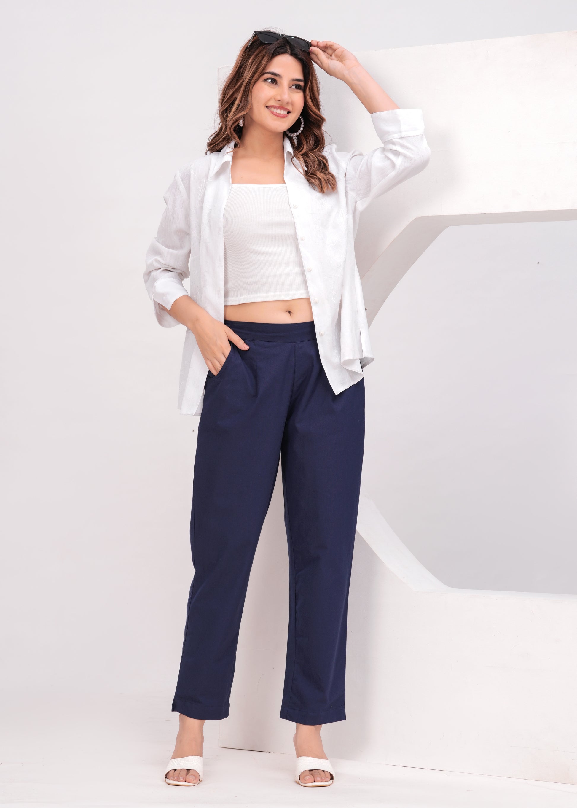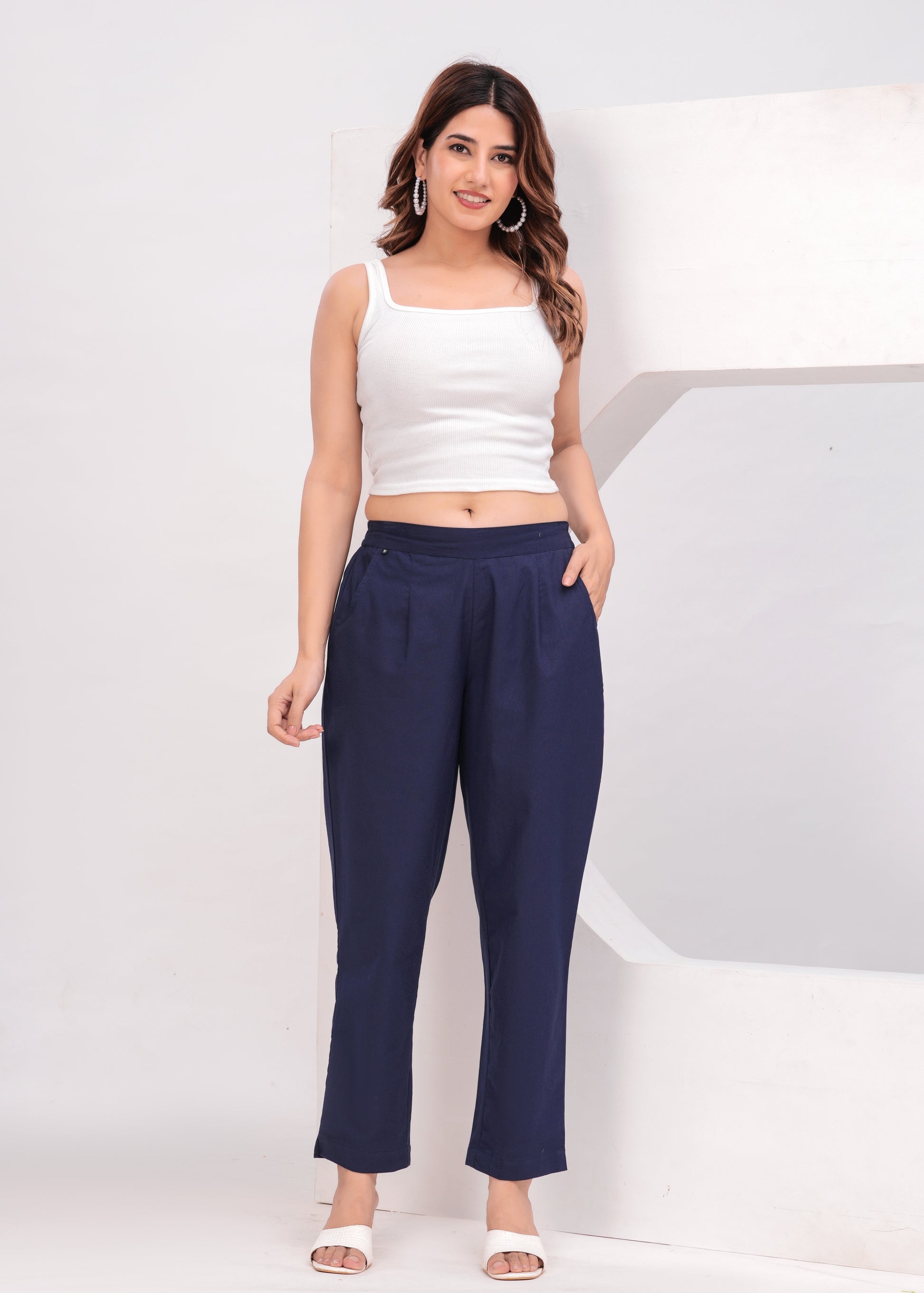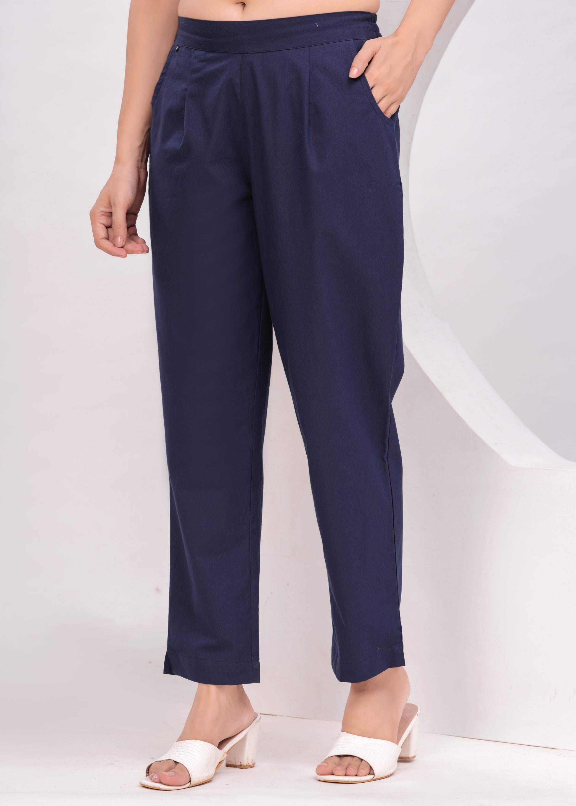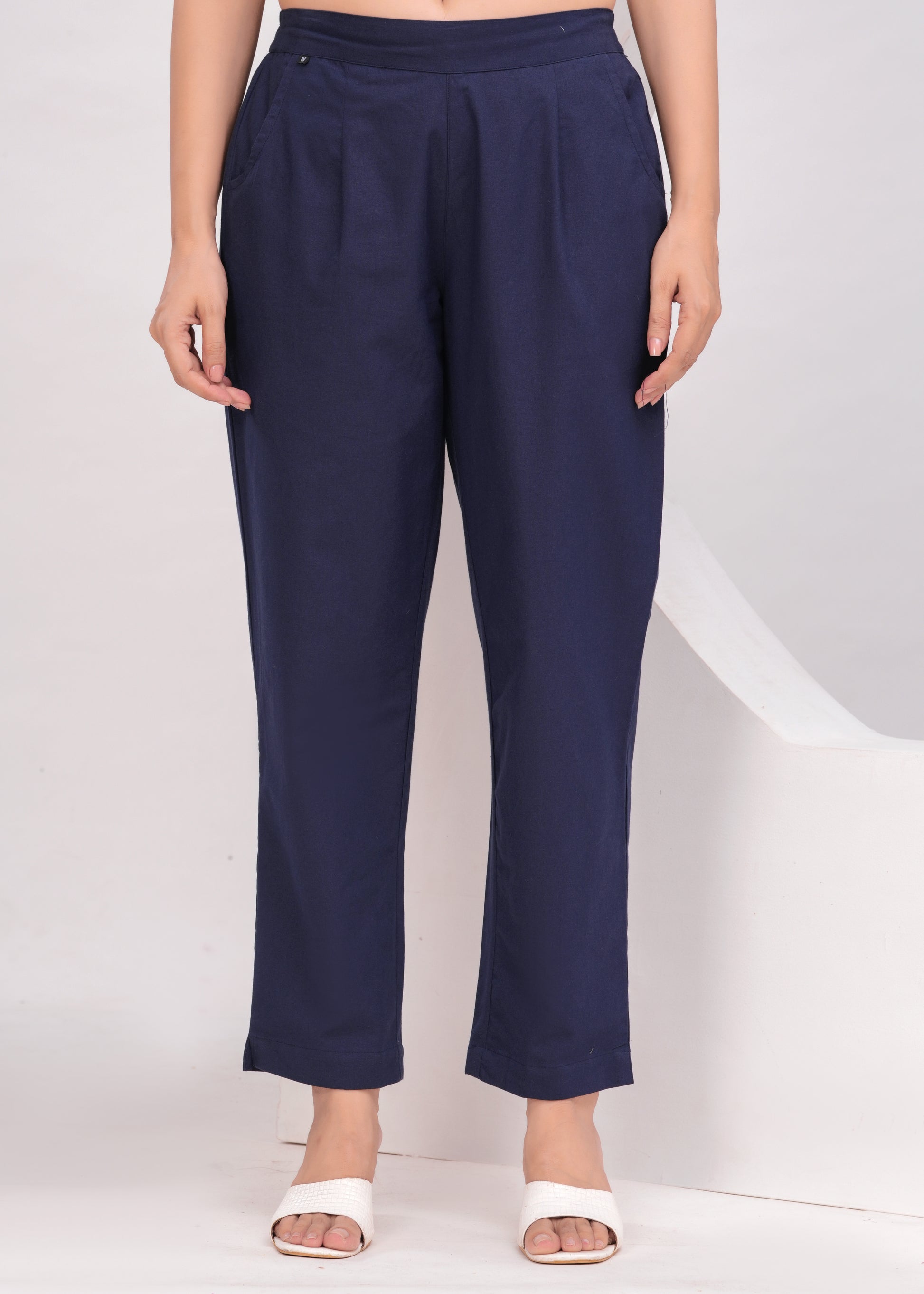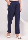 Navy Blue Everyday Solid Airy Linen Cotton Pant