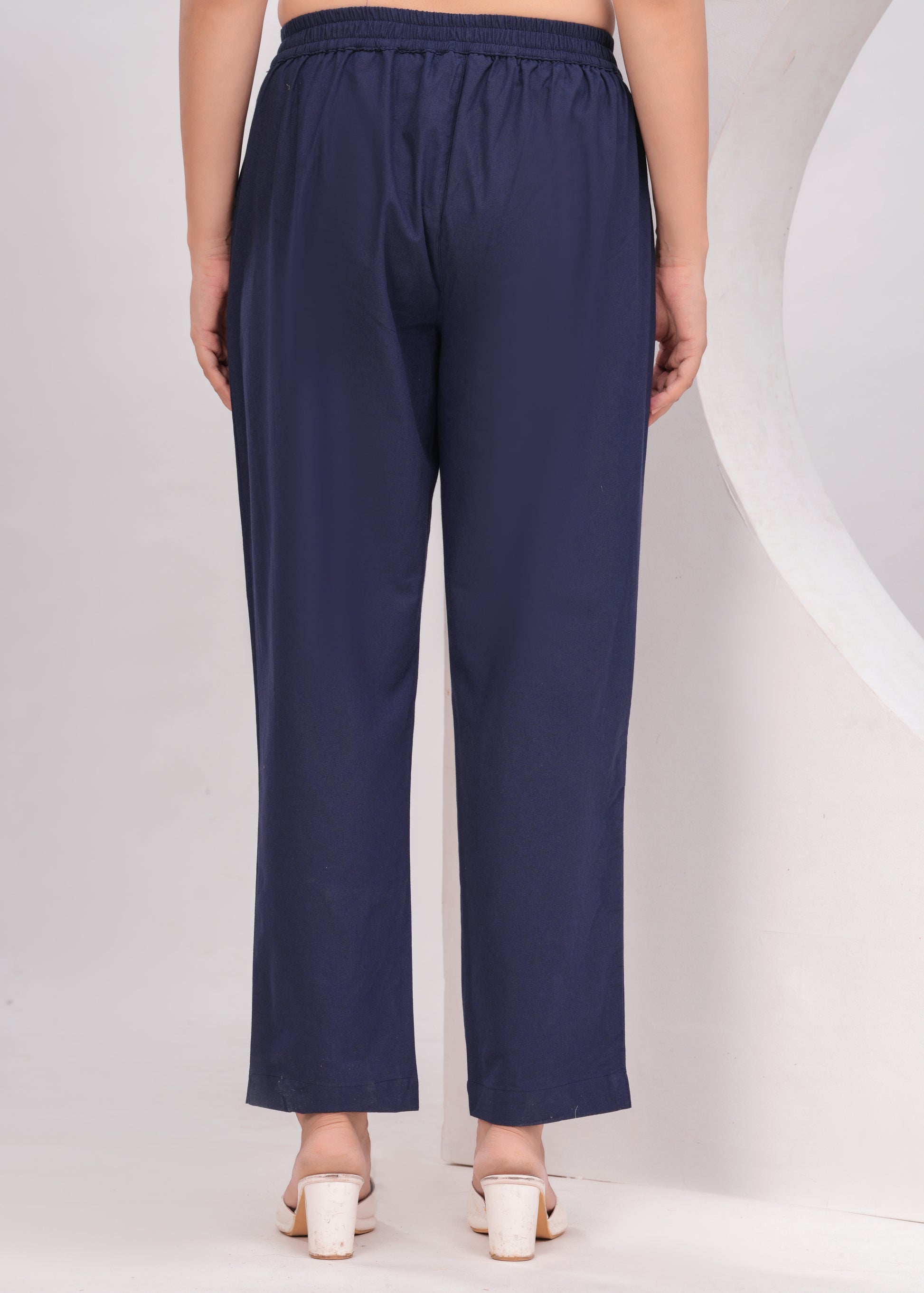 A versatile cotton pant designed to blend comfort with everyday style. Crafted in premium cotton fabric, these bottoms feature a solid design and regular fit — making them perfect to pair with kurtis, tops, or tunics. Ideal for daily wear, work, or casual outings, they’re a wardrobe essential for effortless dressing.