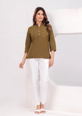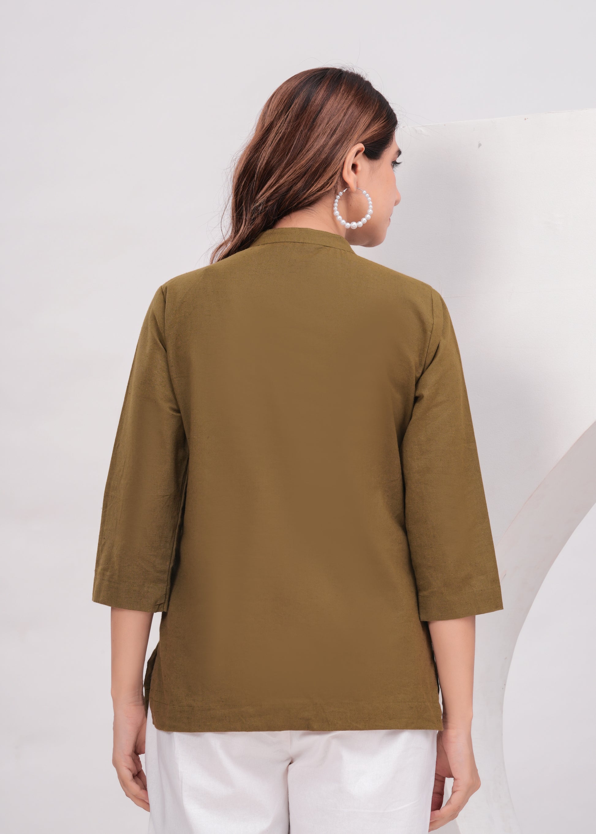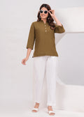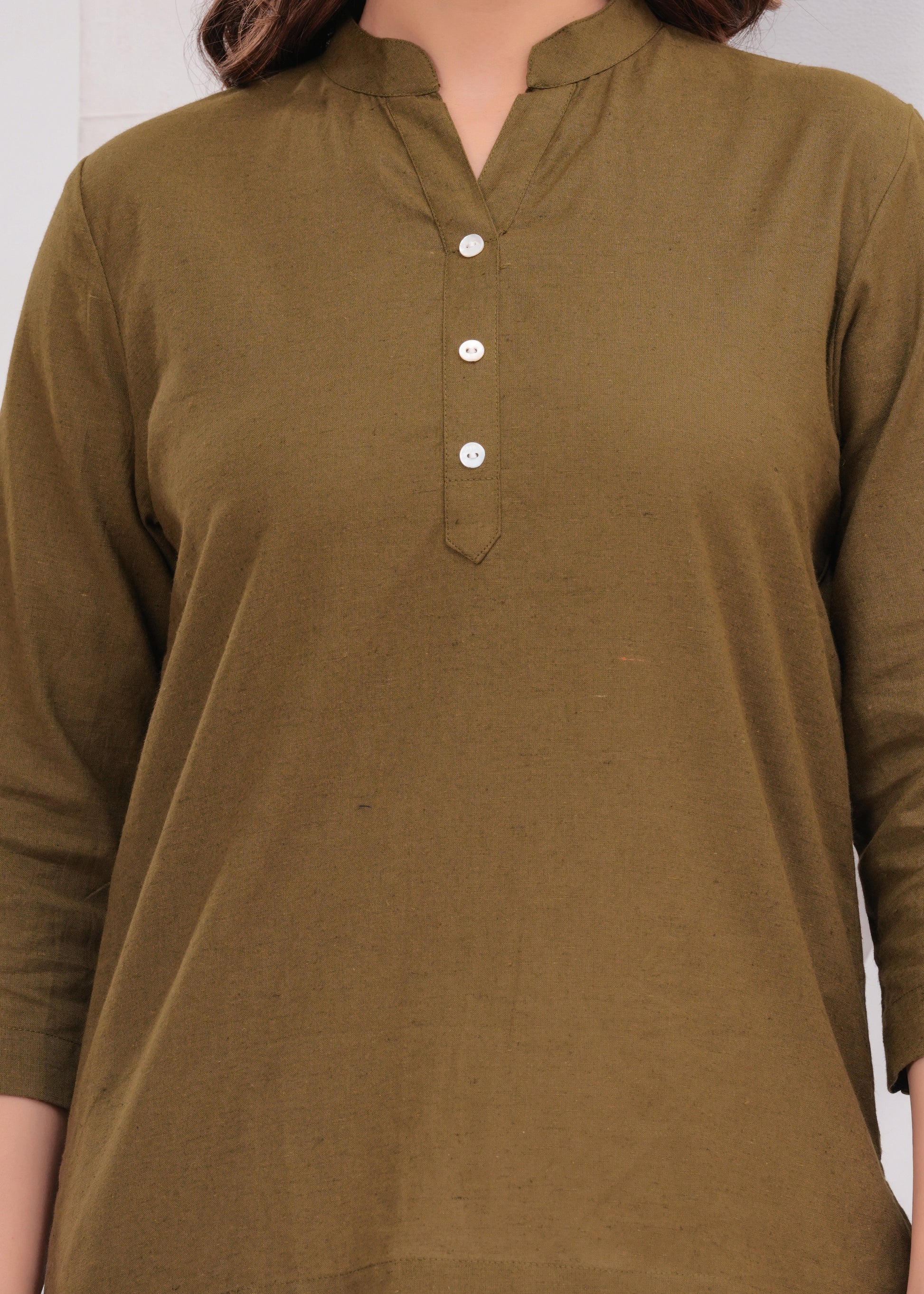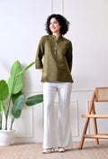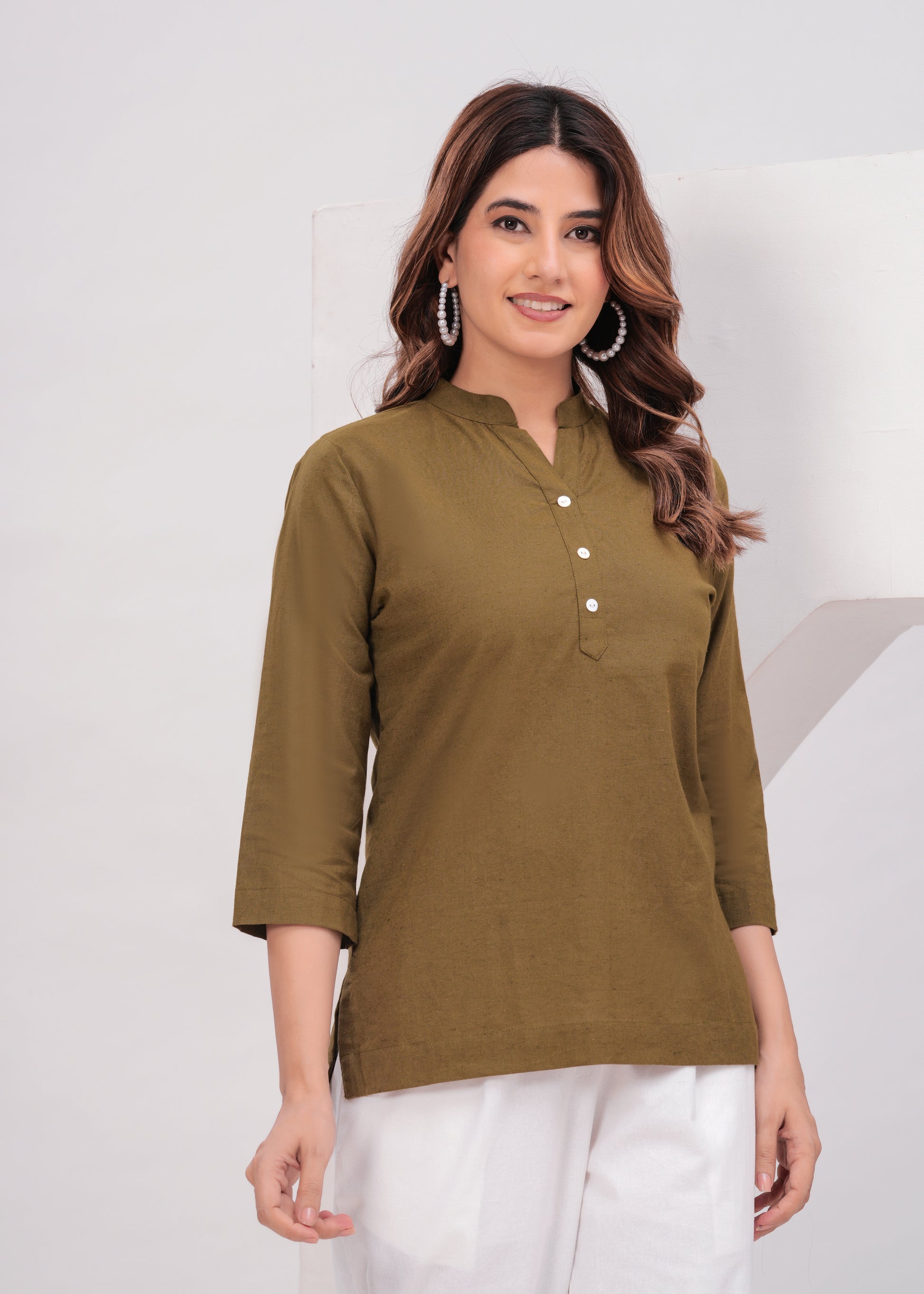 Olive Green Airy Solid Linen Comfortable Short Kurta