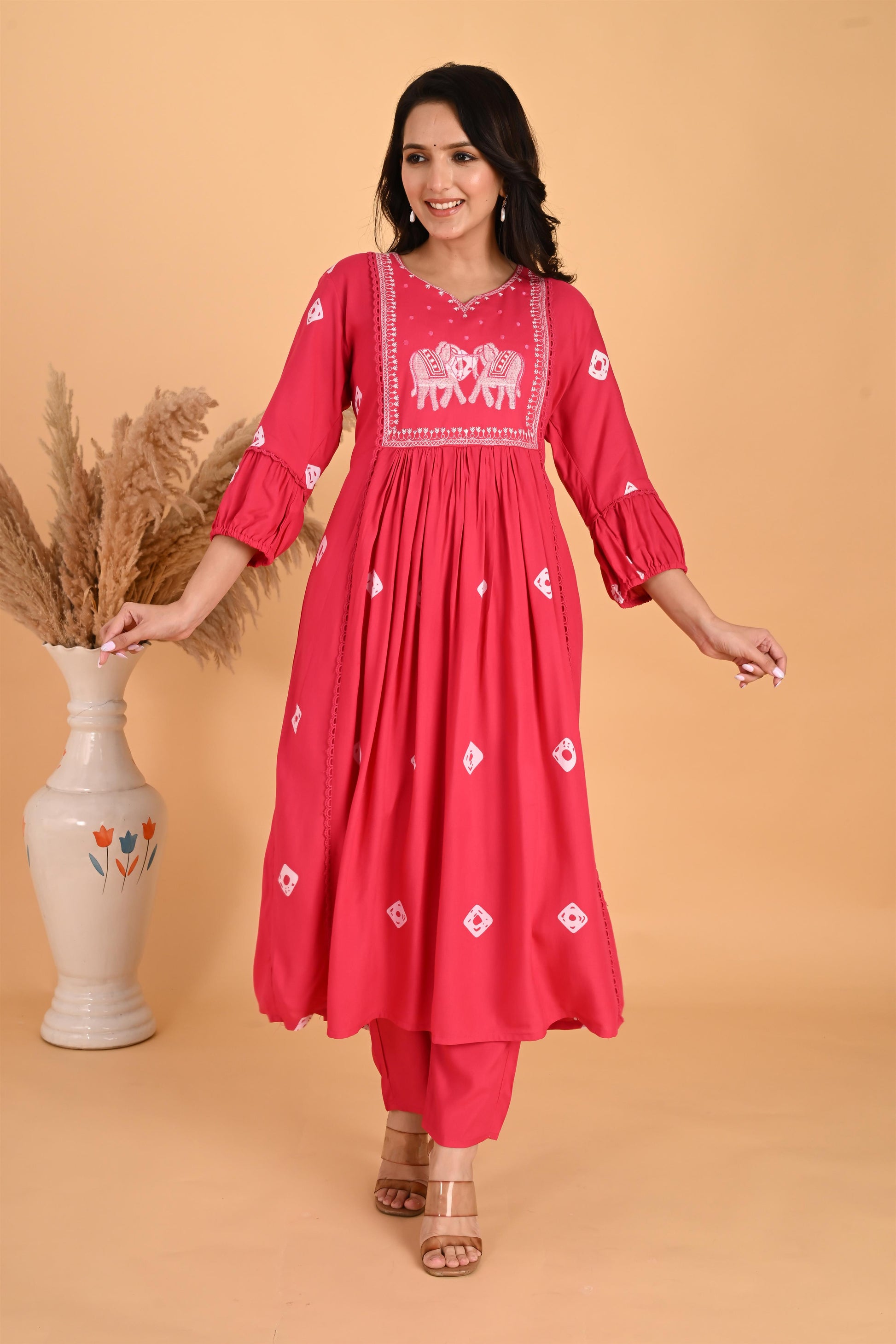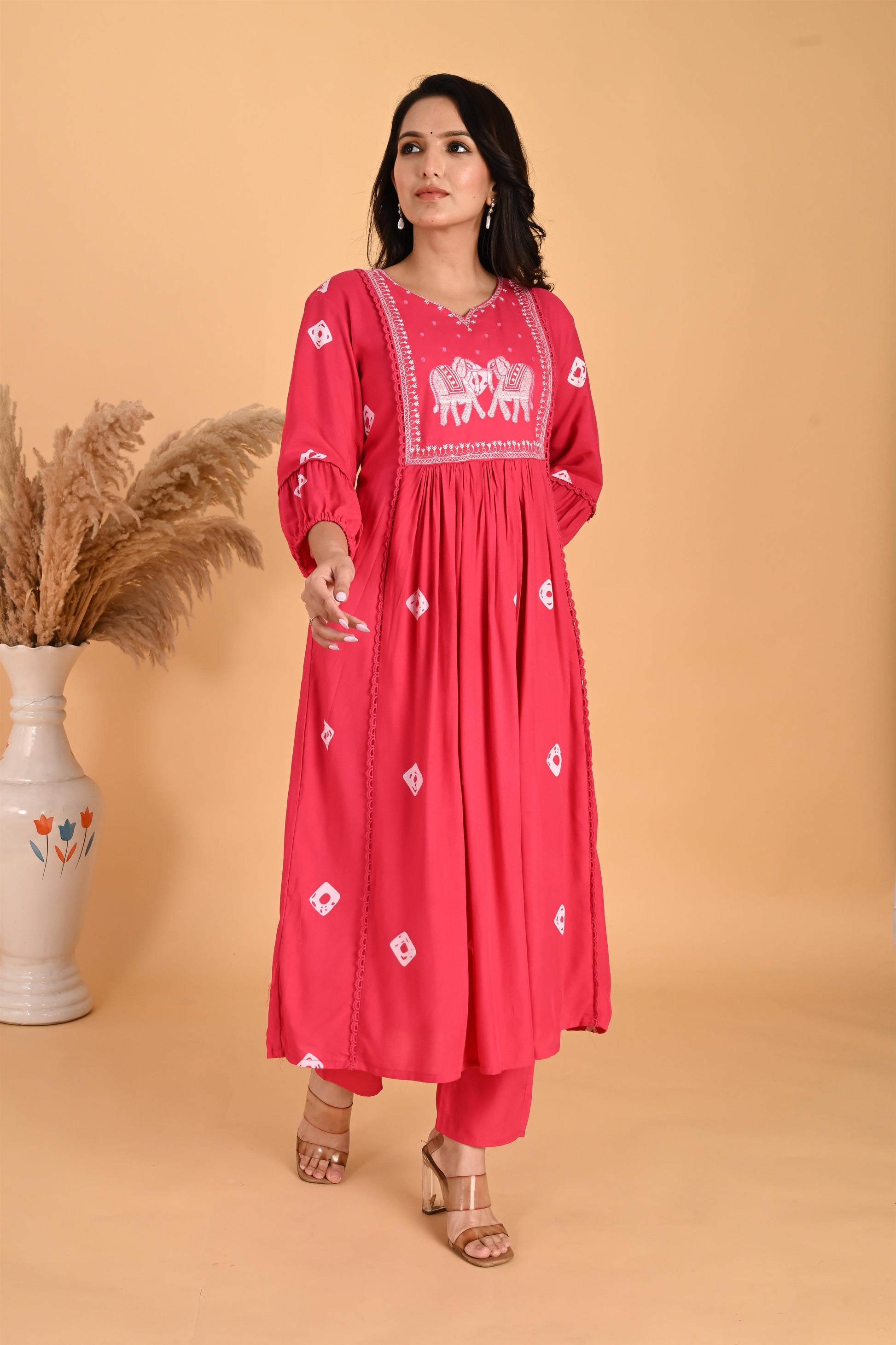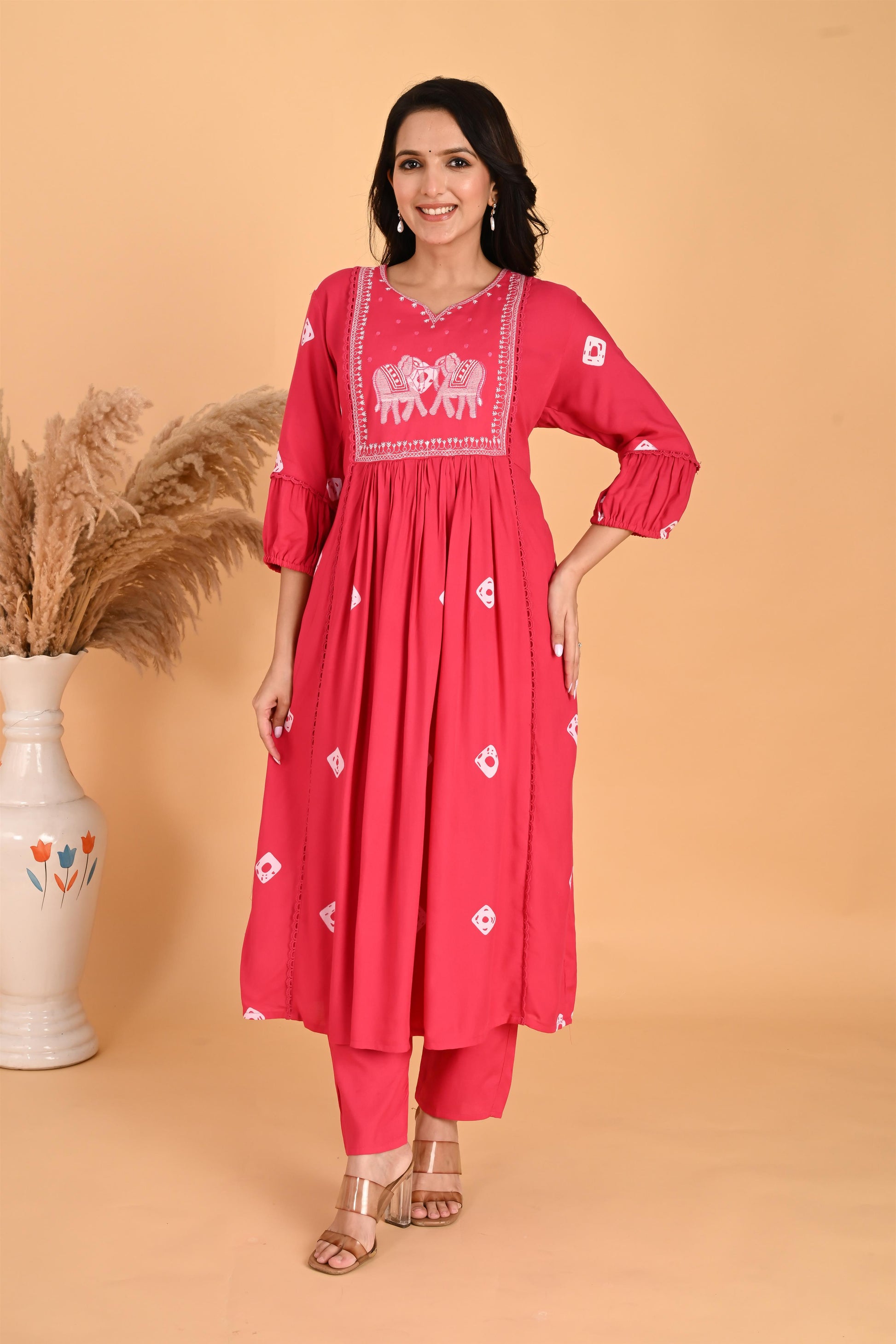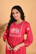 Pink Hathi embroidery kurta set