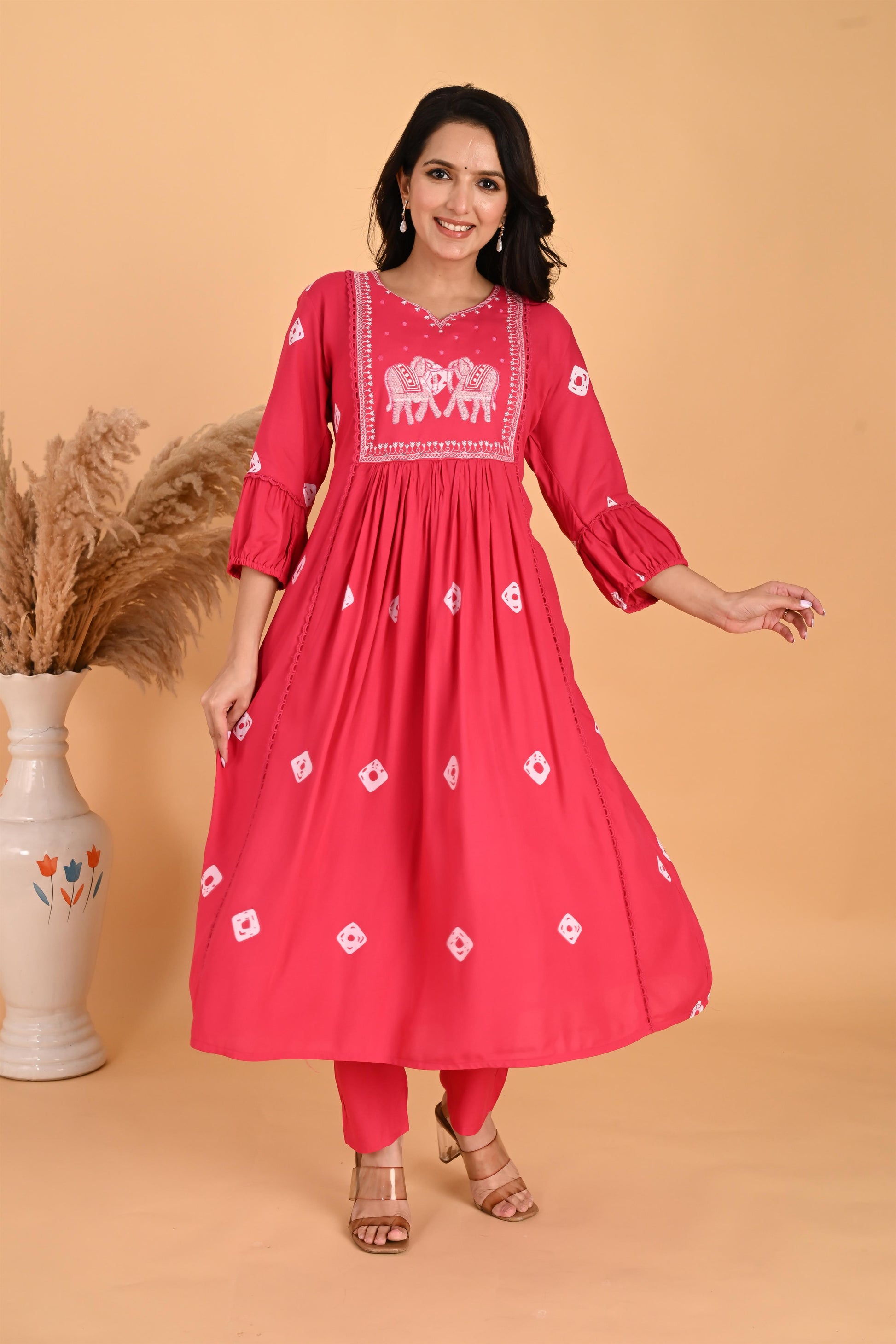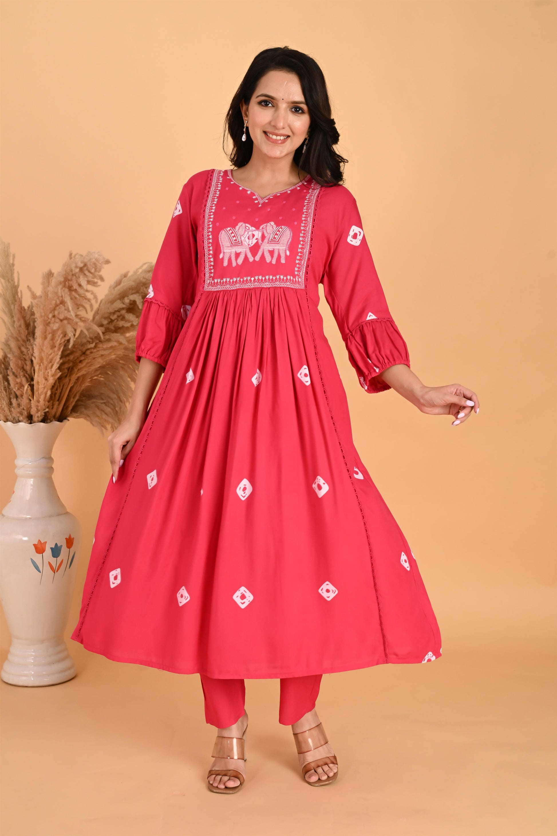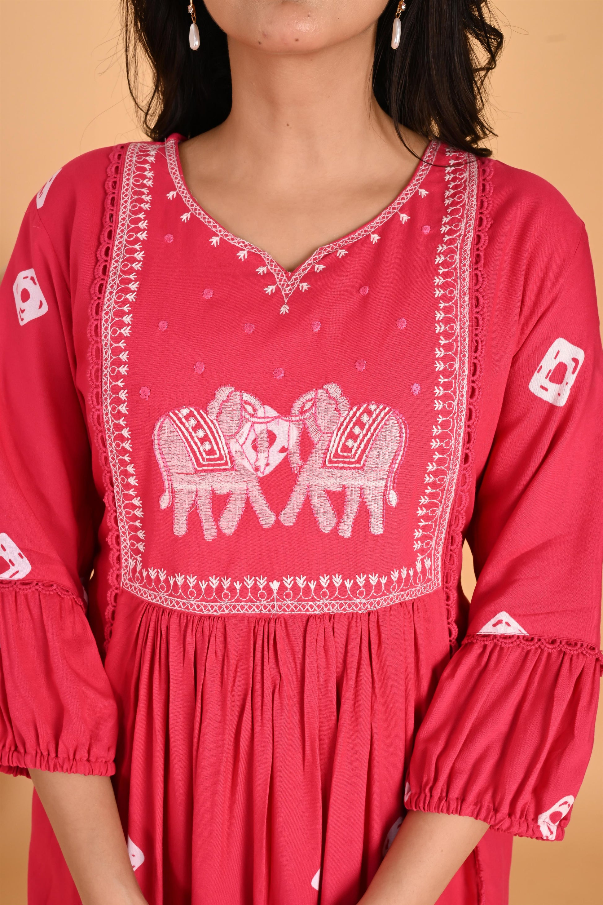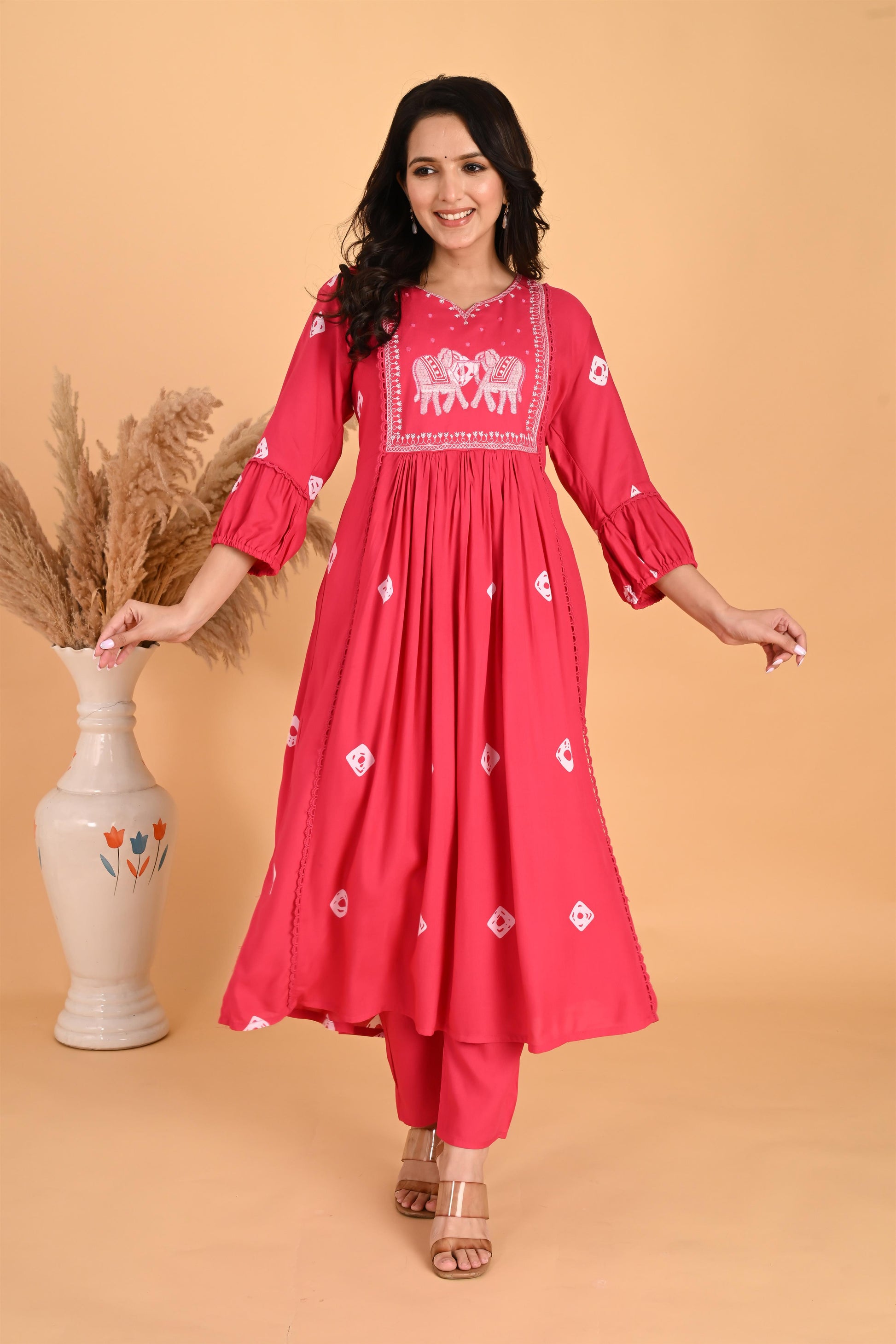 Pink Hathi embroidery kurta set