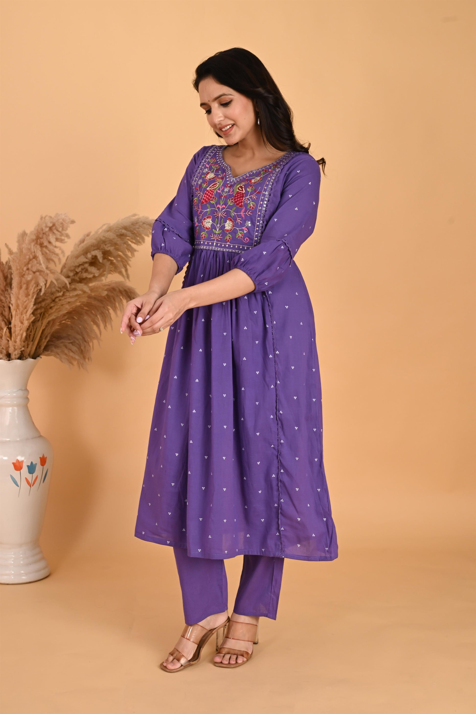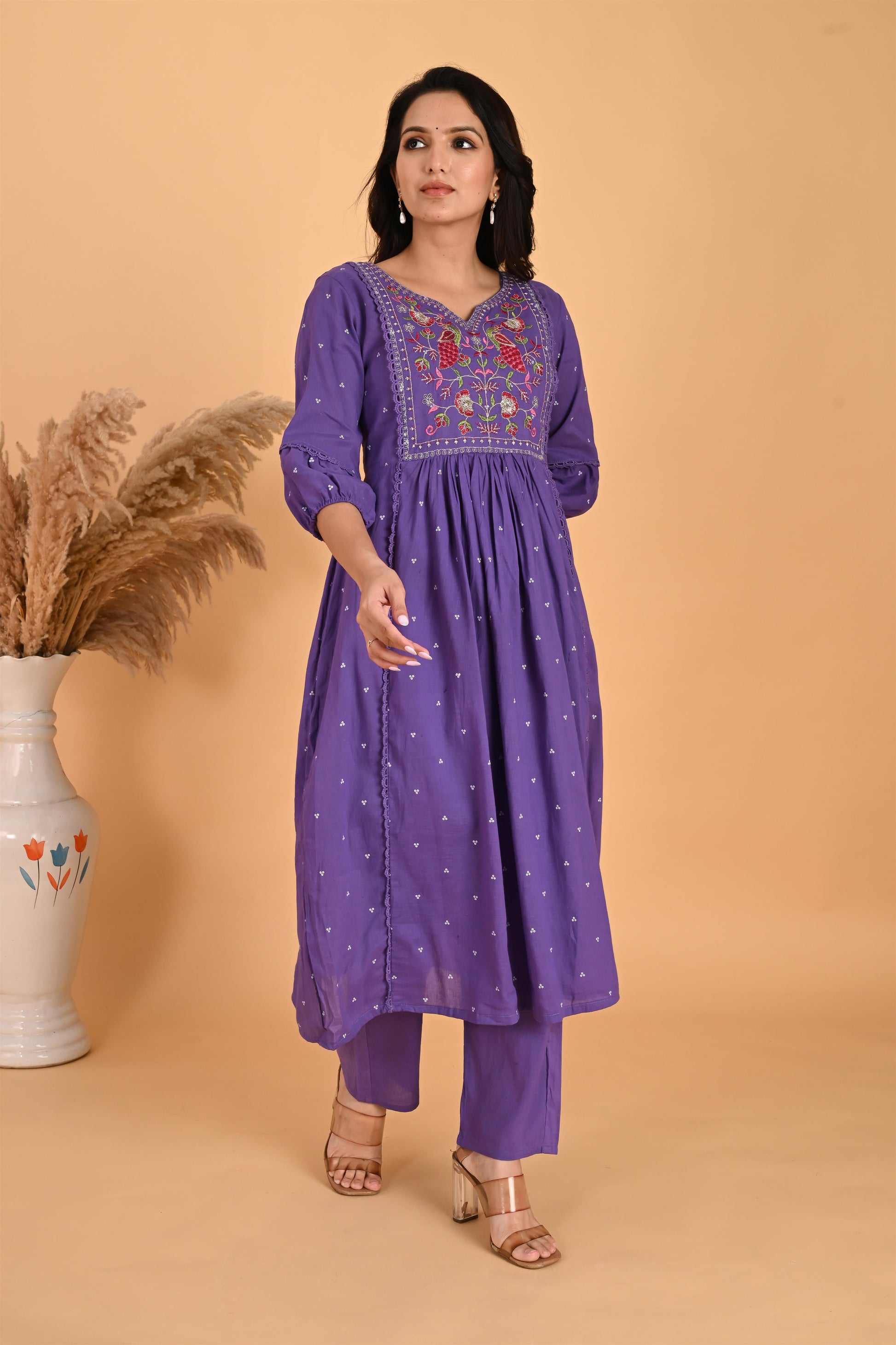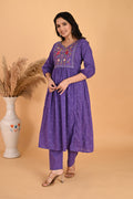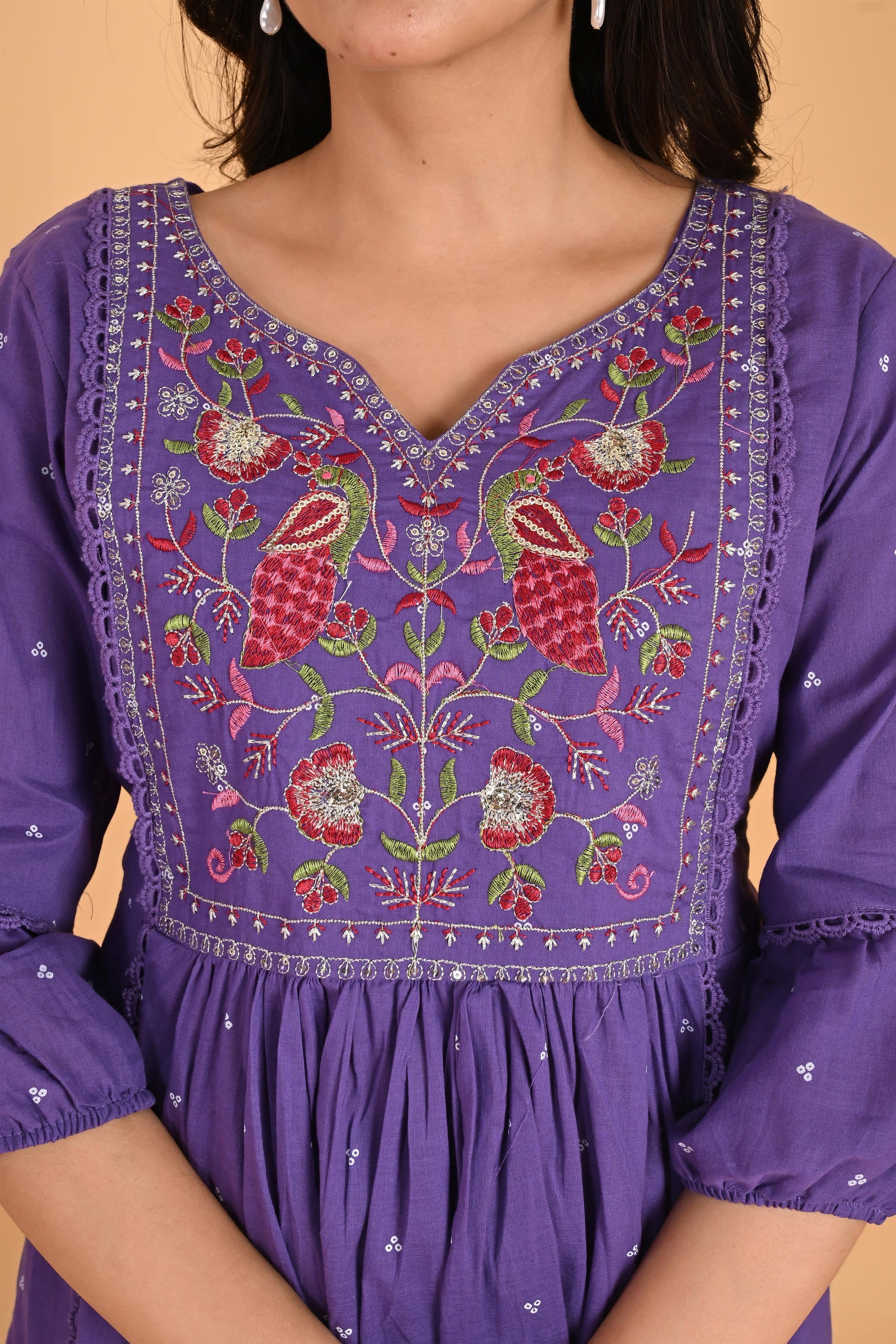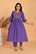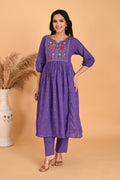 Purple Peacock embroidery kurta set
