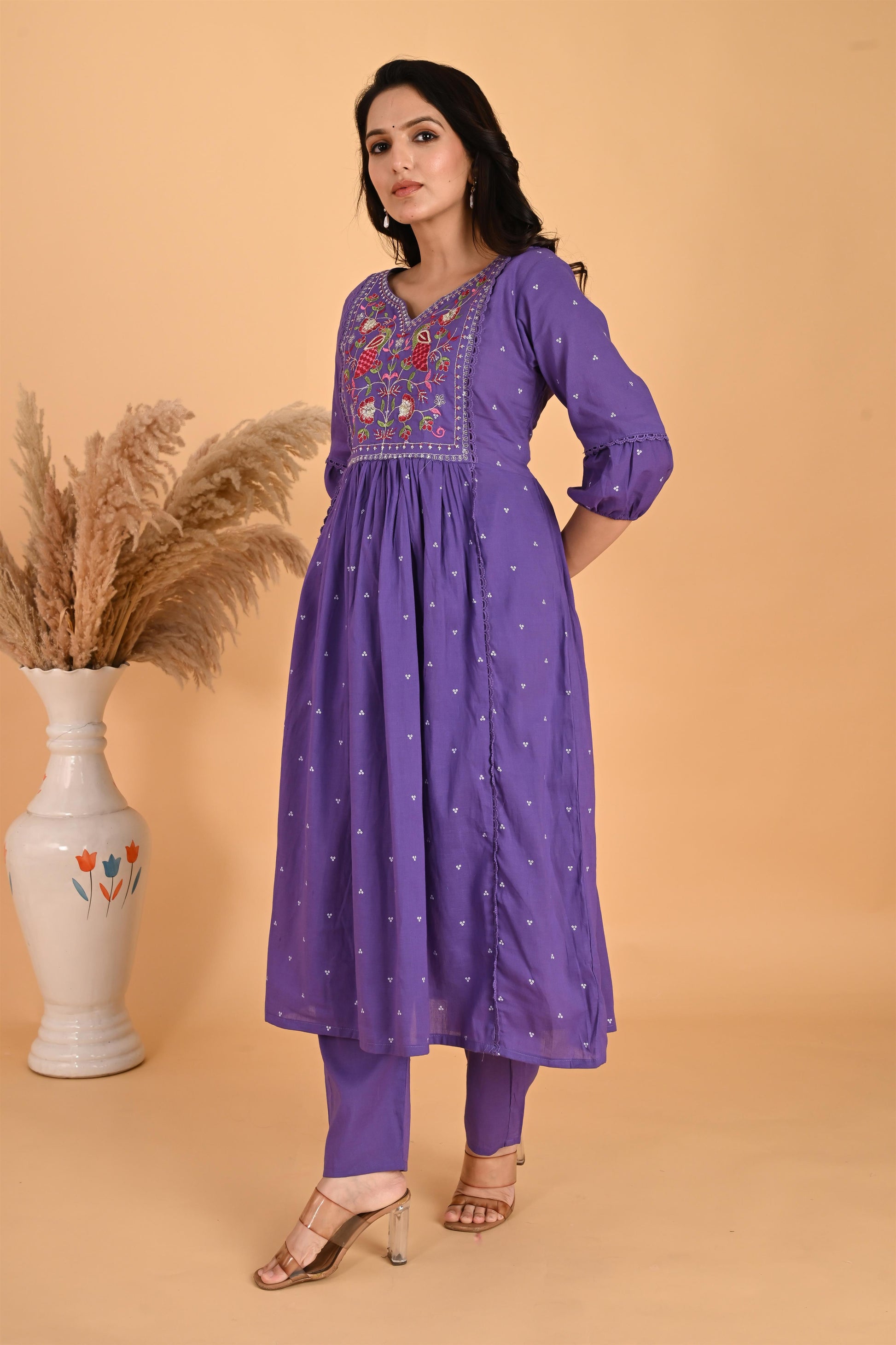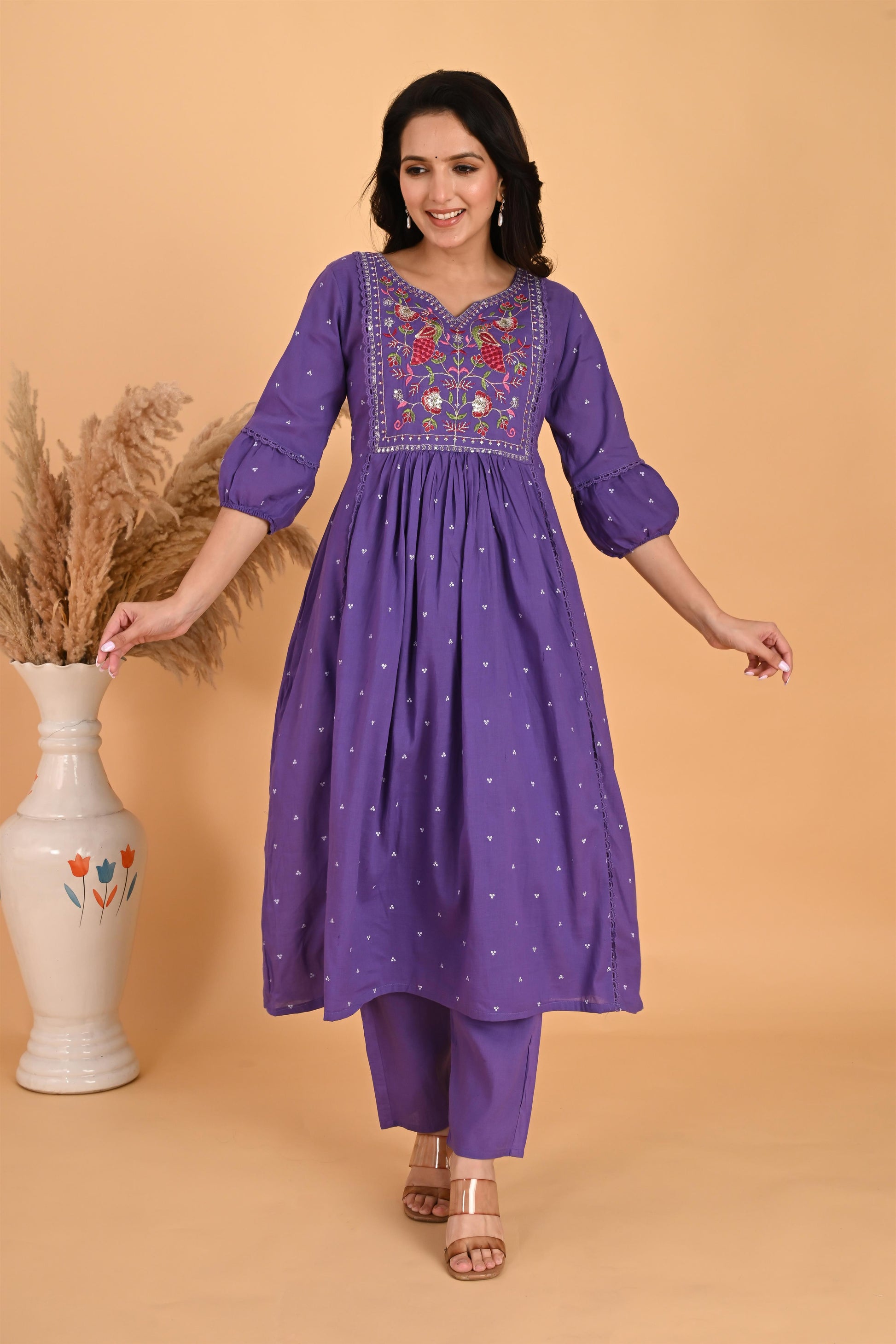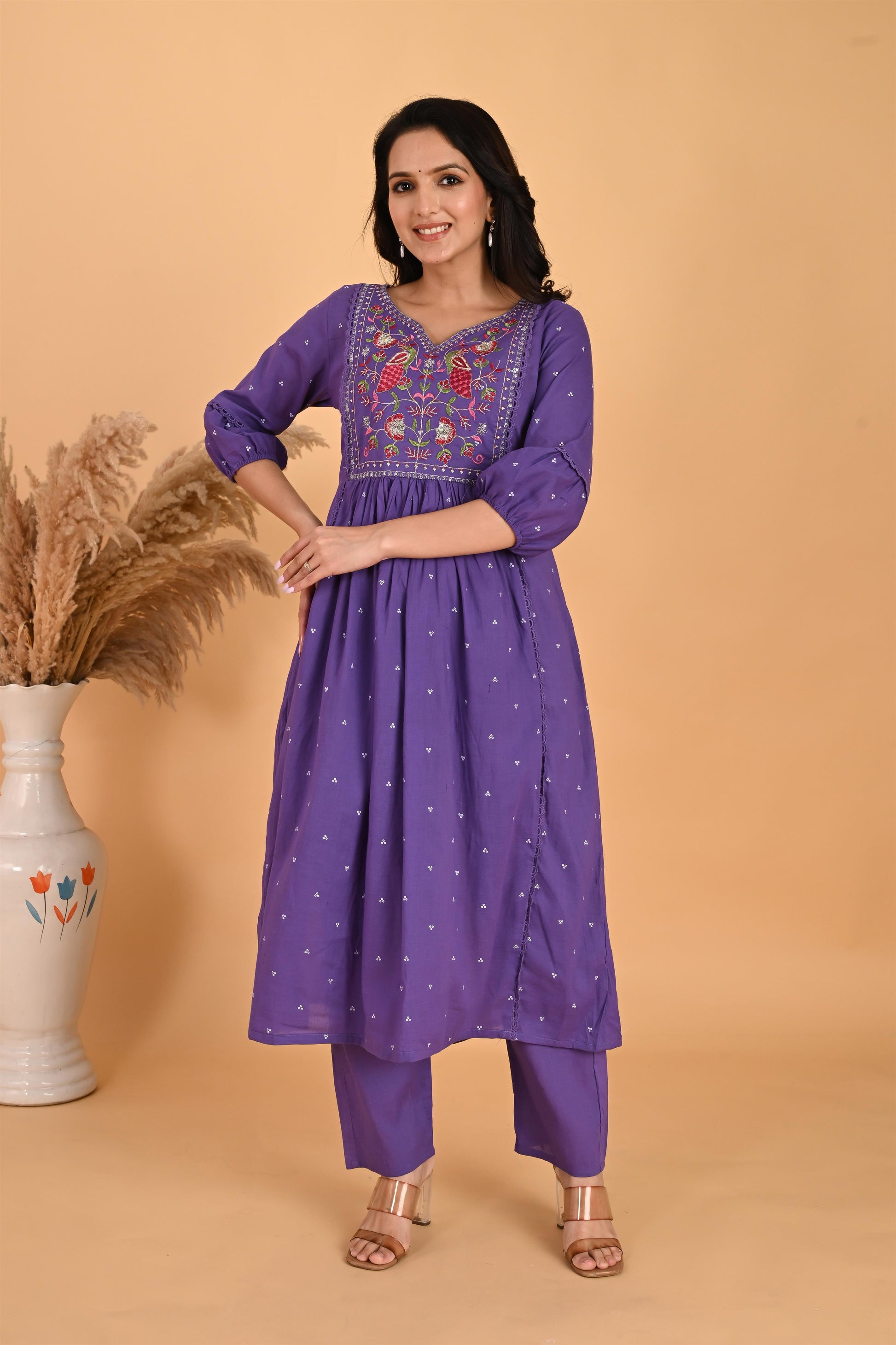 Purple Peacock embroidery kurta set