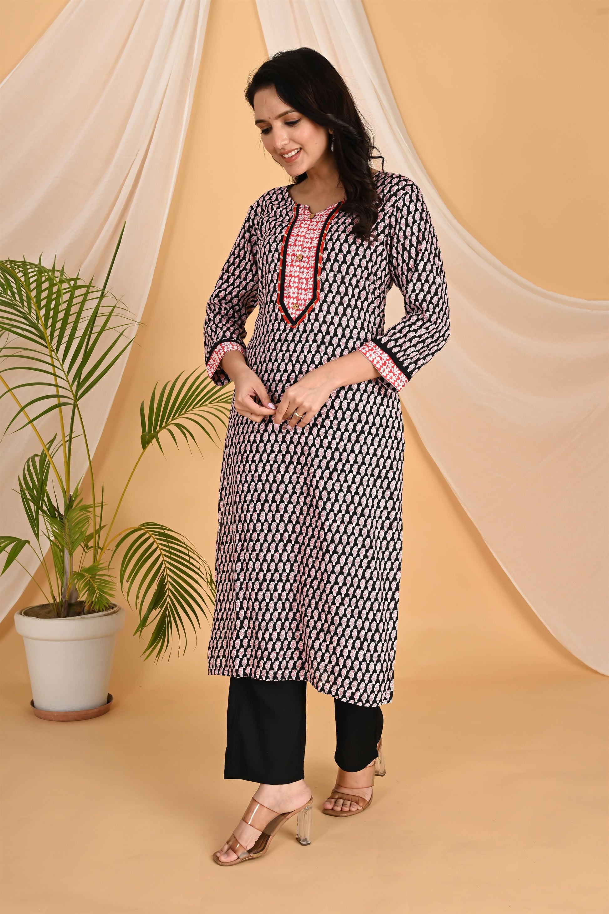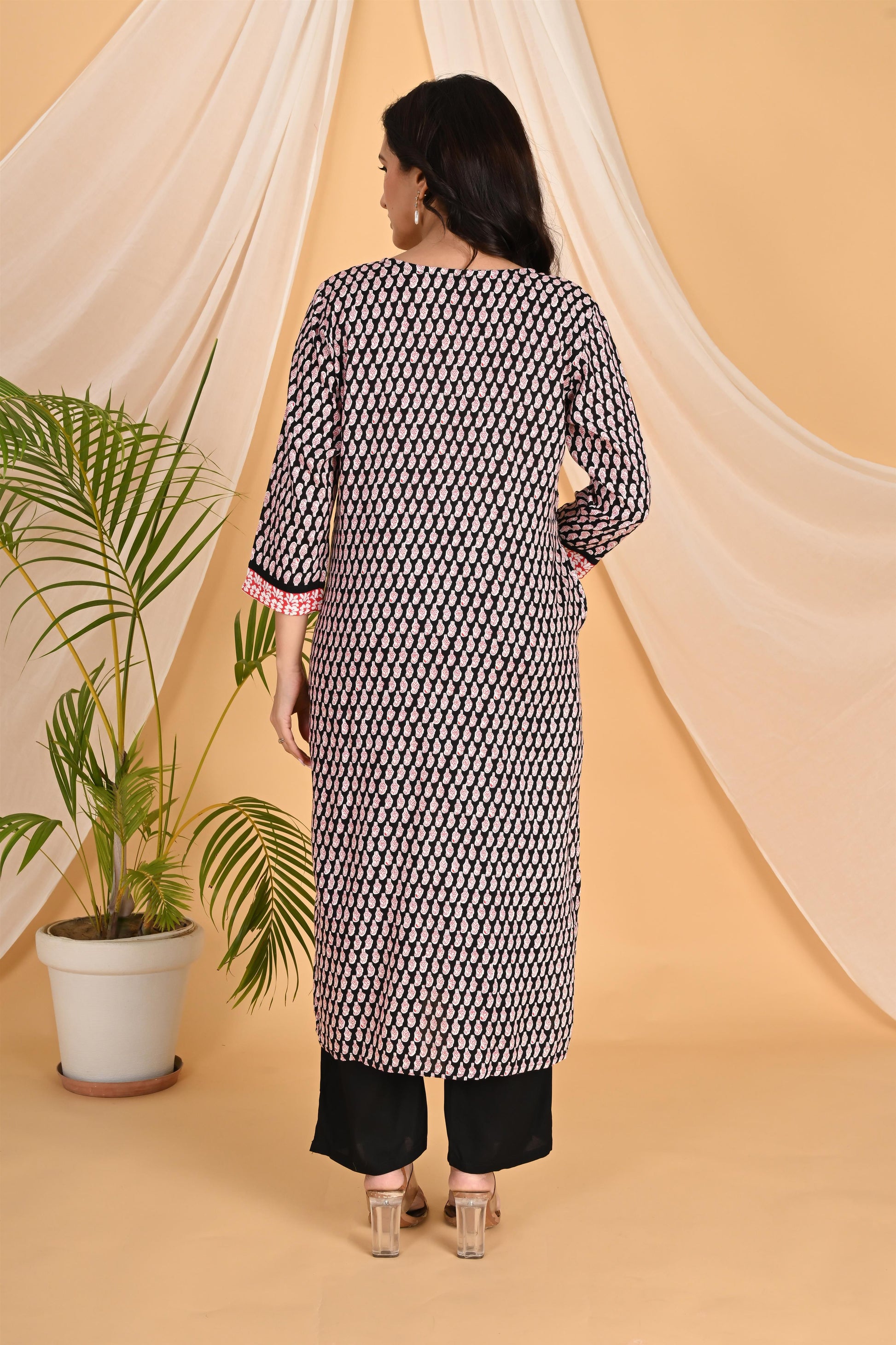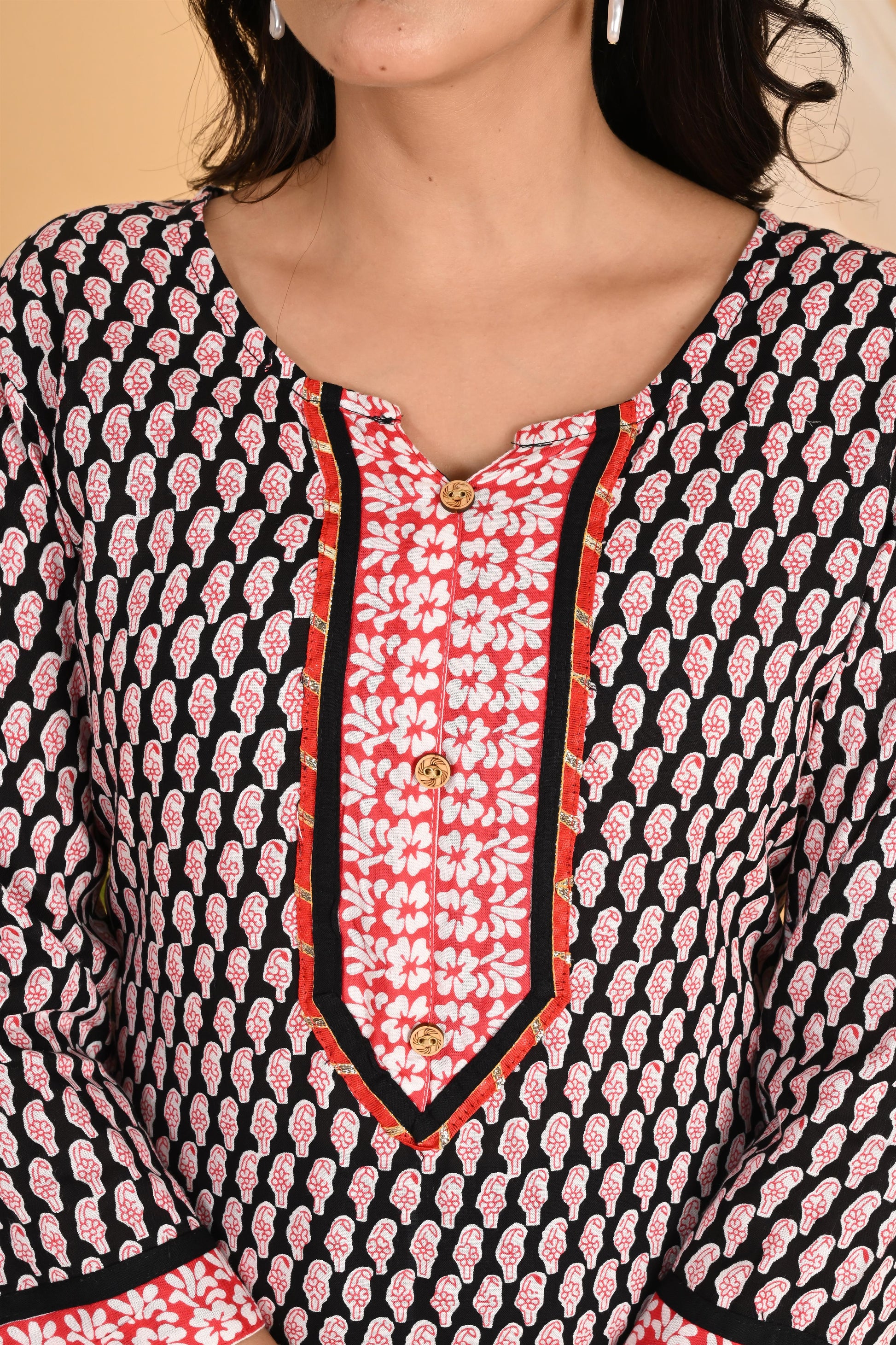 Red and black kurta set