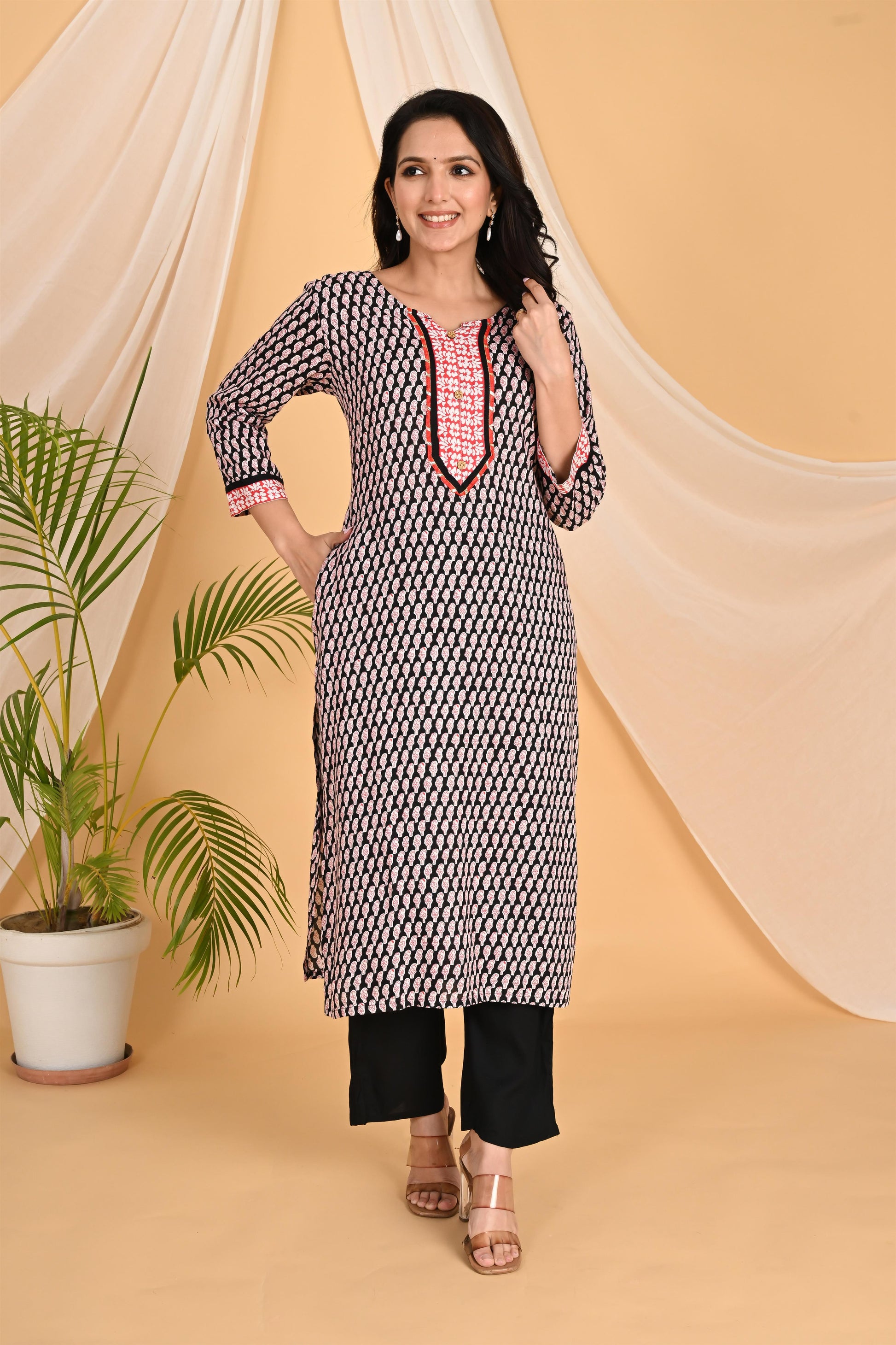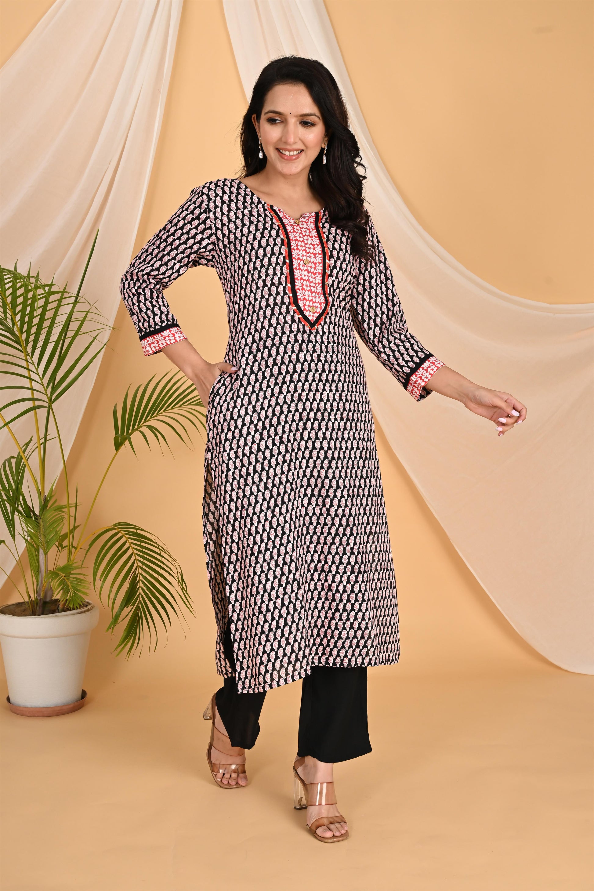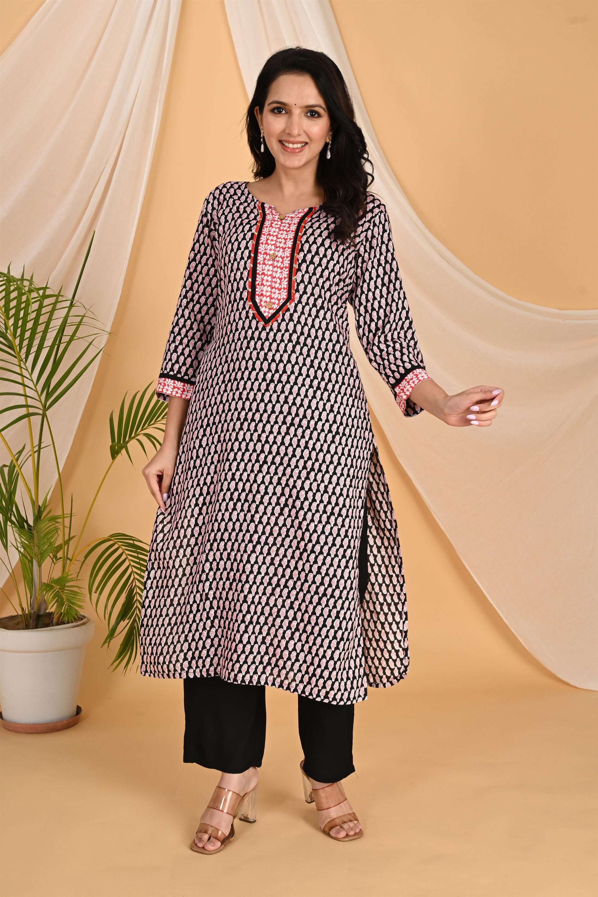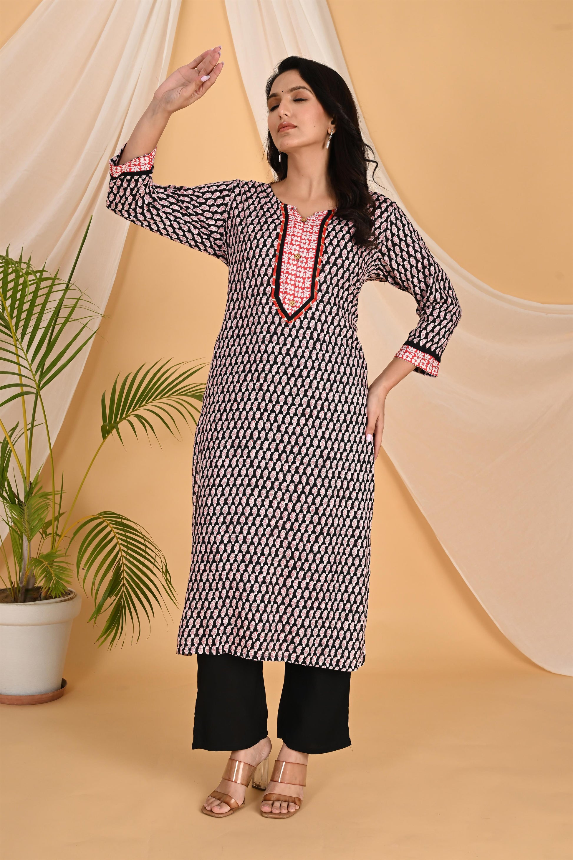 Red and black kurta set