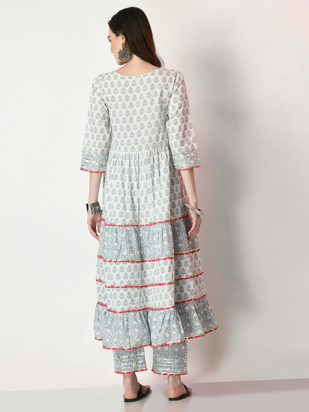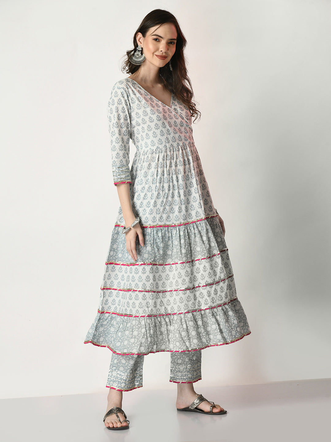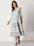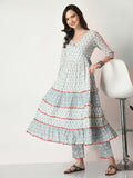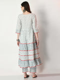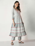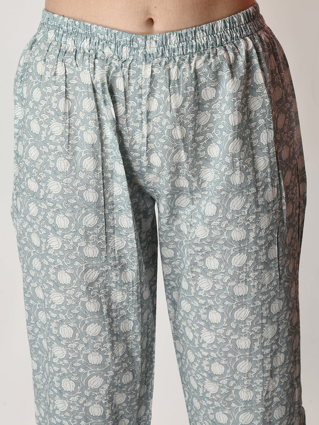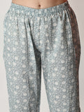 Grey Pure Cotton Printed Kurti And Pant Set
