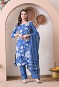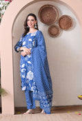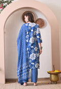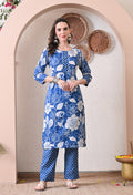 VBA Blue White Straight Kurta Pent Set