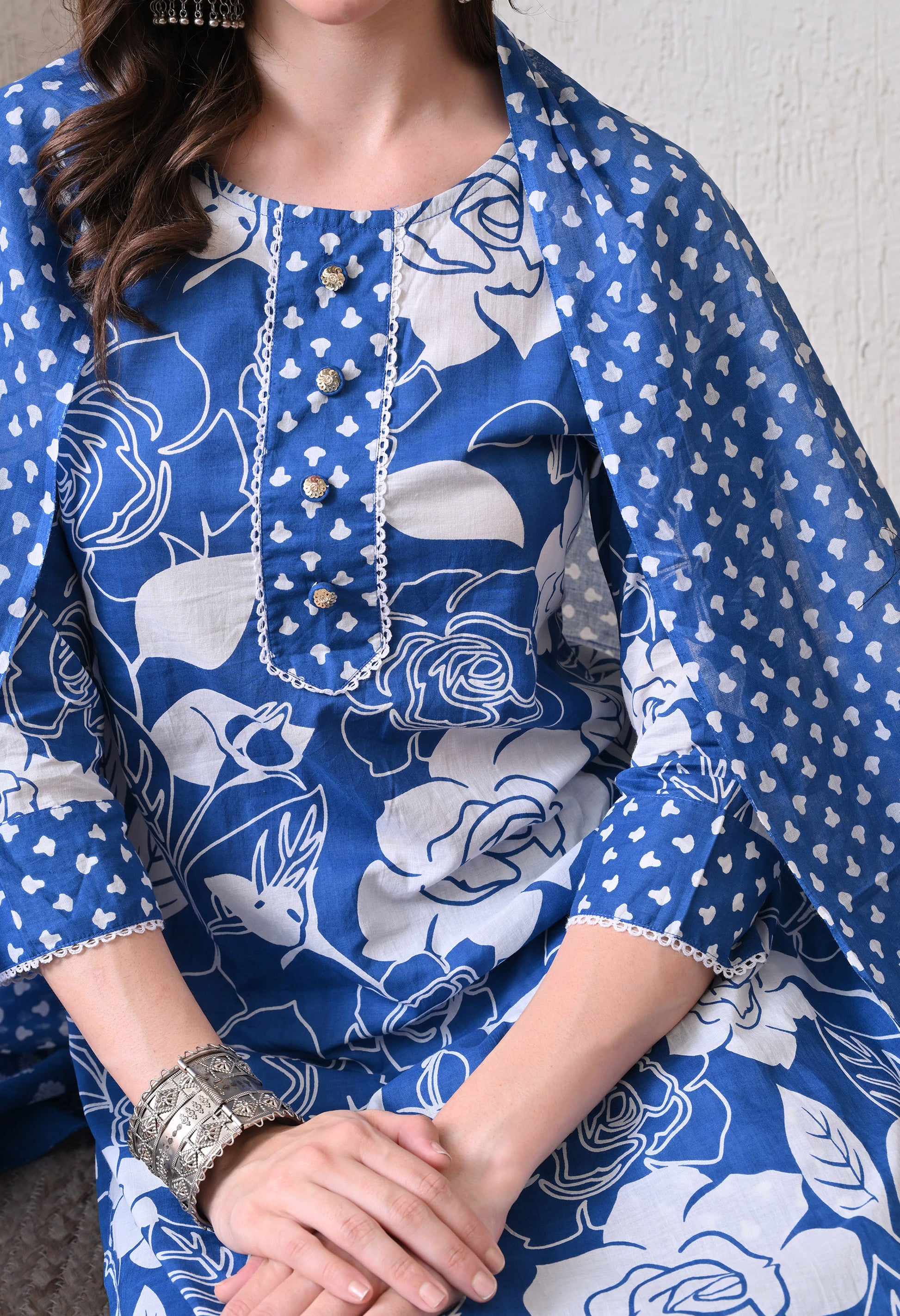 This cotton kurta set is the perfect combination of traditional elegance and everyday comfort. Crafted from breathable cotton, it keeps you at ease all day long while adding a graceful charm to your look. The set includes a beautifully tailored kurta, matching bottoms, and a soft malmal dupatta — offering a complete outfit for any occasion. From daily wear to casual gatherings or festive moments, this set is versatile, stylish, and comfortable in every season.