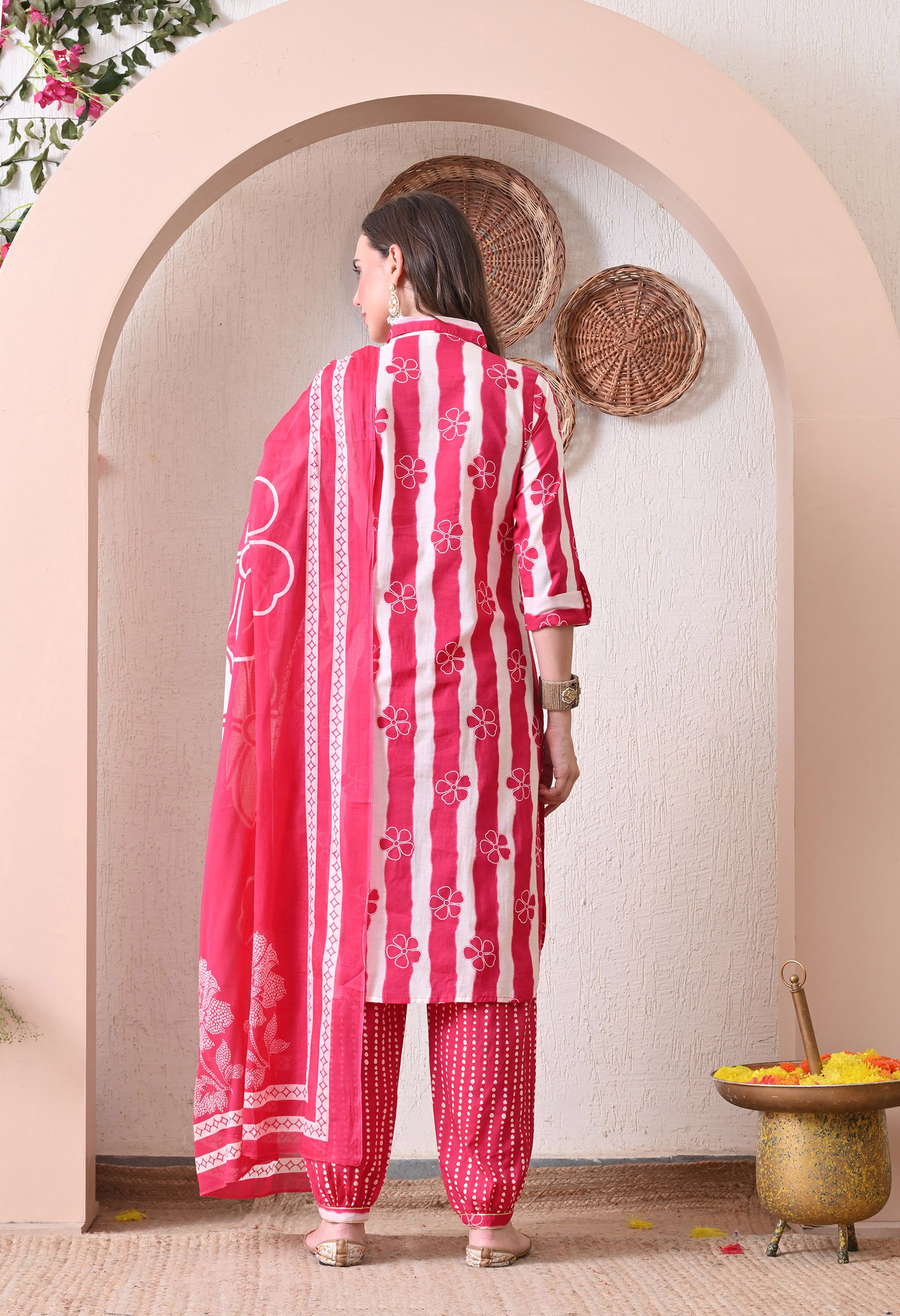 VBA Hot Pink Straight Kurta Pent Dupatta Set