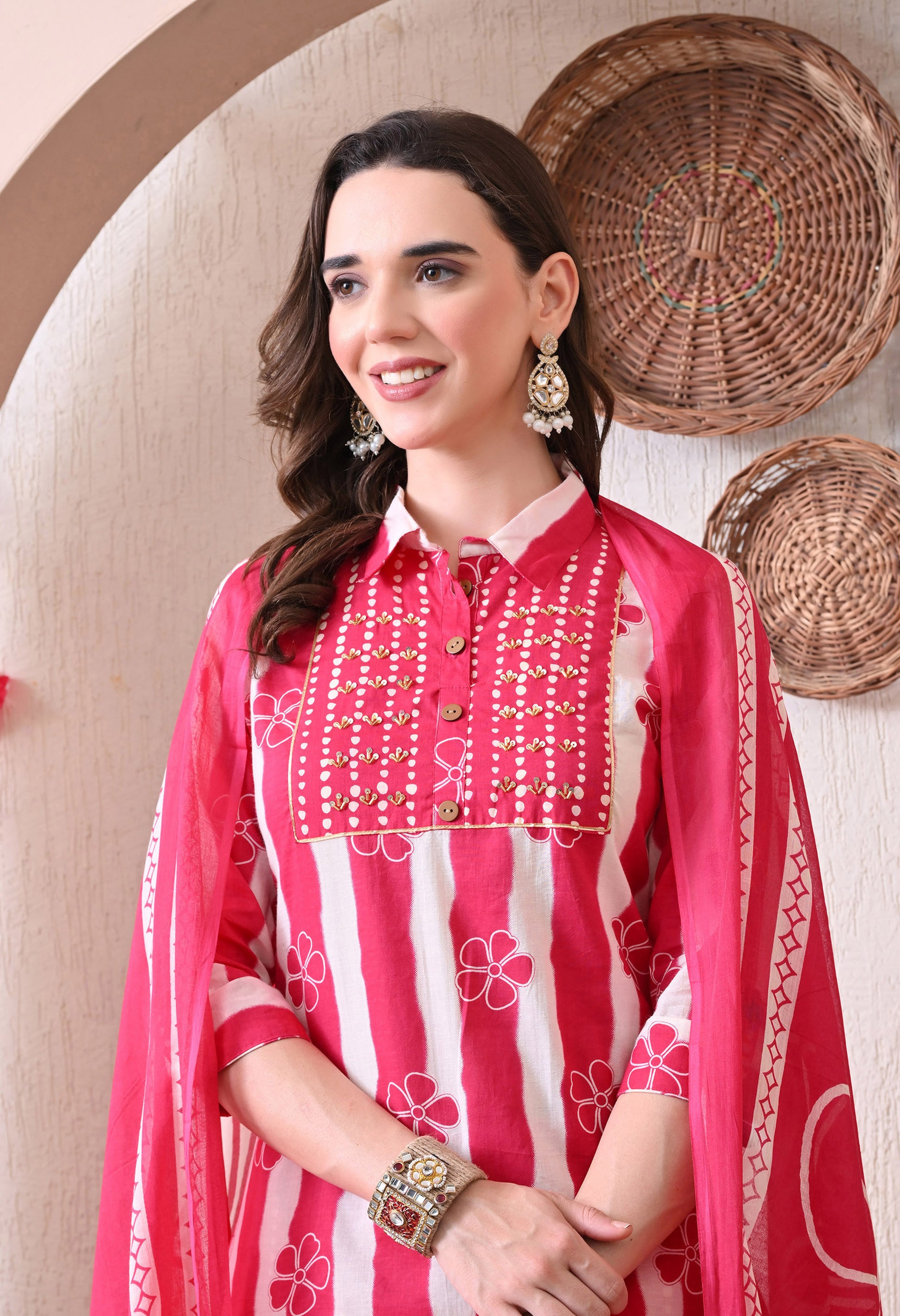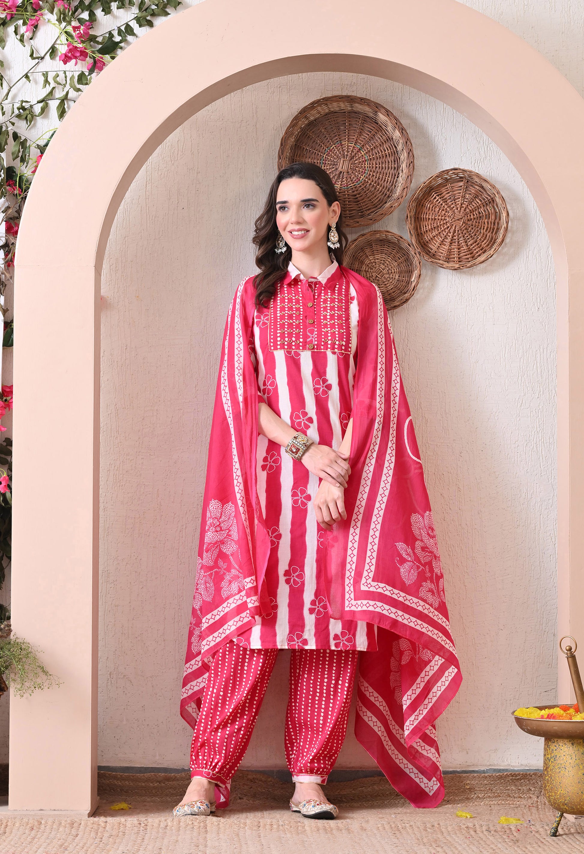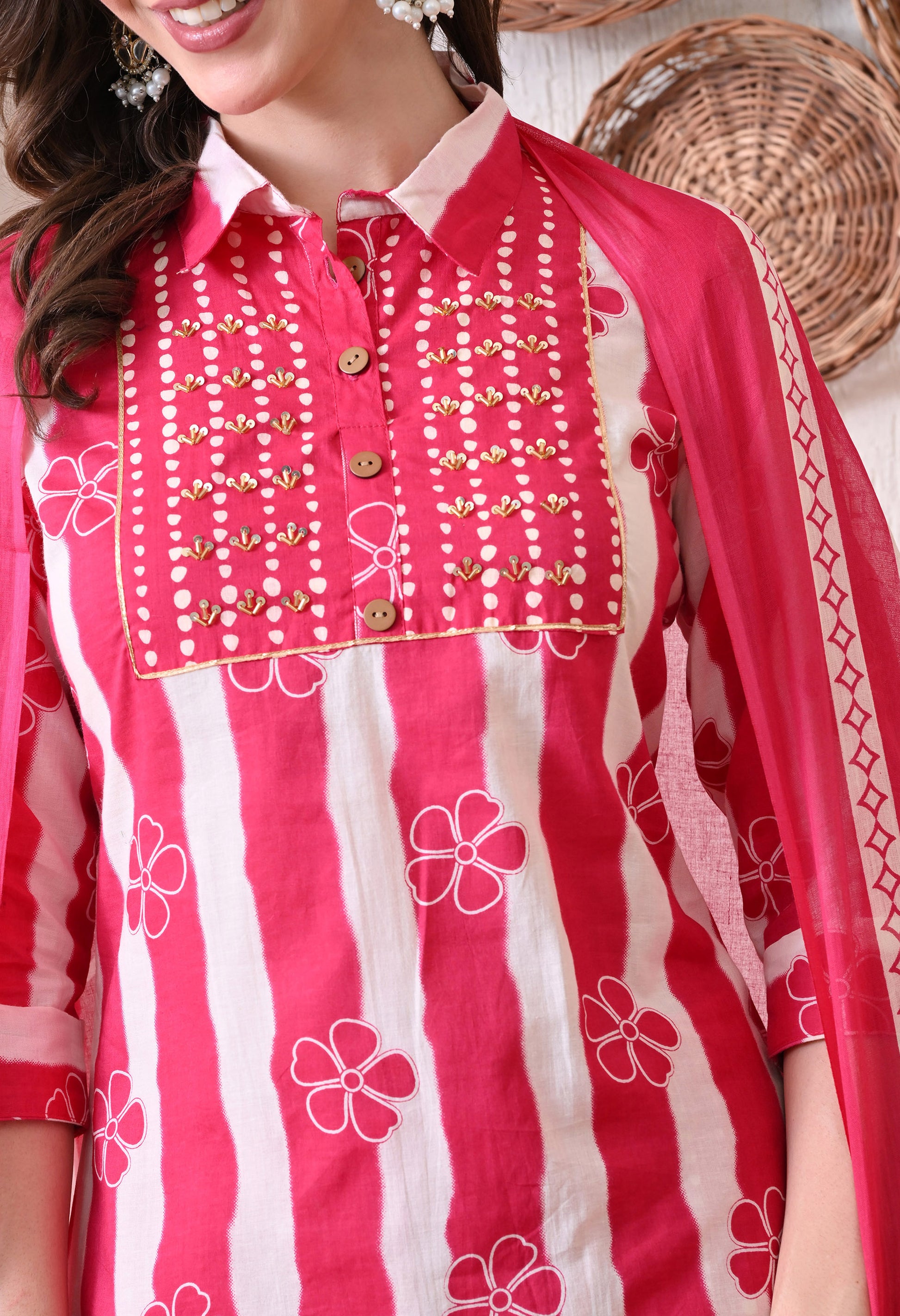 This cotton kurta set is the perfect combination of traditional elegance and everyday comfort. Crafted from breathable cotton, it keeps you at ease all day long while adding a graceful charm to your look. The set includes a beautifully tailored kurta, matching bottoms, and a soft malmal dupatta — offering a complete outfit for any occasion. From daily wear to casual gatherings or festive moments, this set is versatile, stylish, and comfortable in every season.