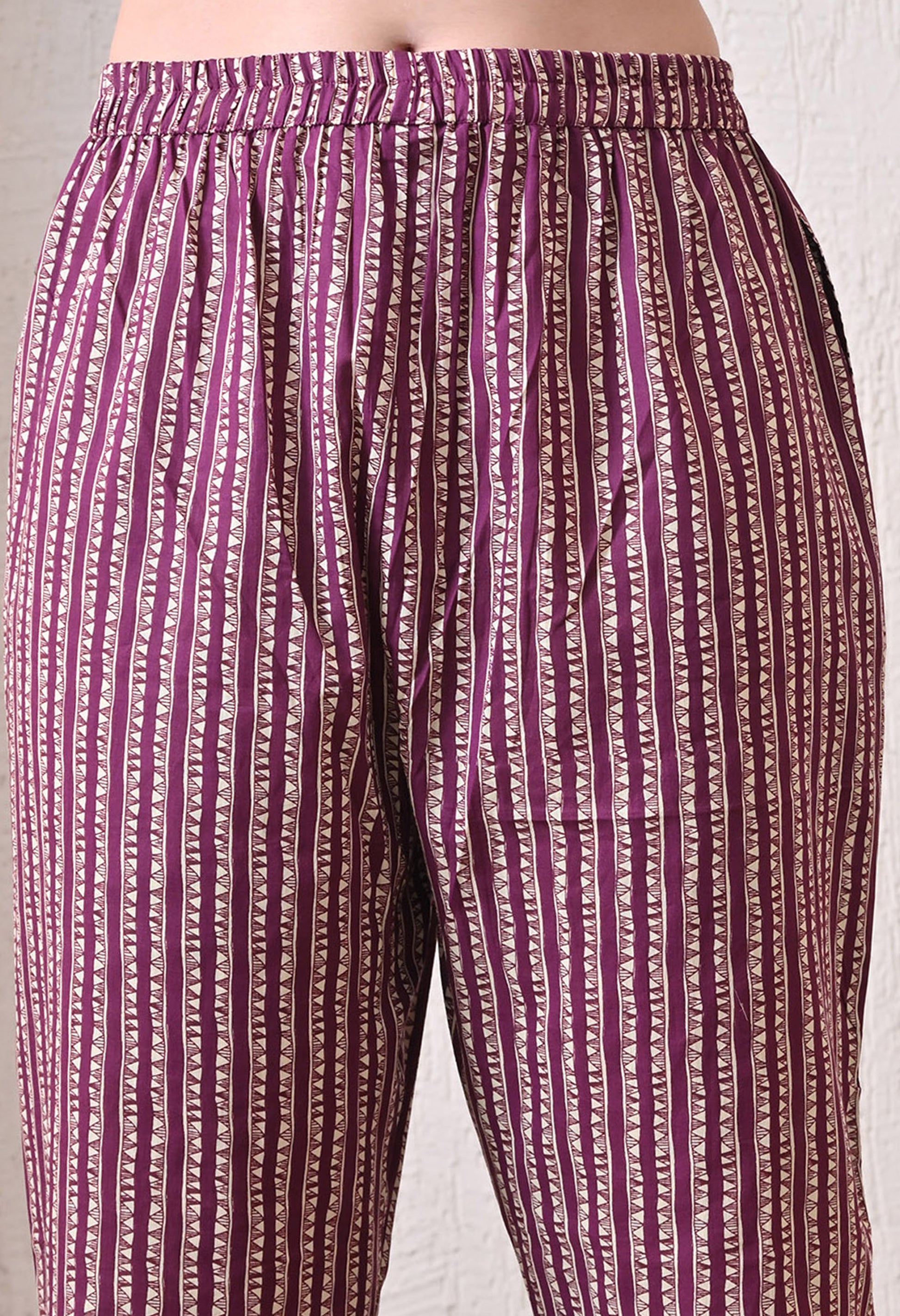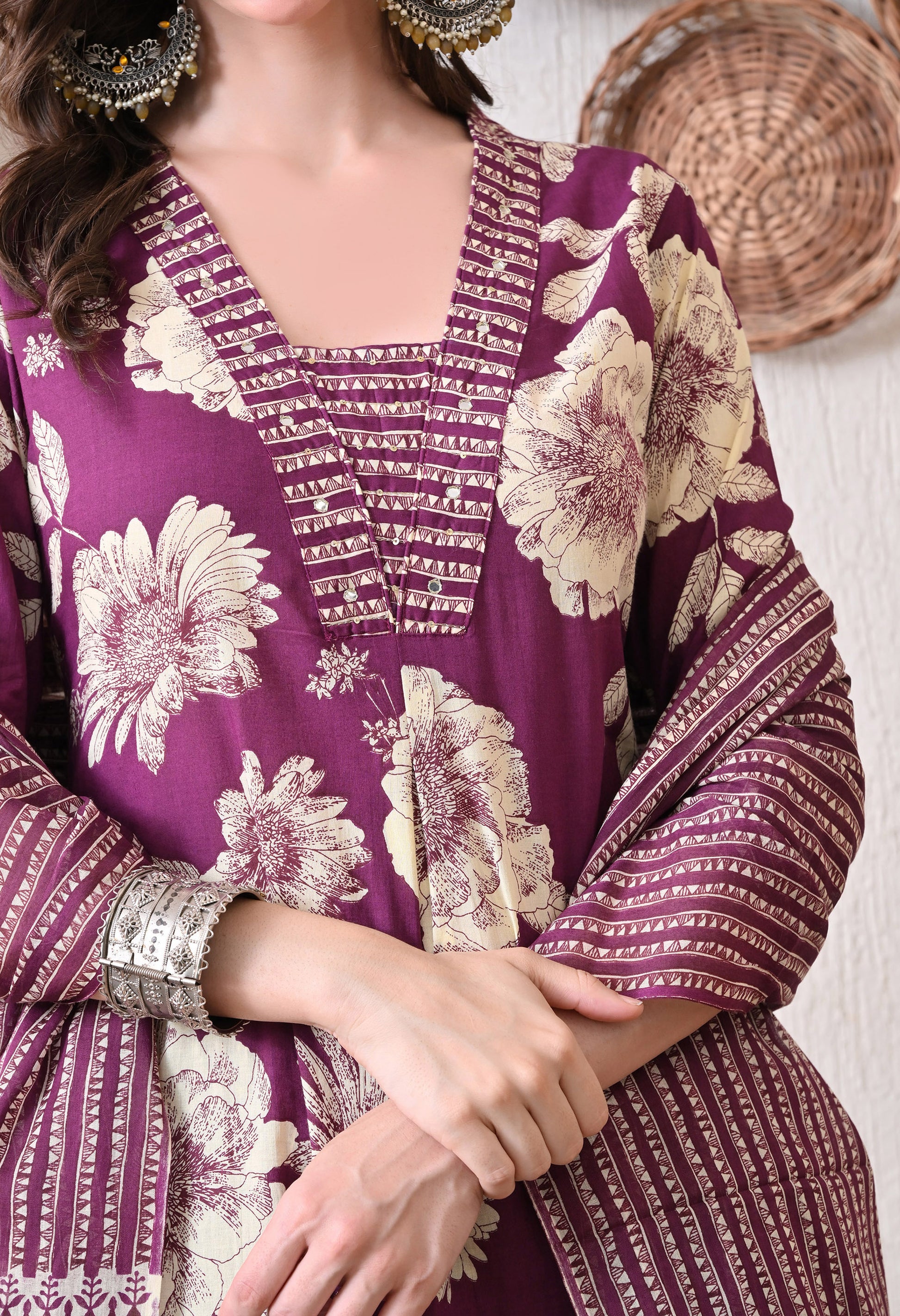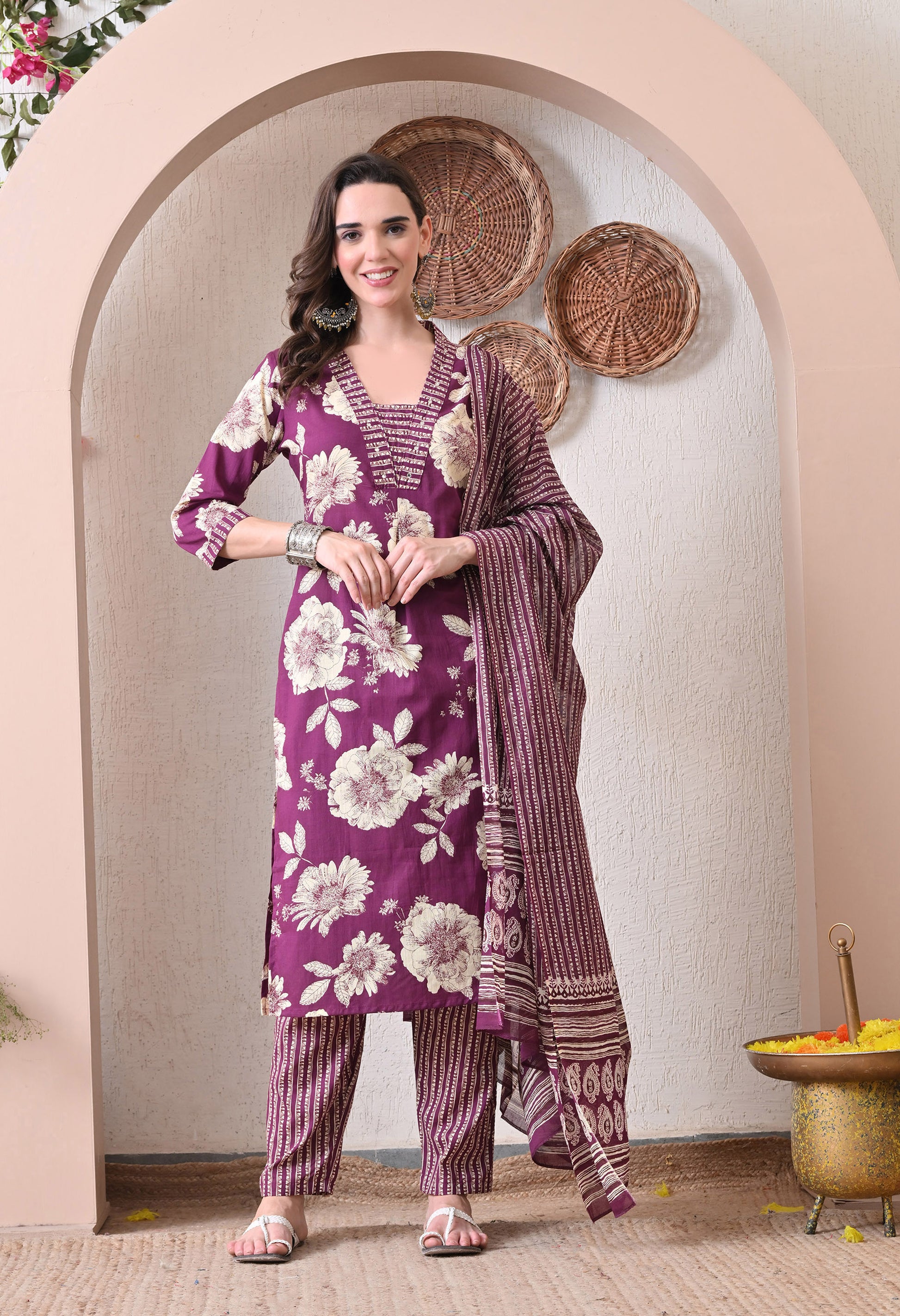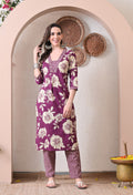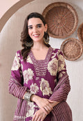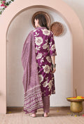 VBA Magenta V-Neck Kurta Pent Dupatta Set