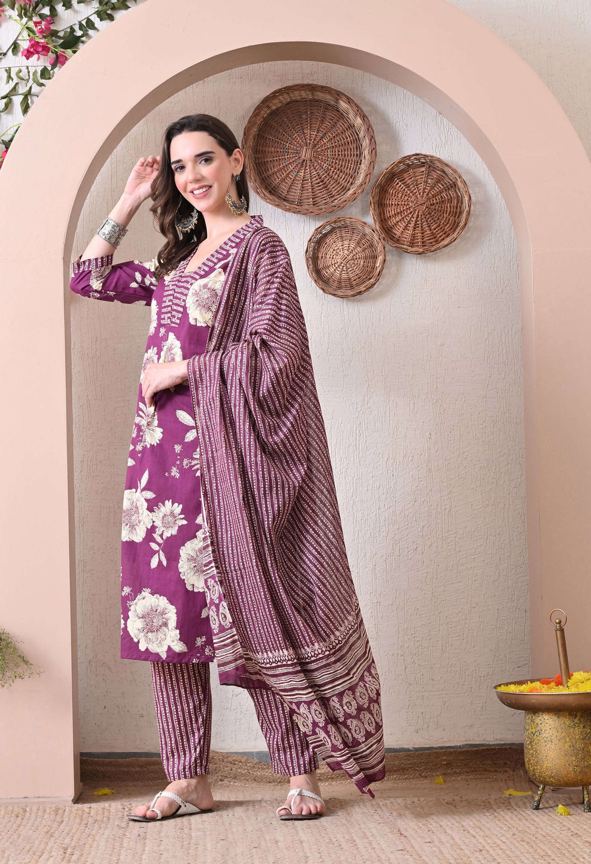 This cotton kurta set is the perfect combination of traditional elegance and everyday comfort. Crafted from breathable cotton, it keeps you at ease all day long while adding a graceful charm to your look. The set includes a beautifully tailored kurta, matching bottoms, and a soft malmal dupatta — offering a complete outfit for any occasion. From daily wear to casual gatherings or festive moments, this set is versatile, stylish, and comfortable in every season.