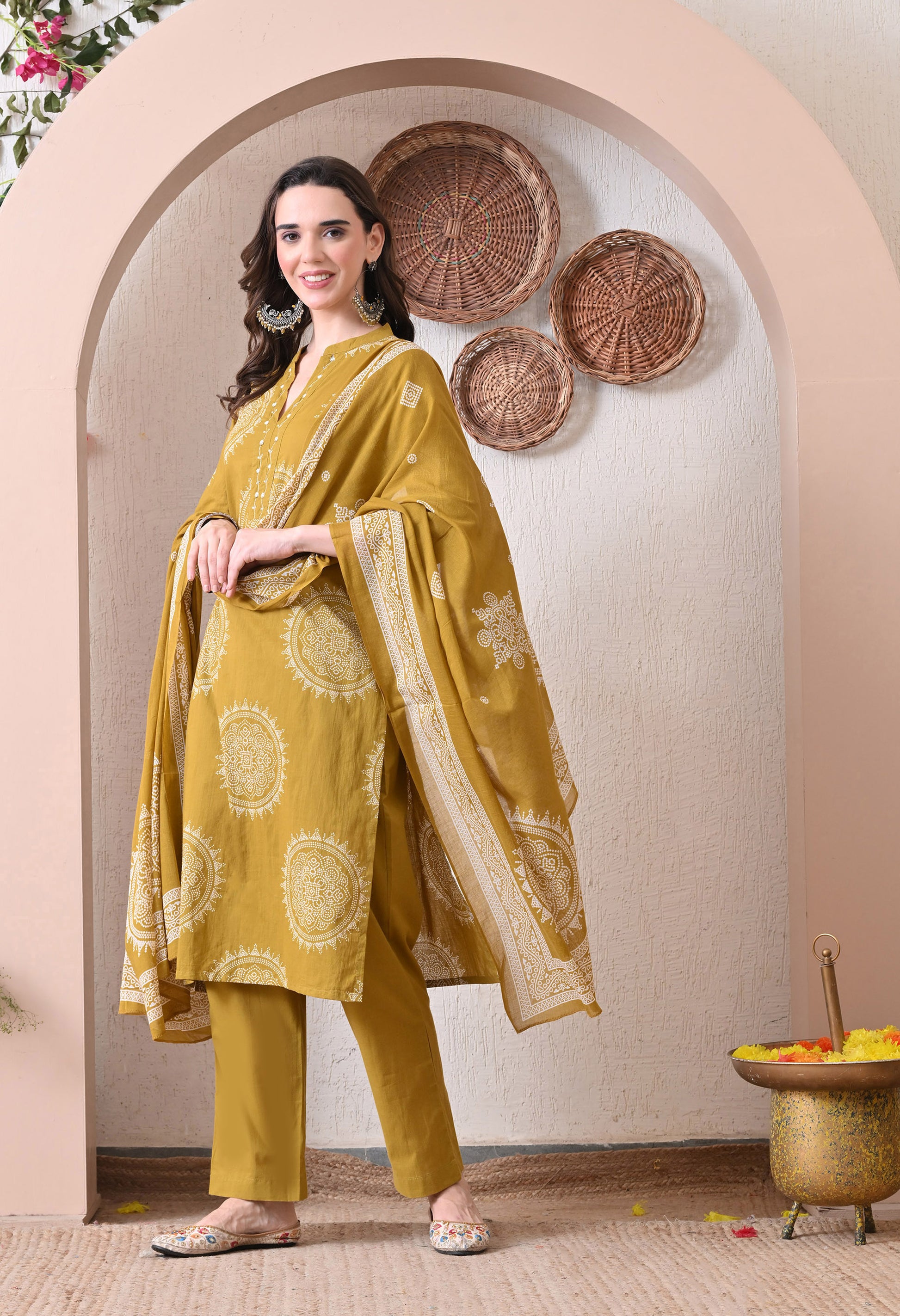 This cotton kurta set is the perfect combination of traditional elegance and everyday comfort. Crafted from breathable cotton, it keeps you at ease all day long while adding a graceful charm to your look. The set includes a beautifully tailored kurta, matching bottoms, and a soft malmal dupatta — offering a complete outfit for any occasion. From daily wear to casual gatherings or festive moments, this set is versatile, stylish, and comfortable in every season.