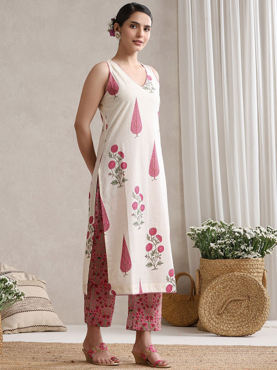 VBA Pink Cotton Sleeveless Pure Cotton Kurta Set