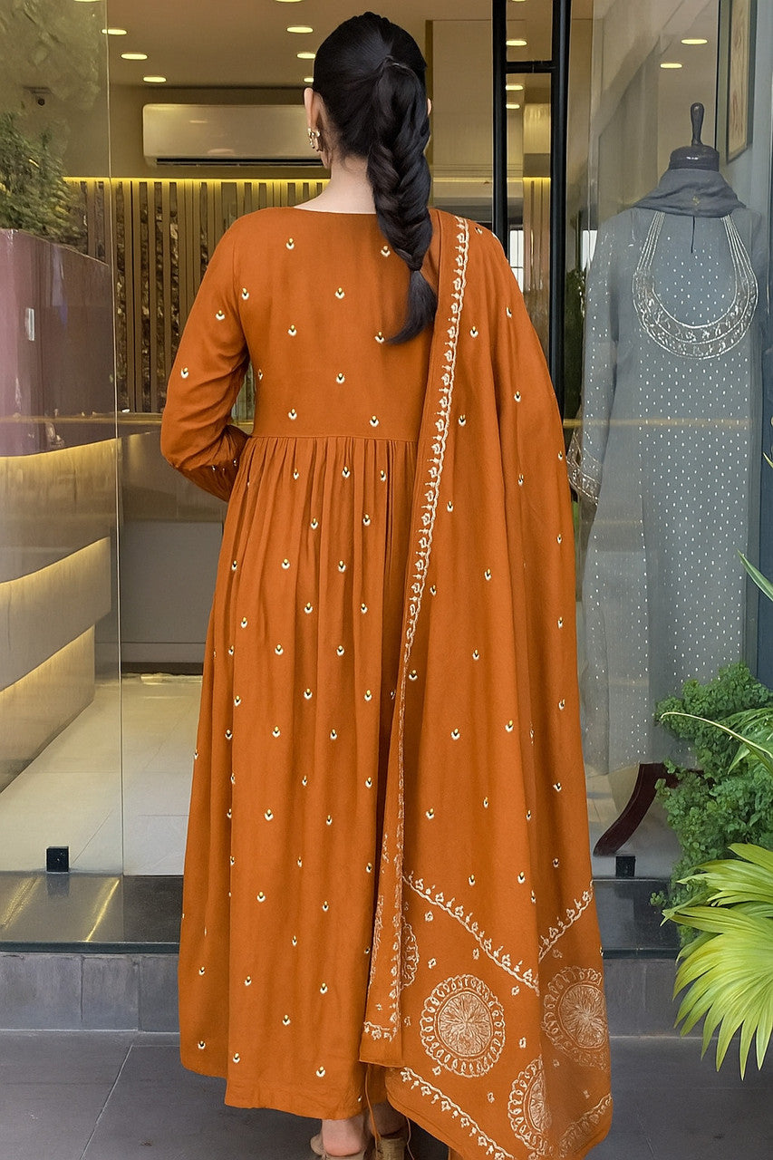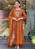 VBA Orange Peacock Embroidery Kurta Dupatta Set