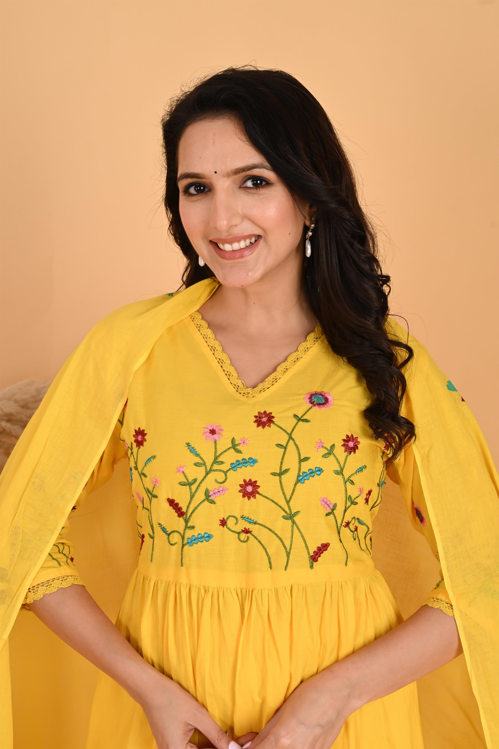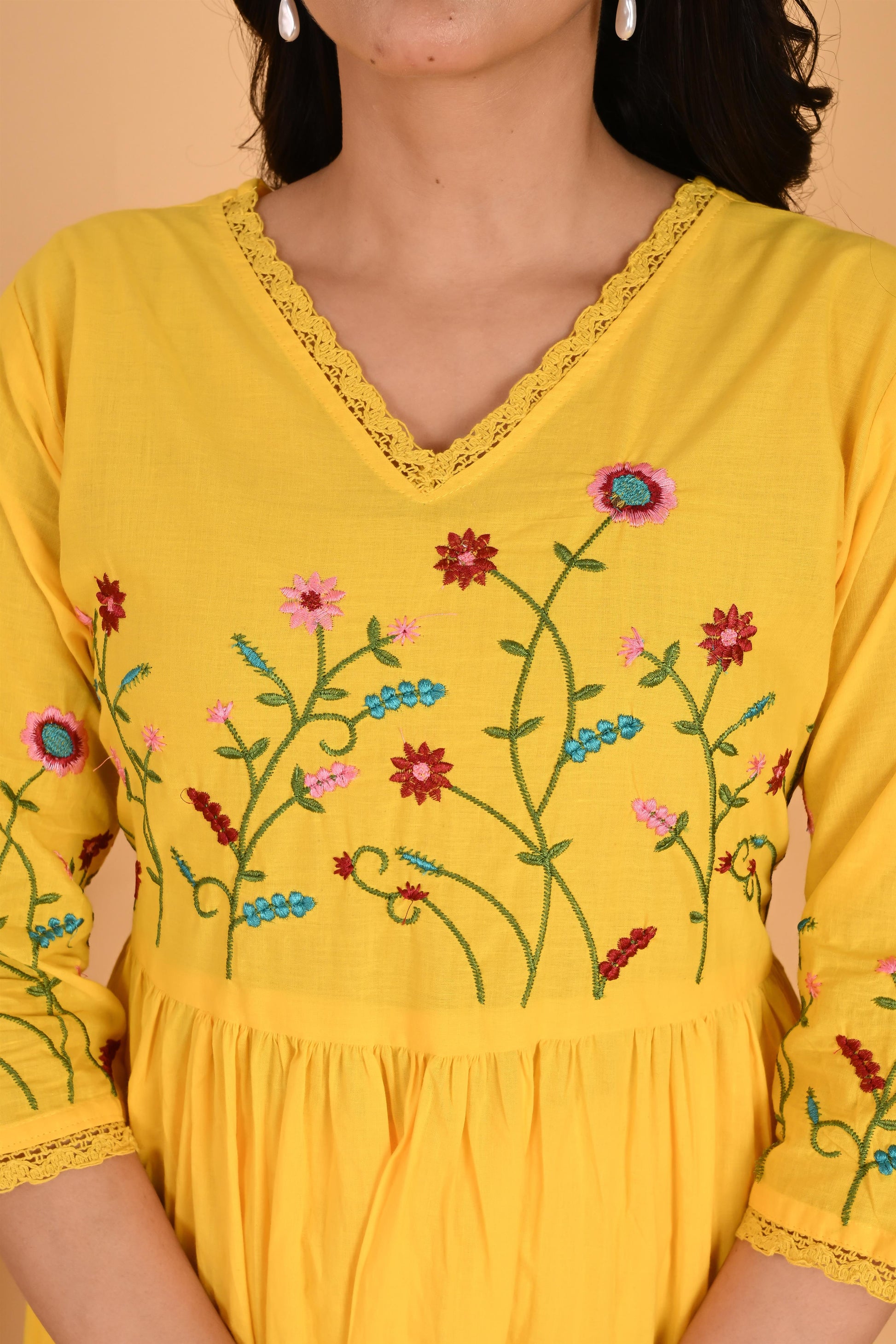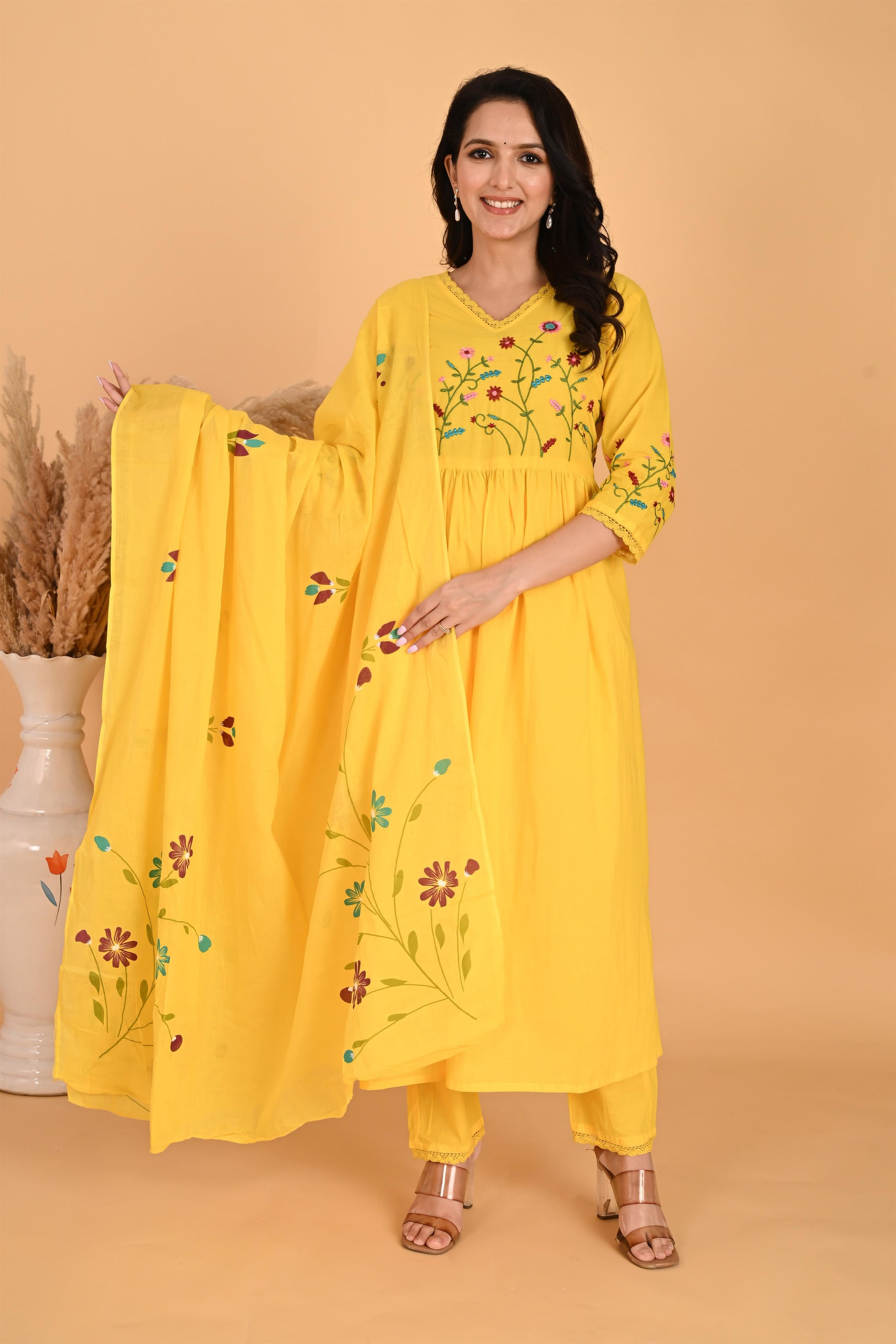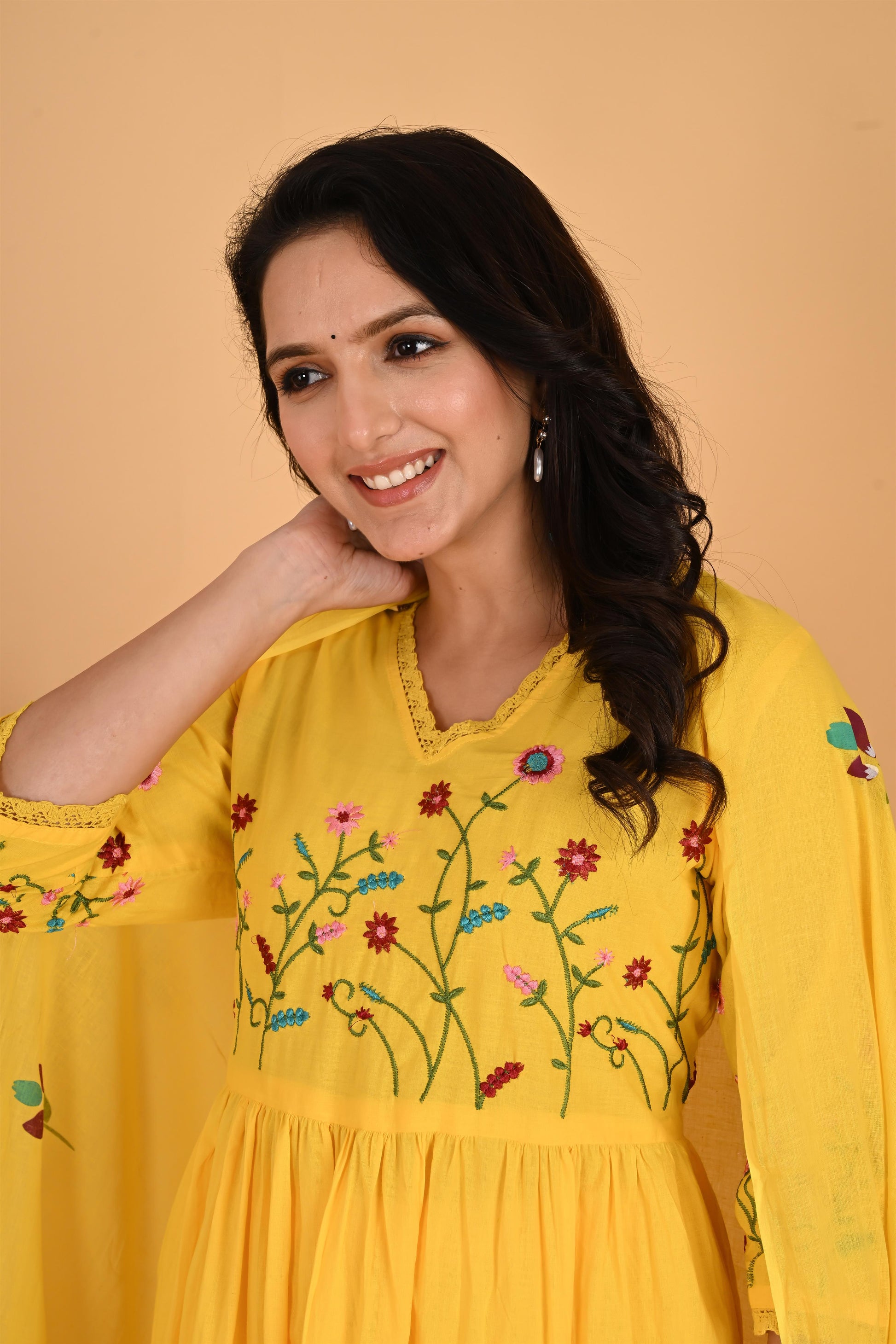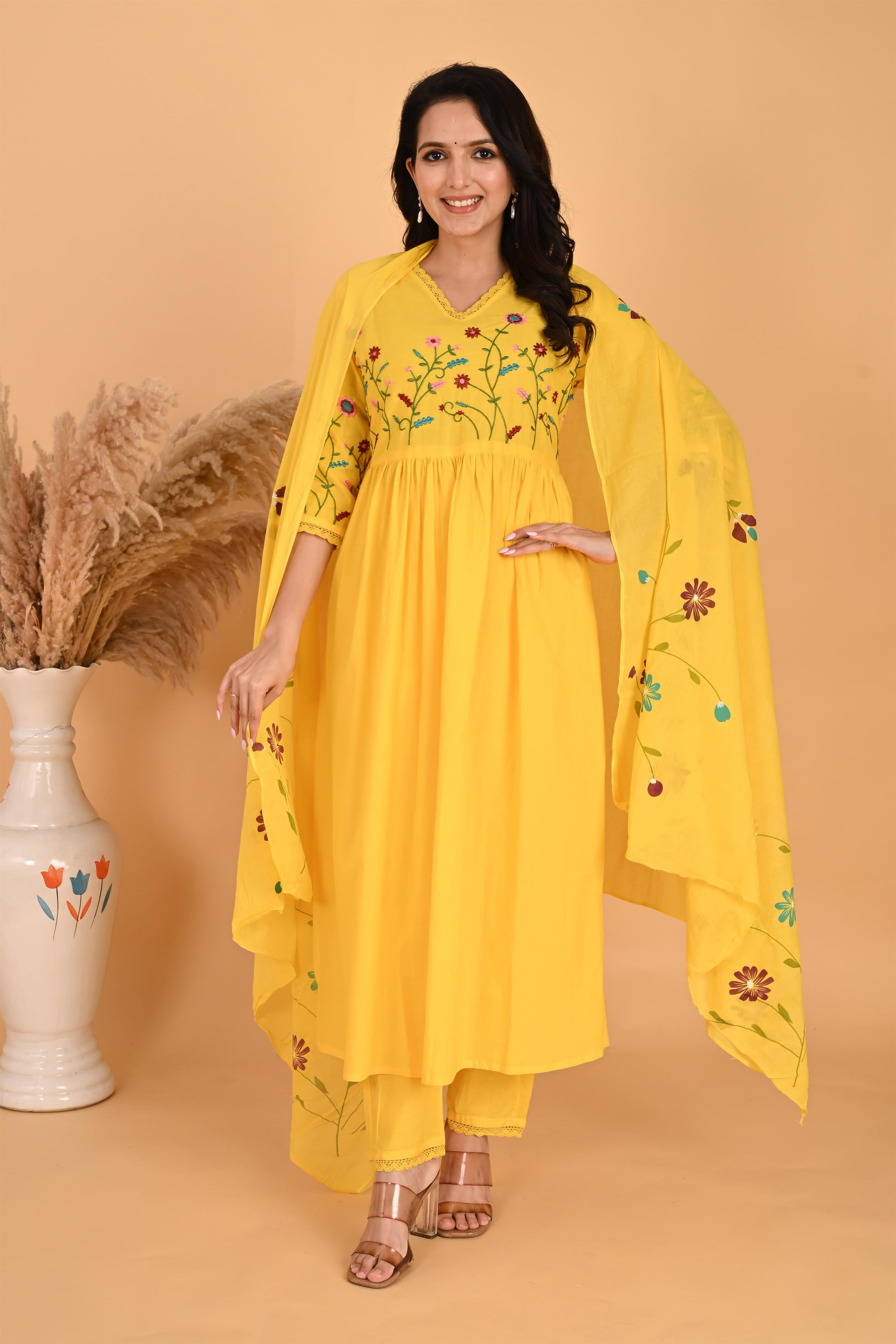 Yellow embroidery kurta set