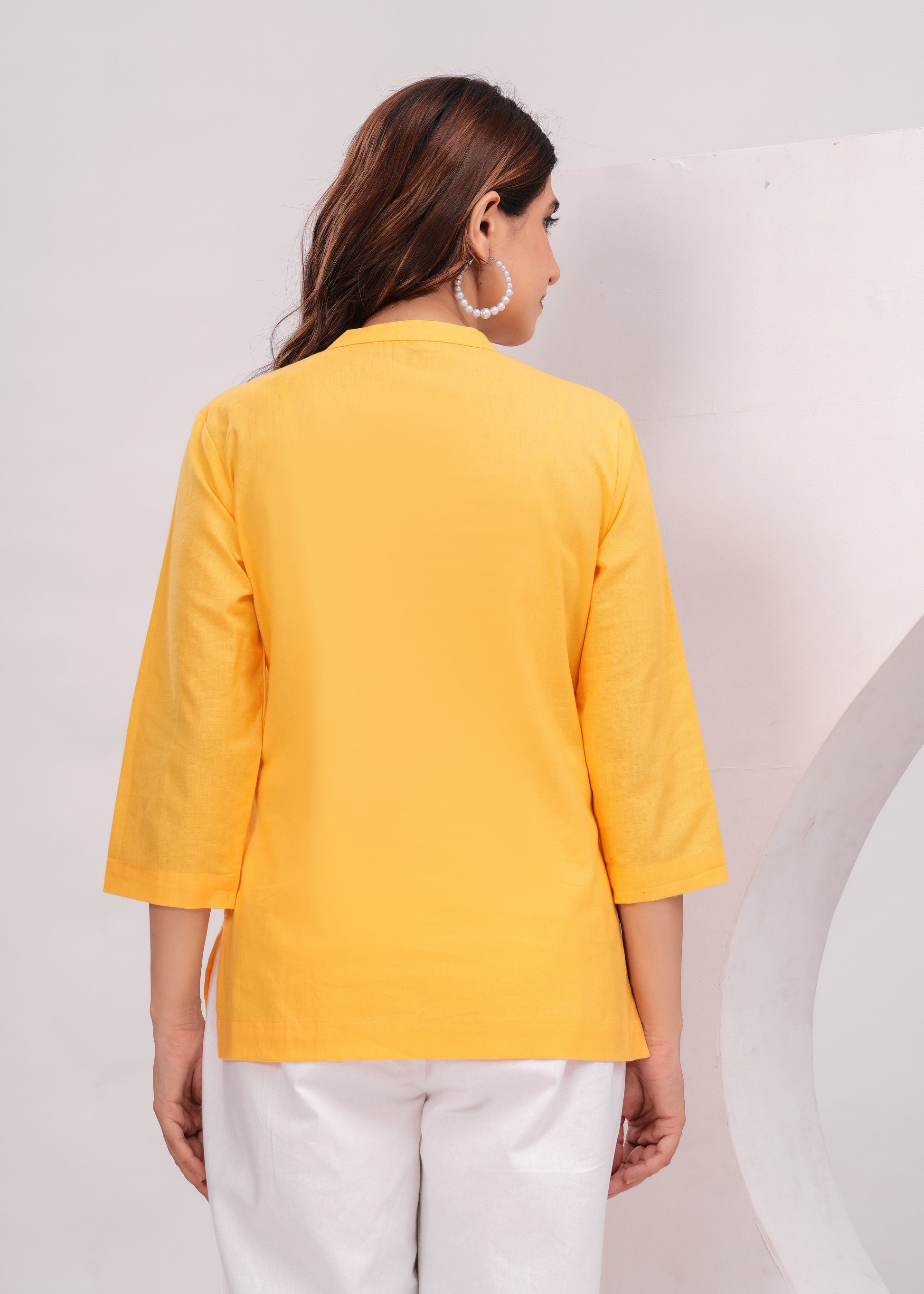 A classic short cotton kurti designed for effortless everyday wear. Crafted in breathable linen fabric with a mandarin collar and solid finish, it’s perfect for work, college, or casual outings. Pair it with cotton pants, denim, or kurta sets to create versatile looks.