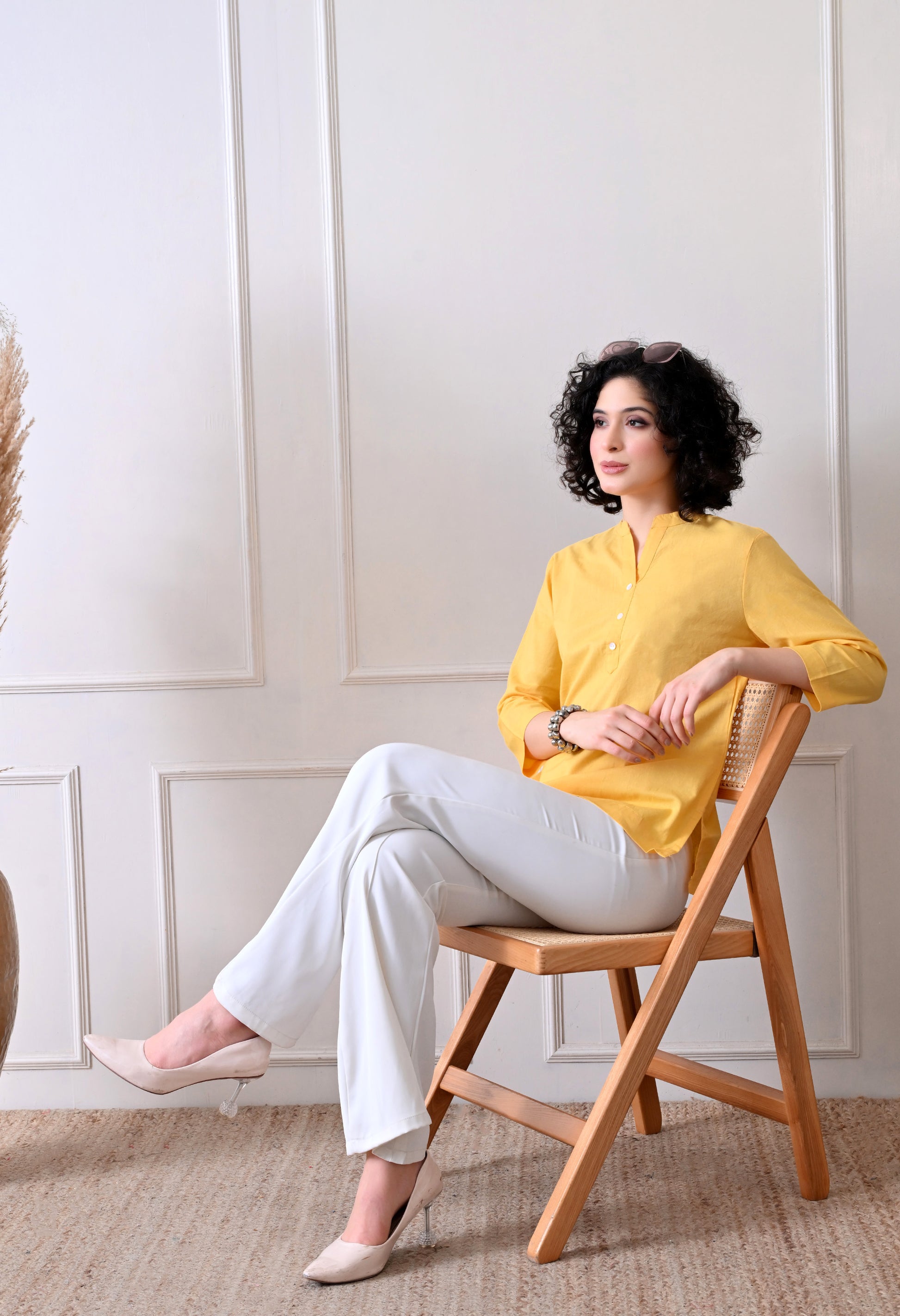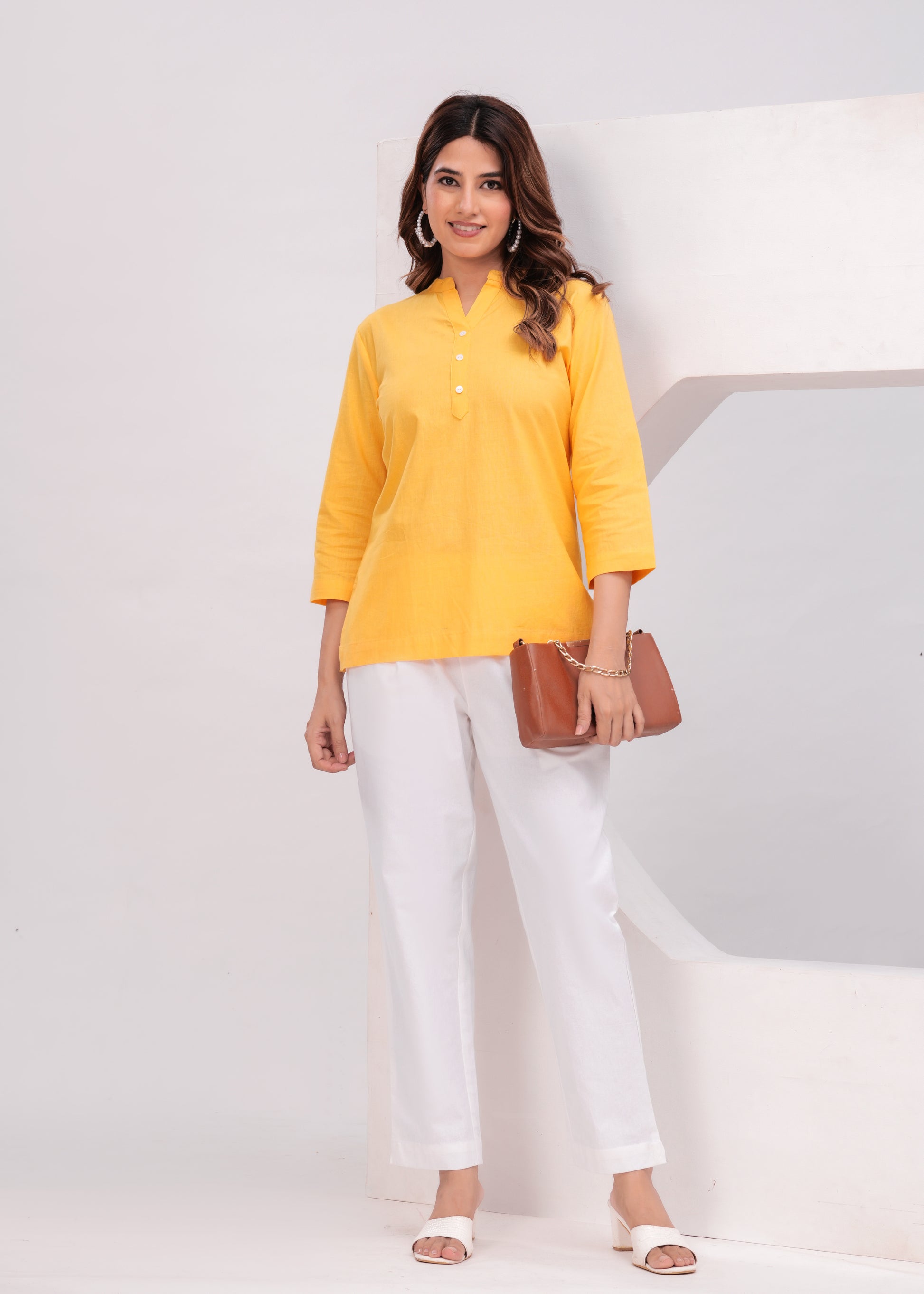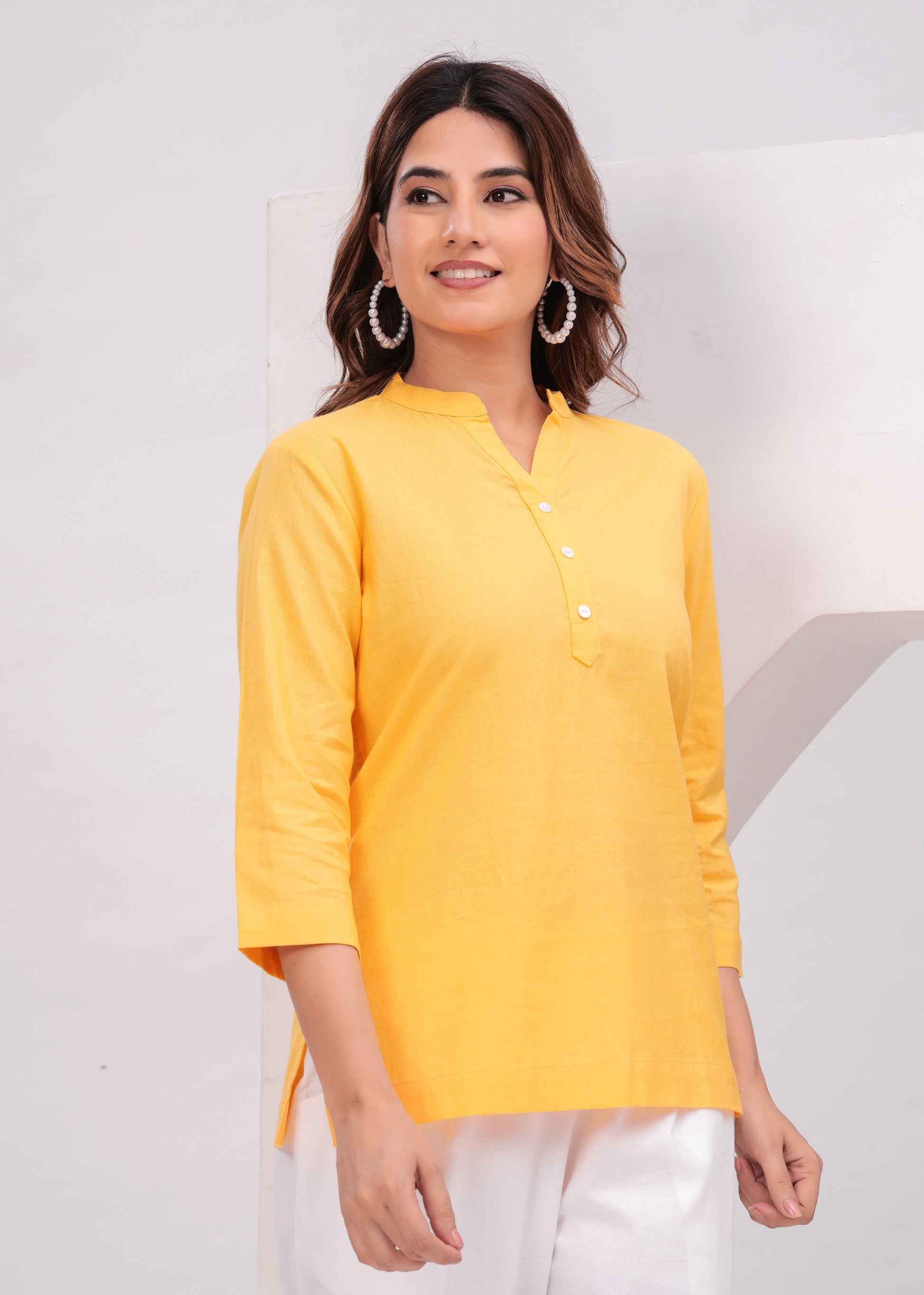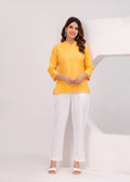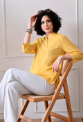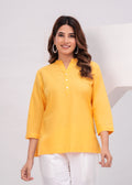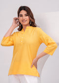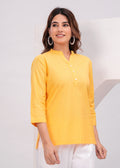 Yellow Airy Solid Linen Comfortable Short Kurta