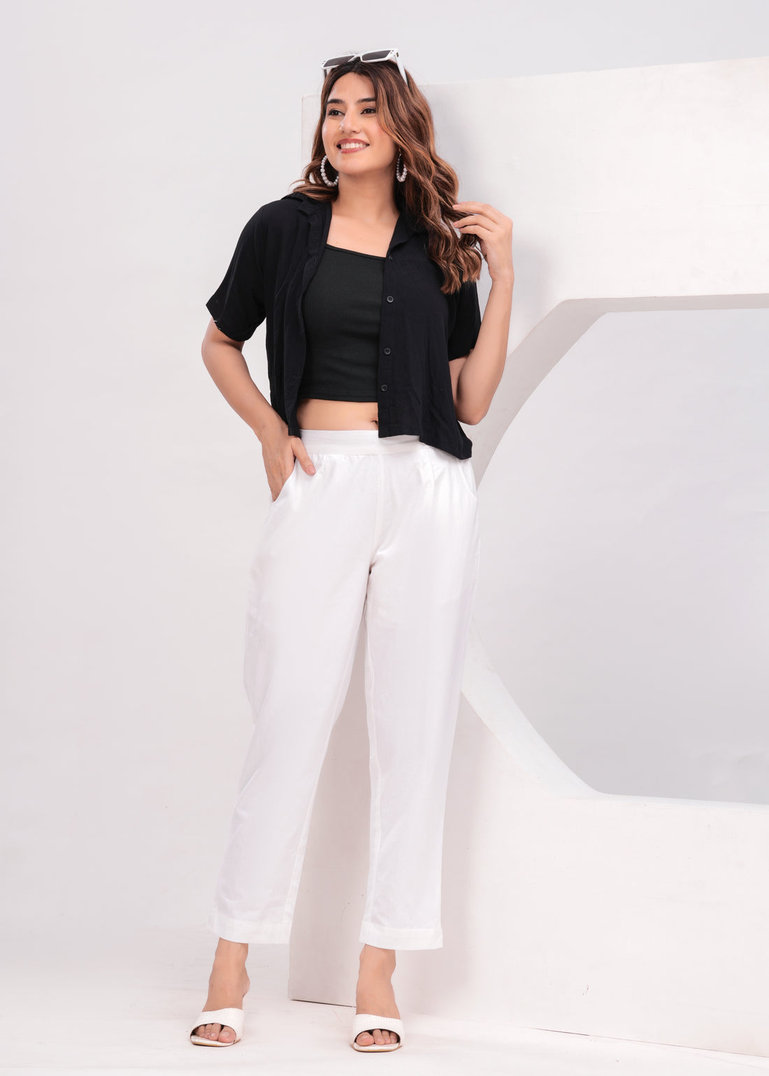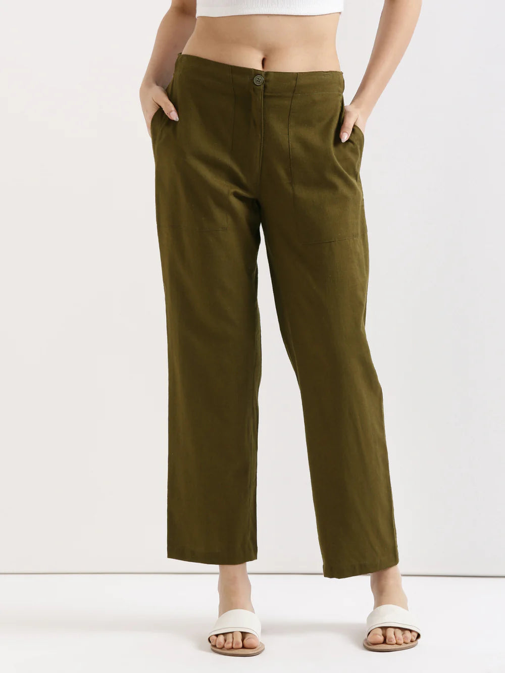 White Everyday Solid Airy Linen Cotton Pant