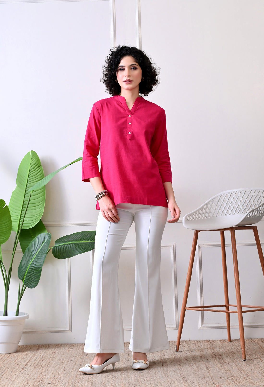 Hot Pink Airy Solid Linen Comfortable Short Kurta