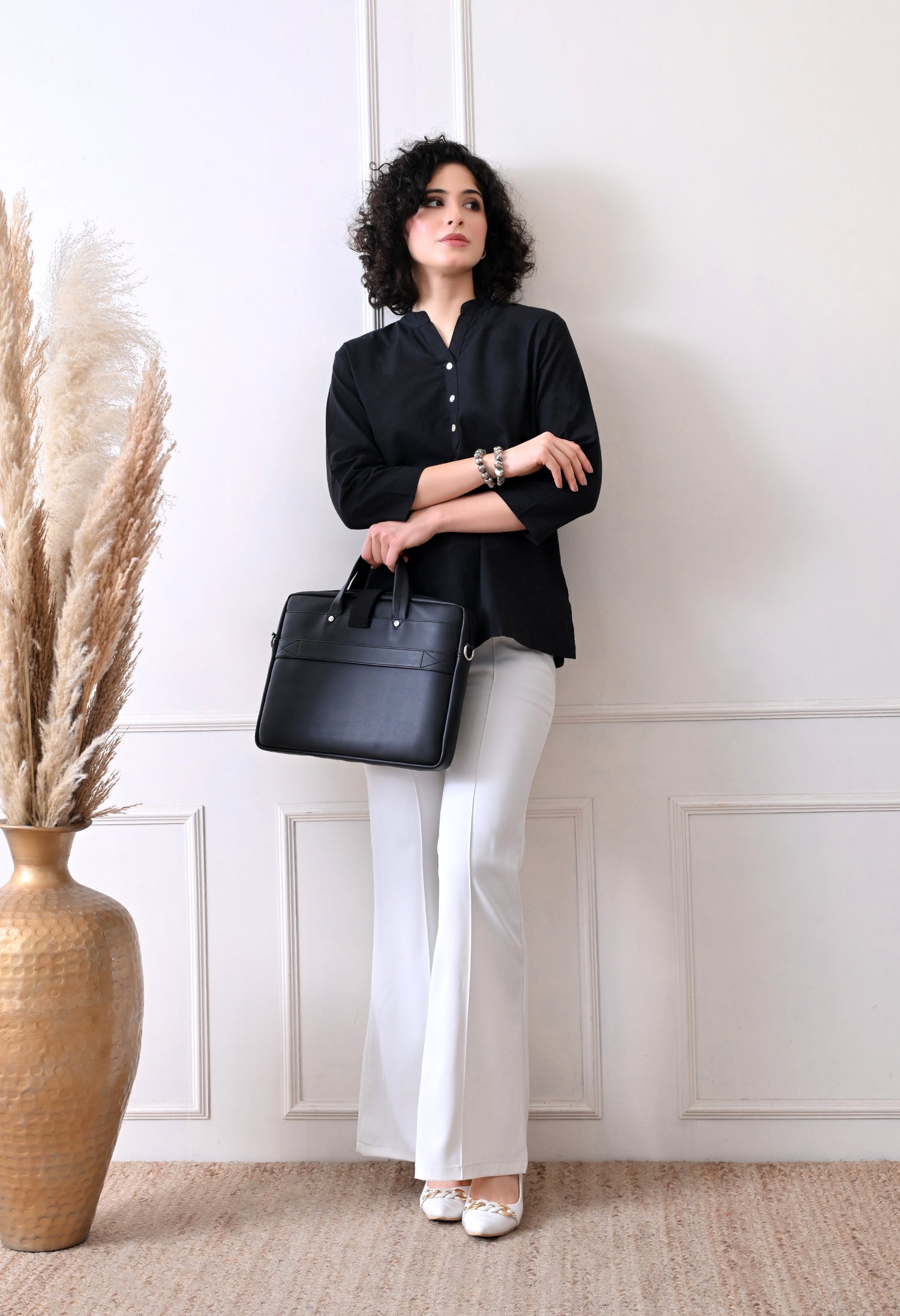 Black Airy Solid Linen Comfortable Short Kurta