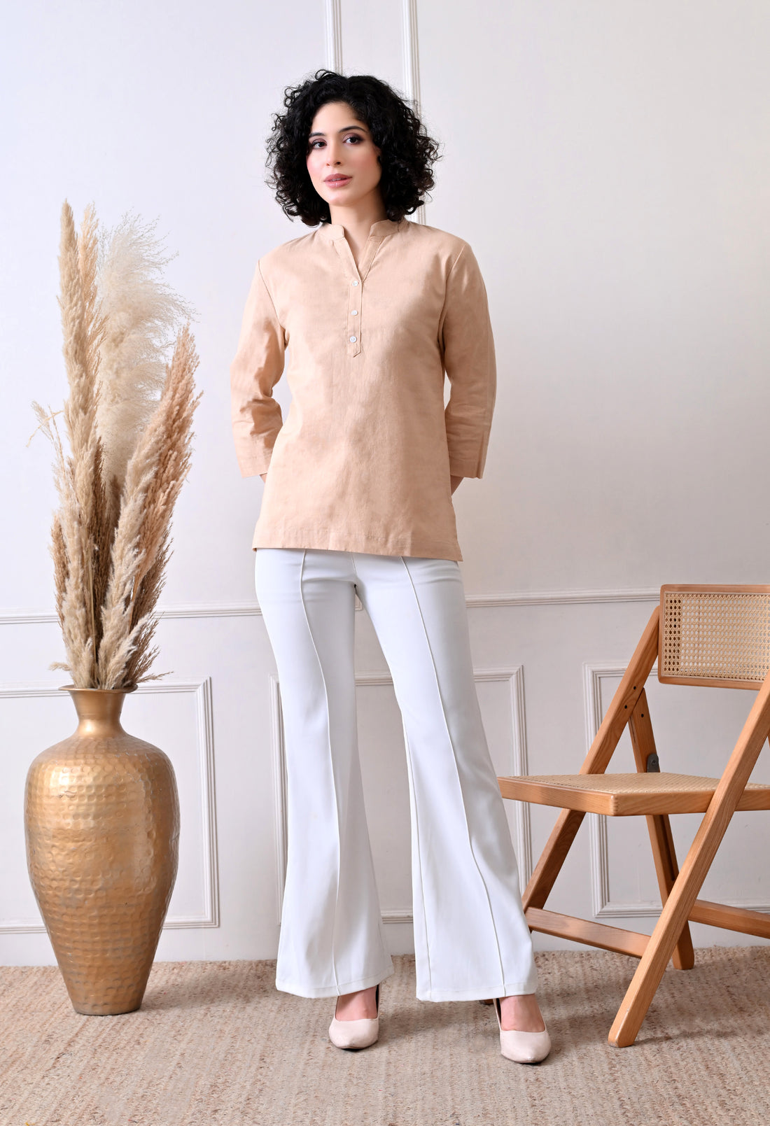 Beige Solid Linen Comfortable Short Kurta