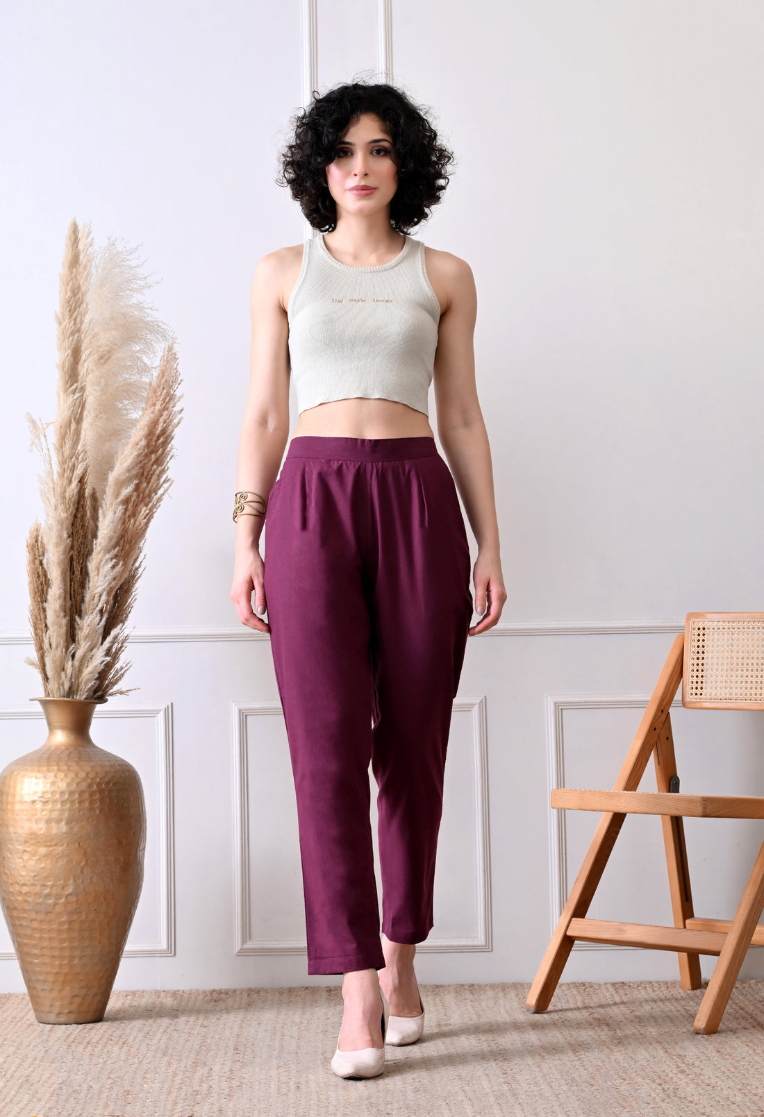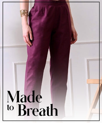 Maroon Everyday Solid Airy Linen Cotton Pant