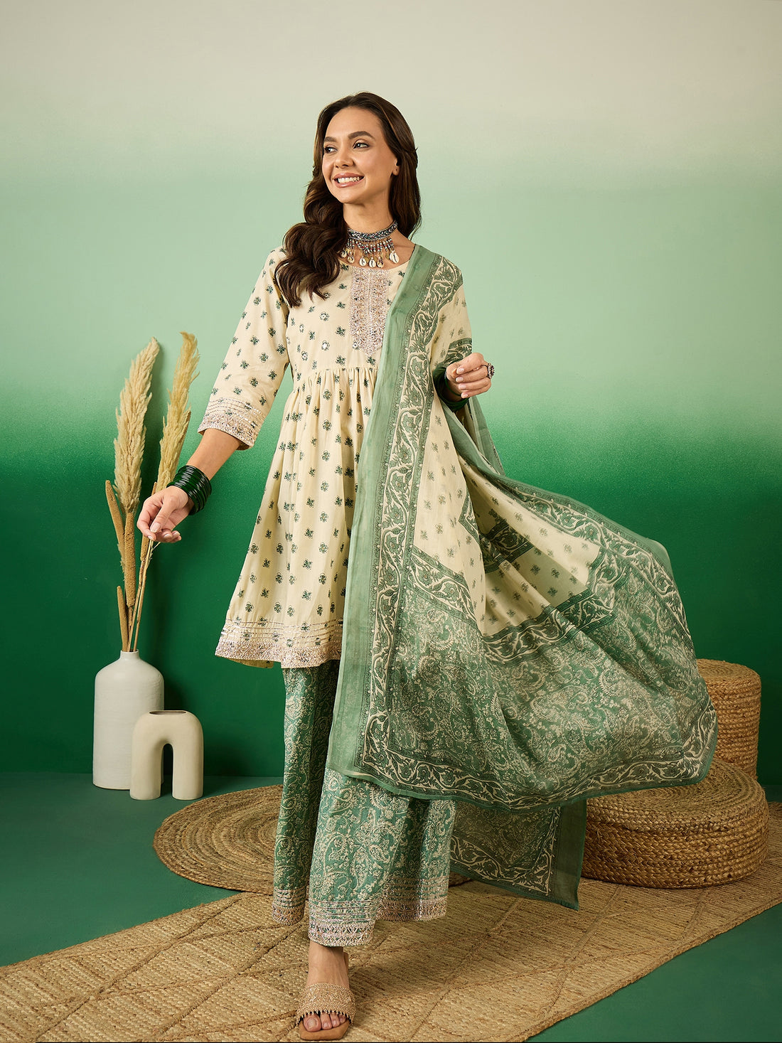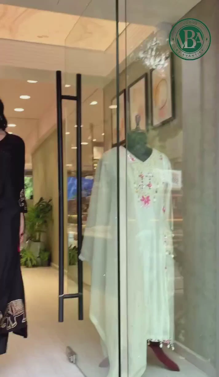 Cream decoris Kurta Sharara Dupatta Set