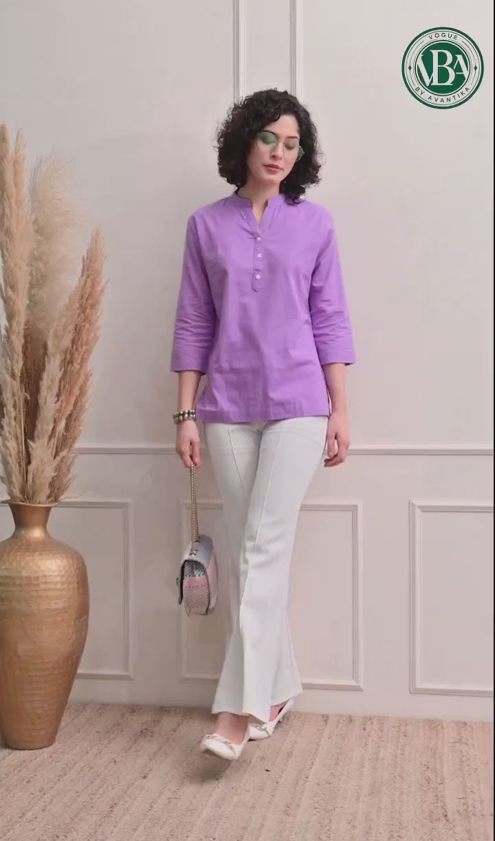 Purple Solid Linen Comfortable Short Kurta