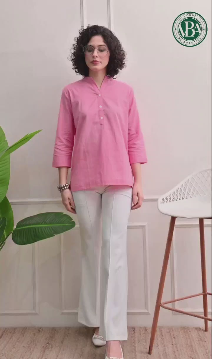 Light Pink Airy Solid Linen Comfortable Short Kurta